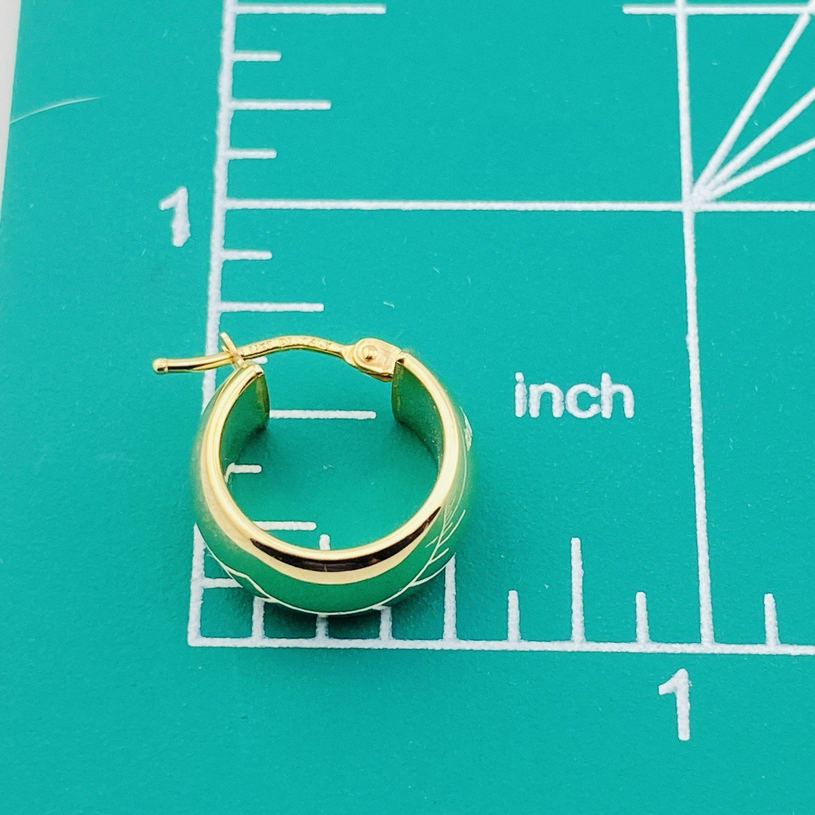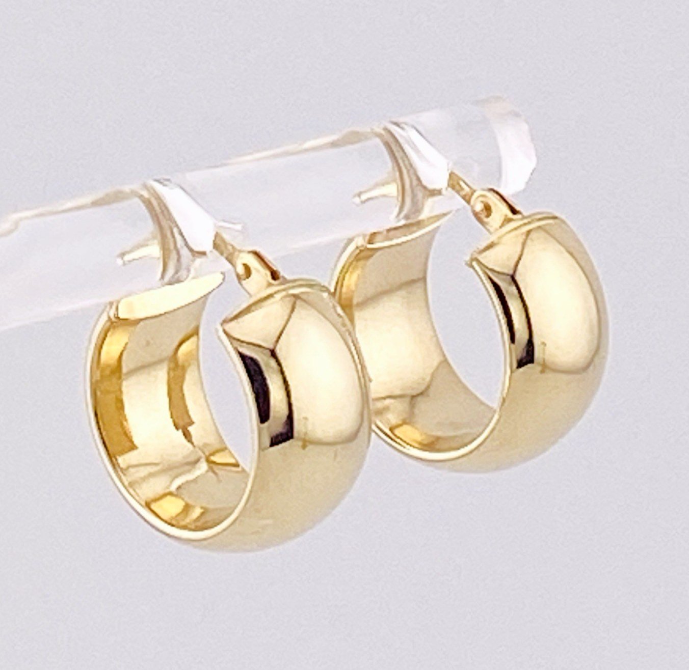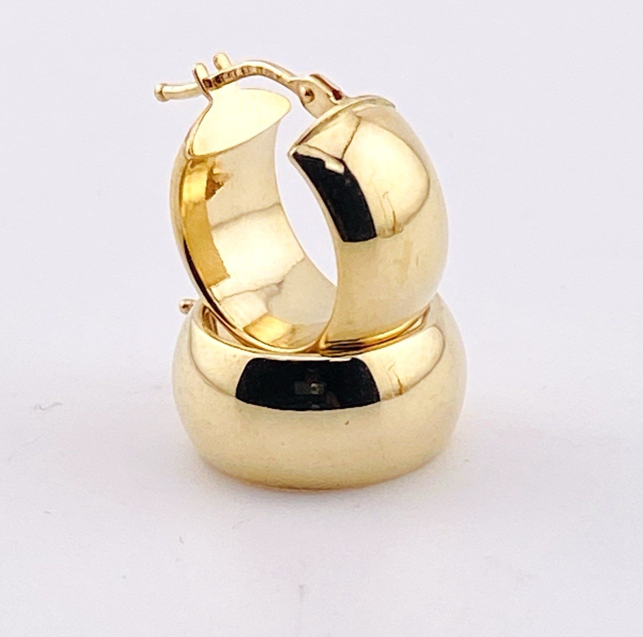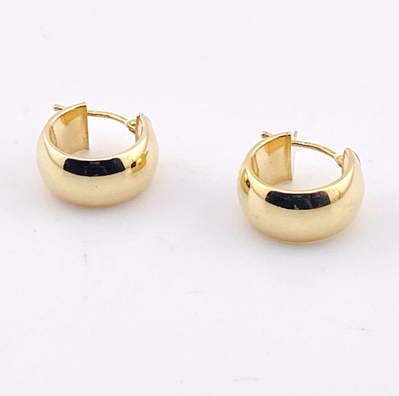 14K Yellow Gold Small Wide Huggy Hoop Earrings – 5/8″ Diameter x 5MM Wide – Approximately 1.14g