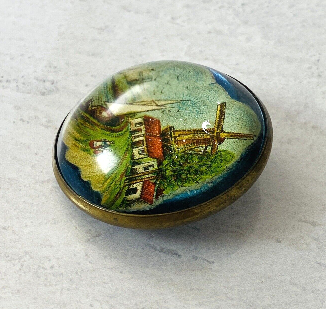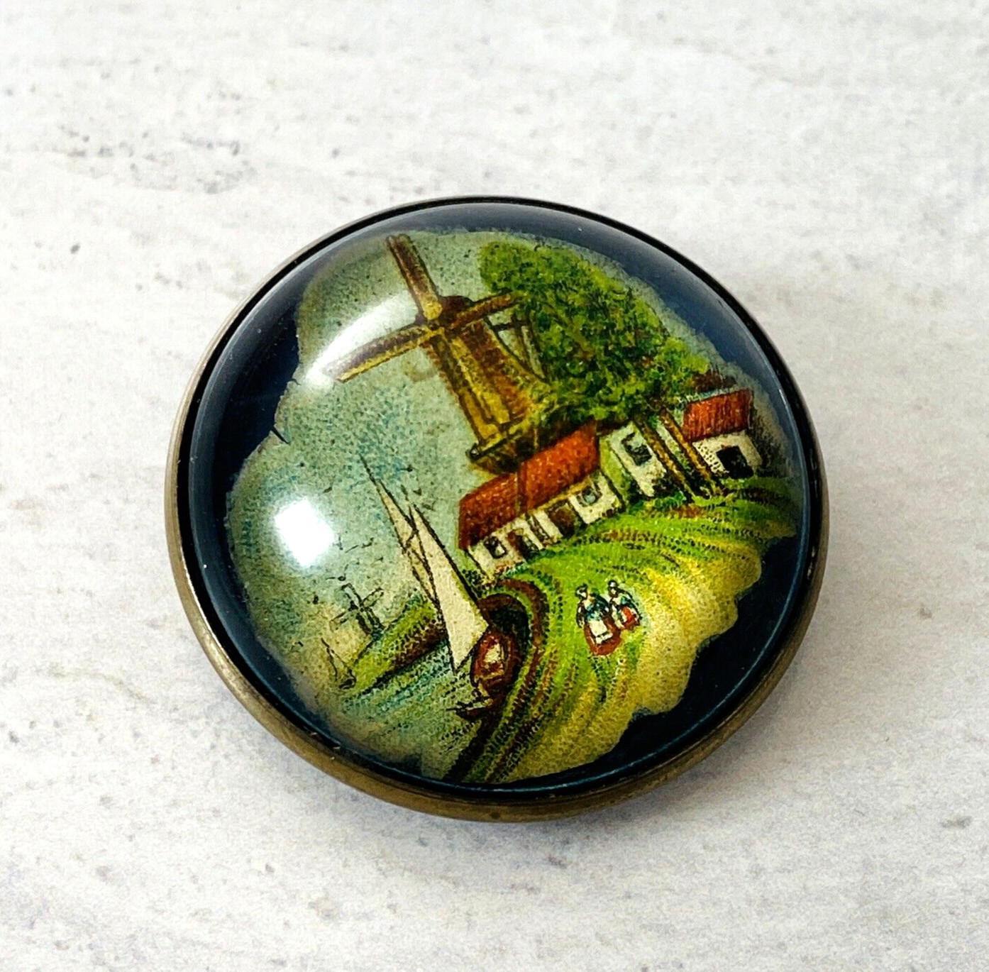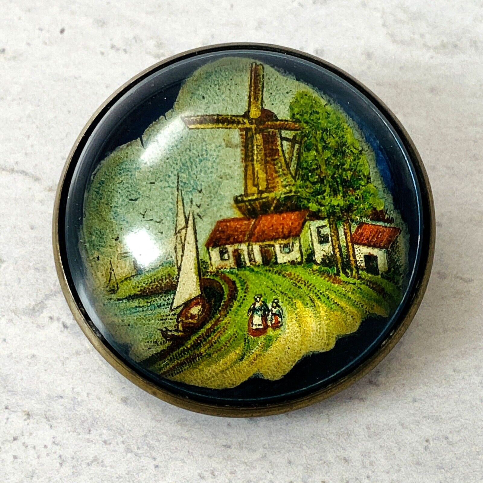 Antique Rosette Bridle Equestrian Pin Brooch Dome Button Dutch Landscape