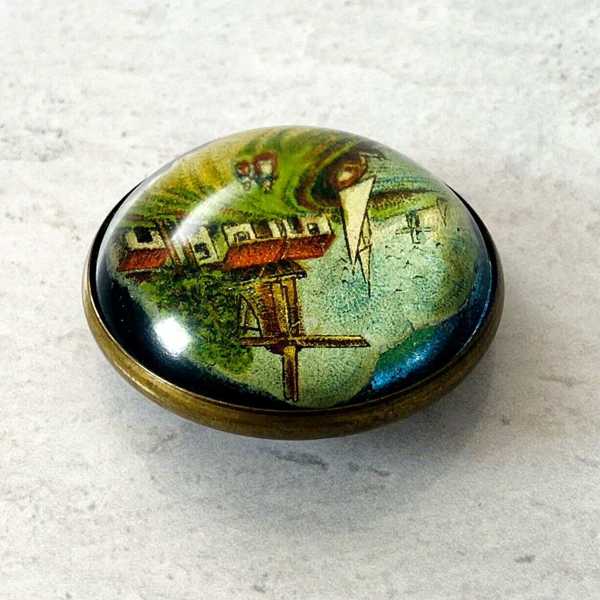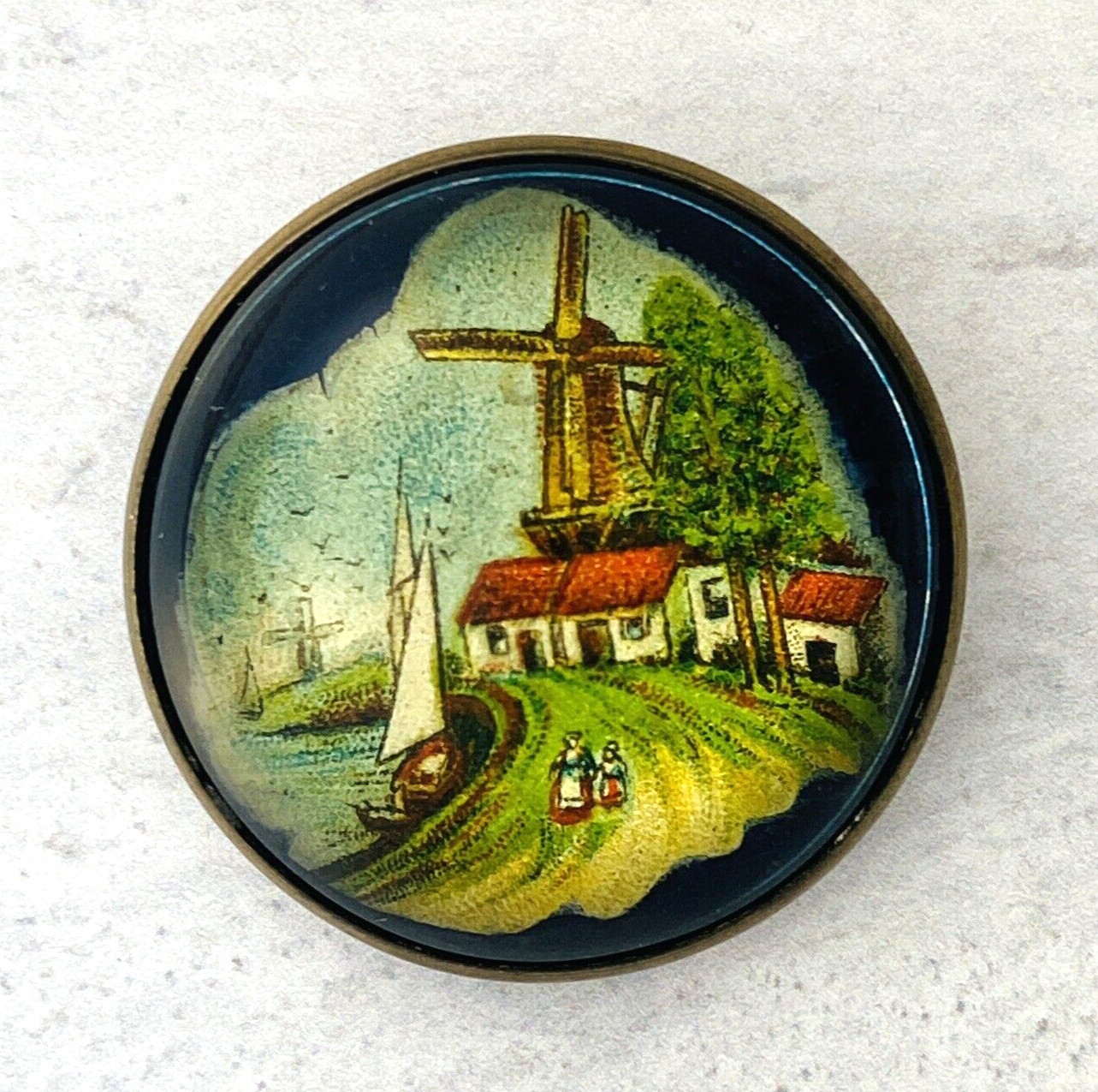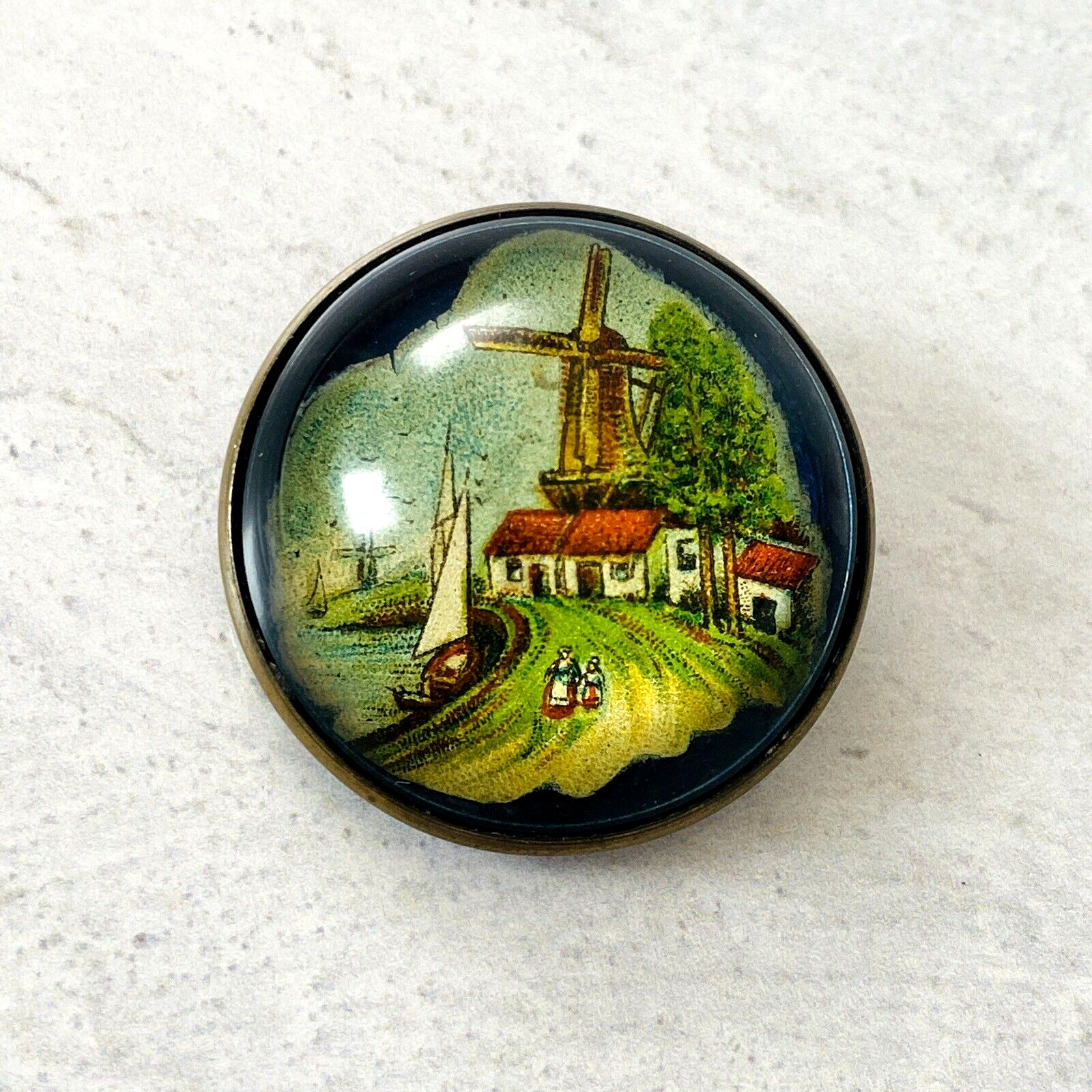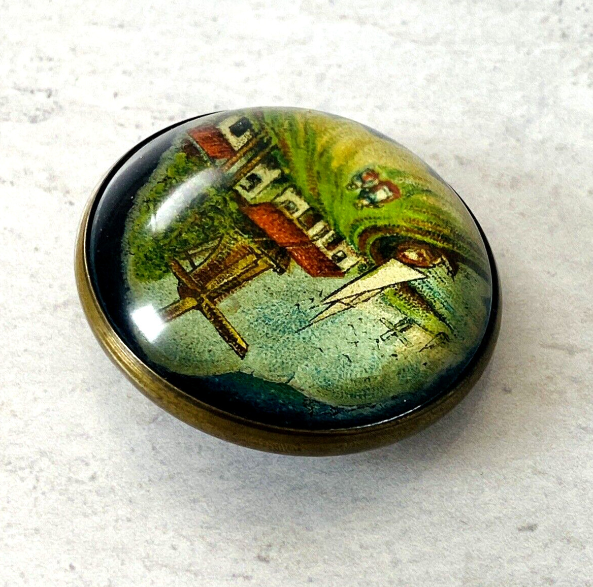 Antique Rosette Bridle Equestrian Pin Brooch Dome Button Dutch Landscape