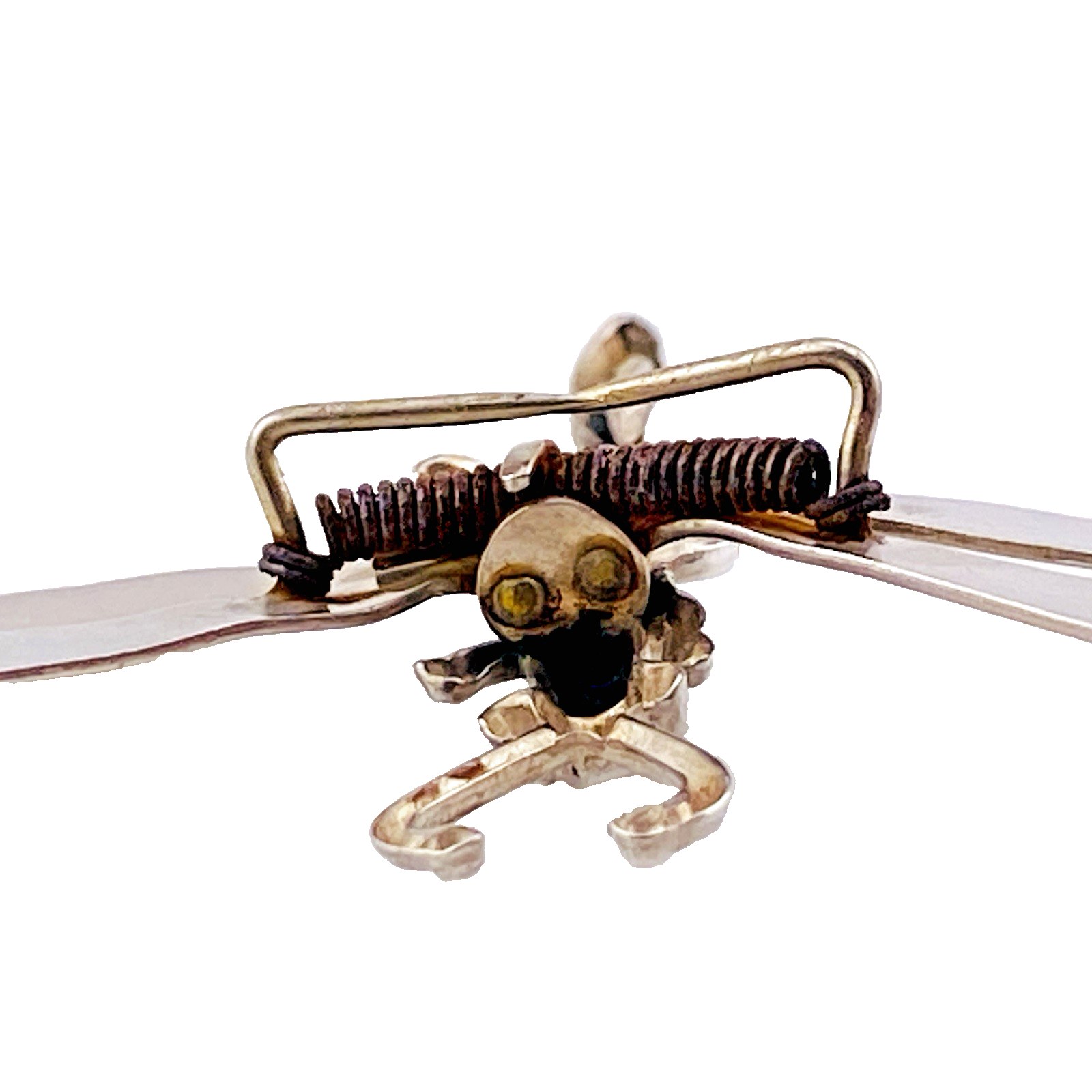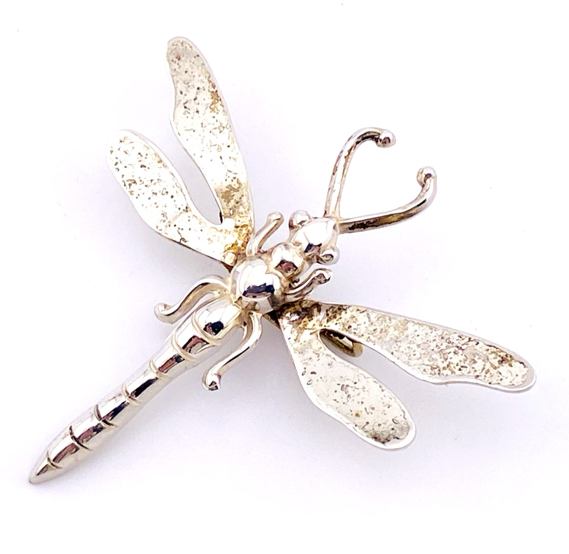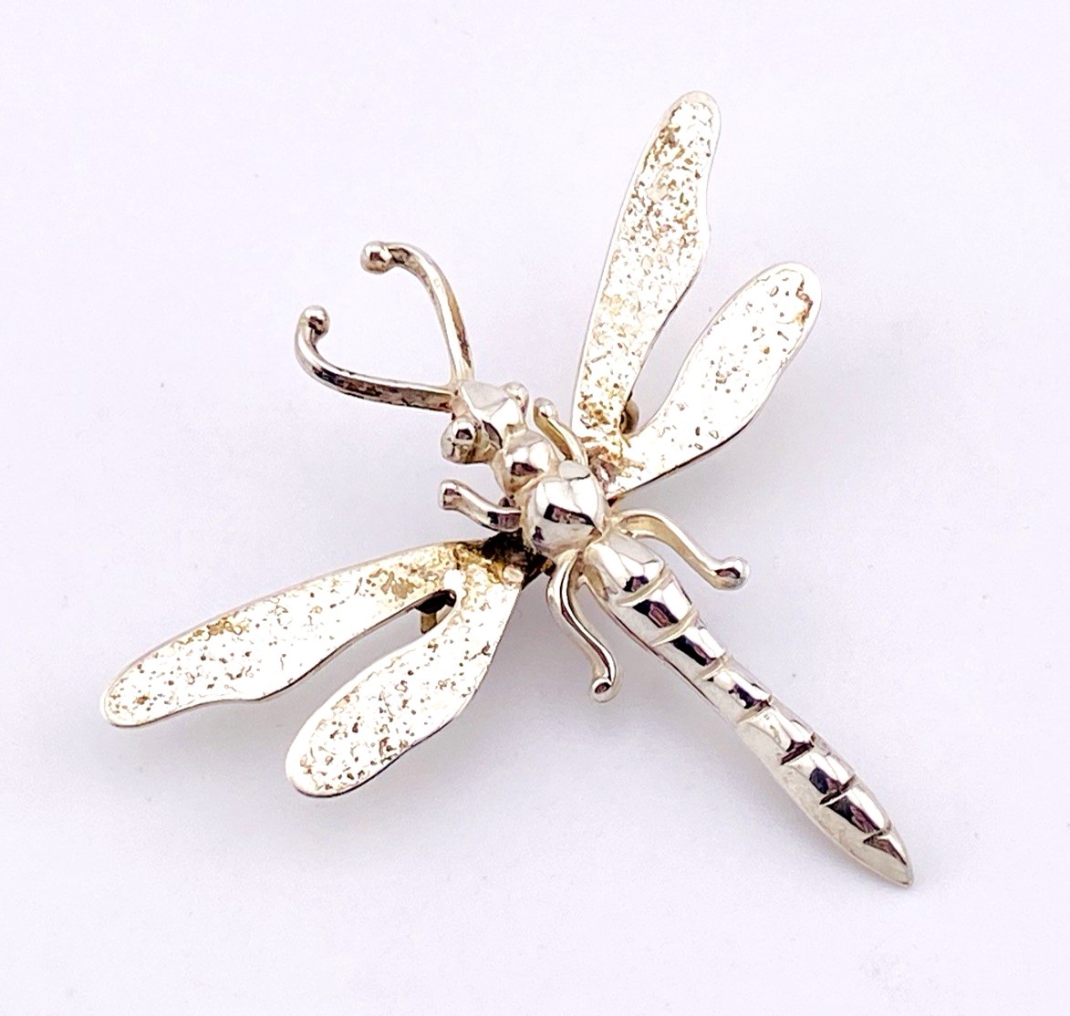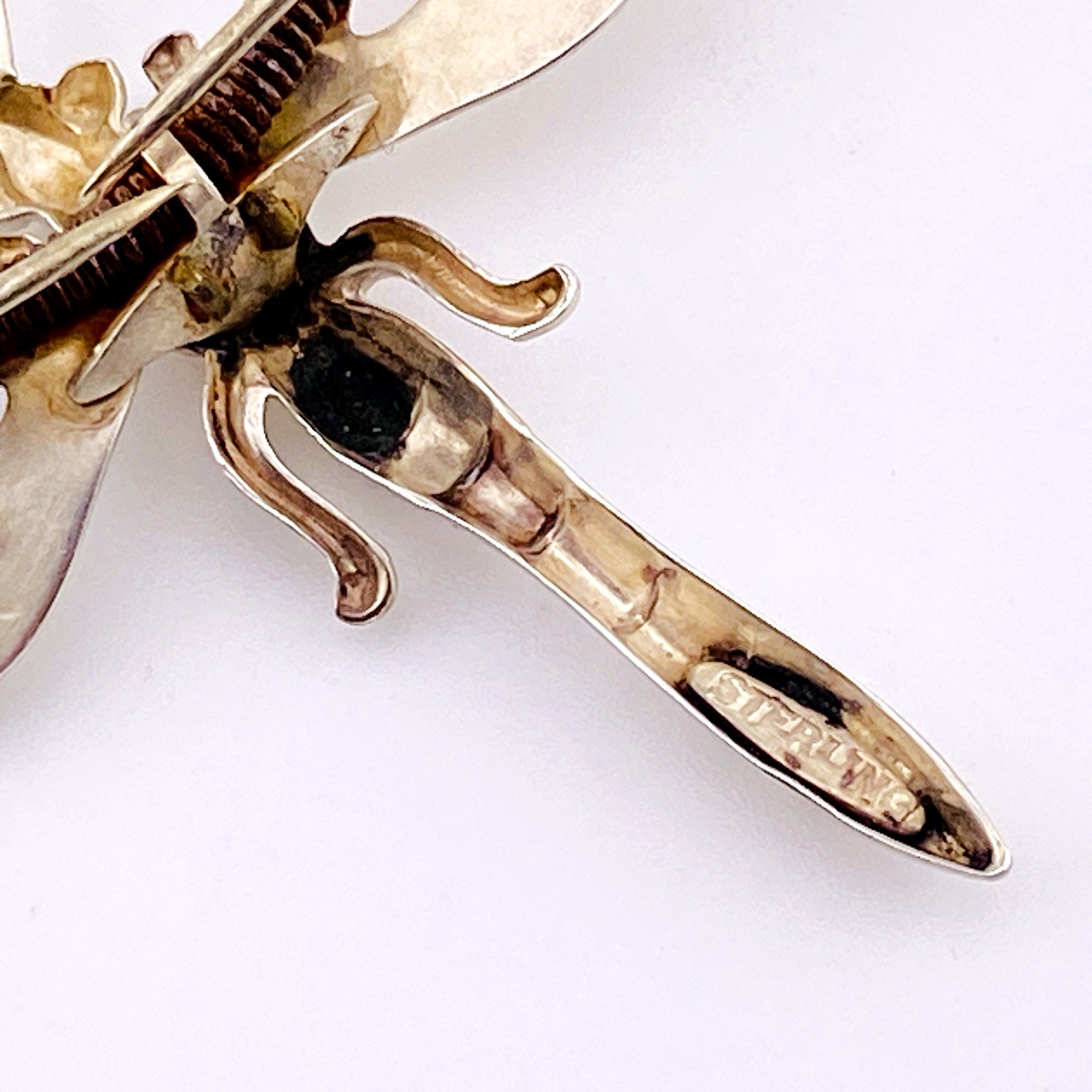Antique Sterling Silver Dragonfly Clip Brooch – Victorian Era Bug Pin – Very Unusual –