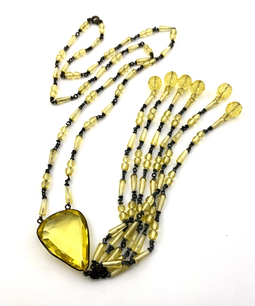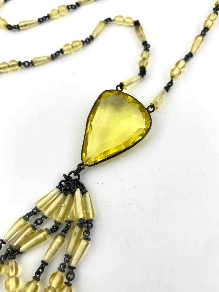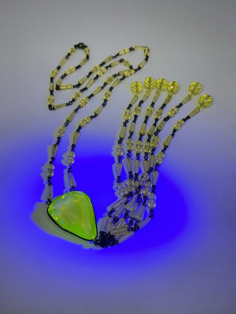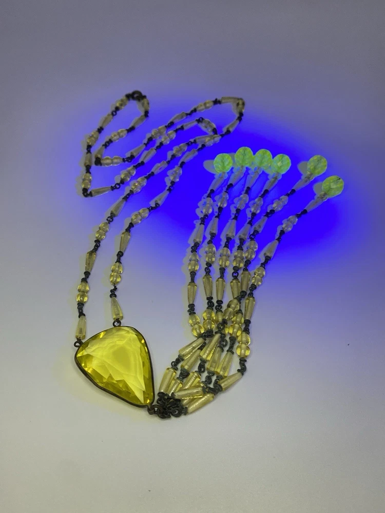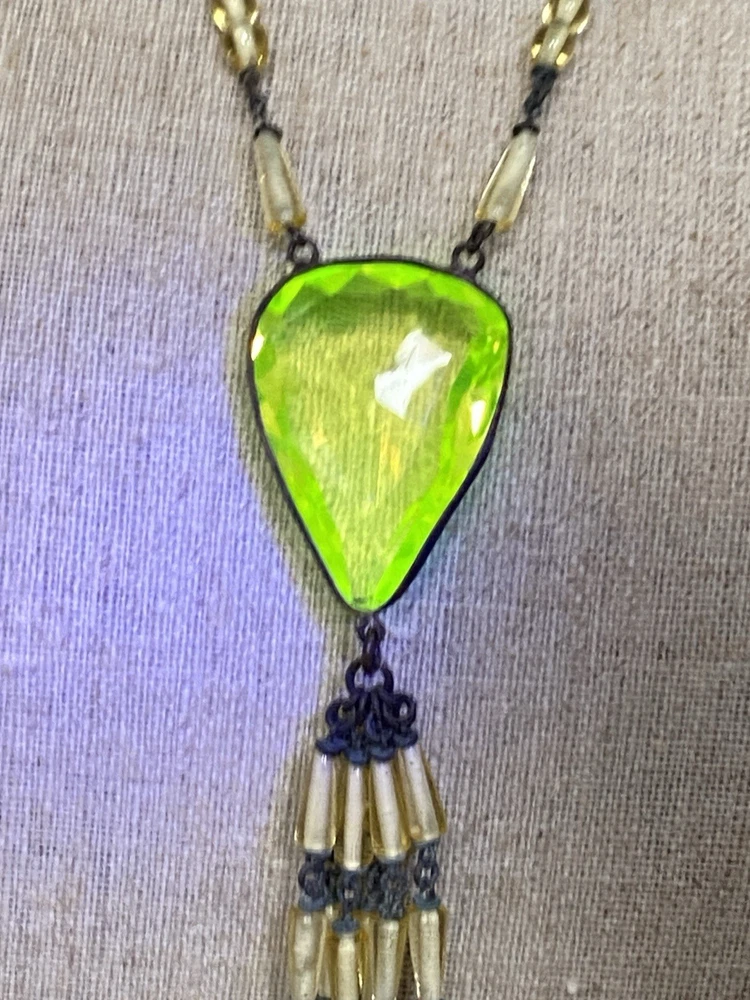 - Antique uranium (Vaseline) glass necklace