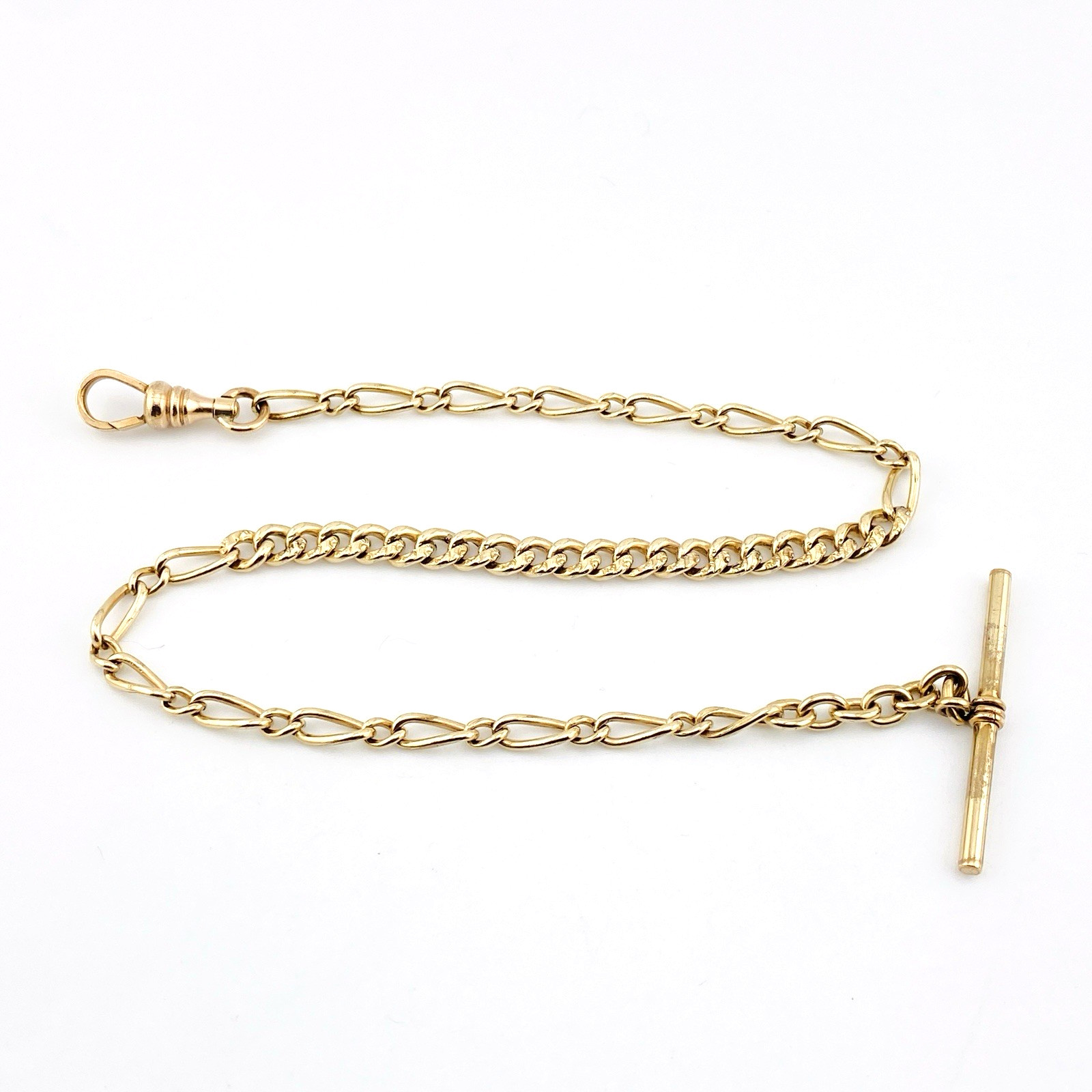 The chain is well made and in excellent antique condition. The dog clasp functions securely. There is a slight loss of gold on the toggle bar consistent with age and regular use, appropriate for a chain now over 120 years old. No maker’s mark is present; the piece has been carefully tested.