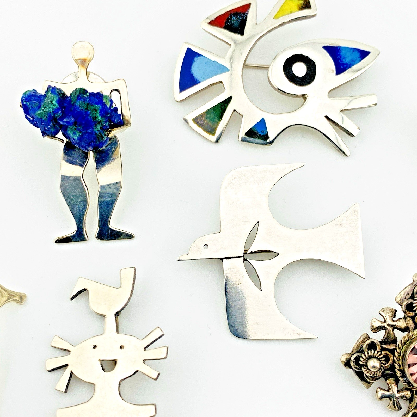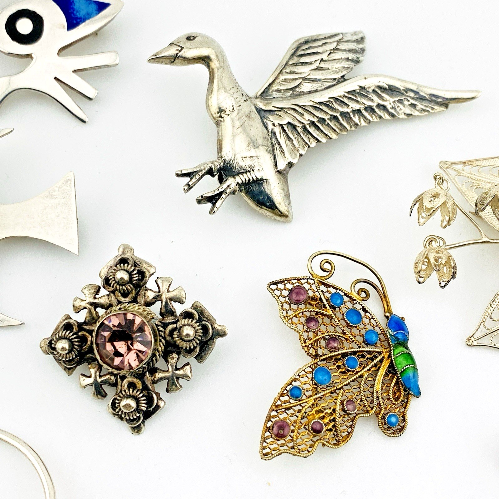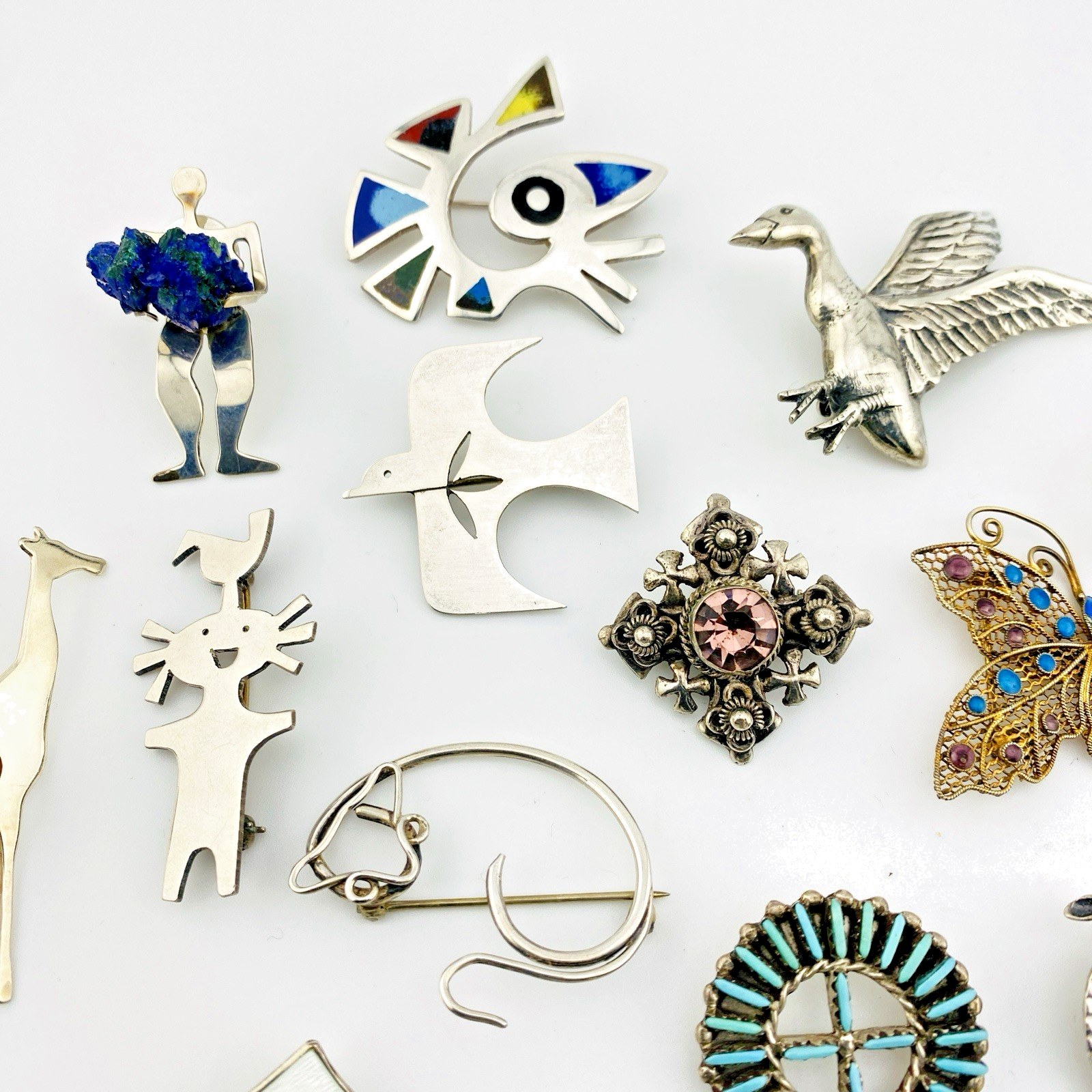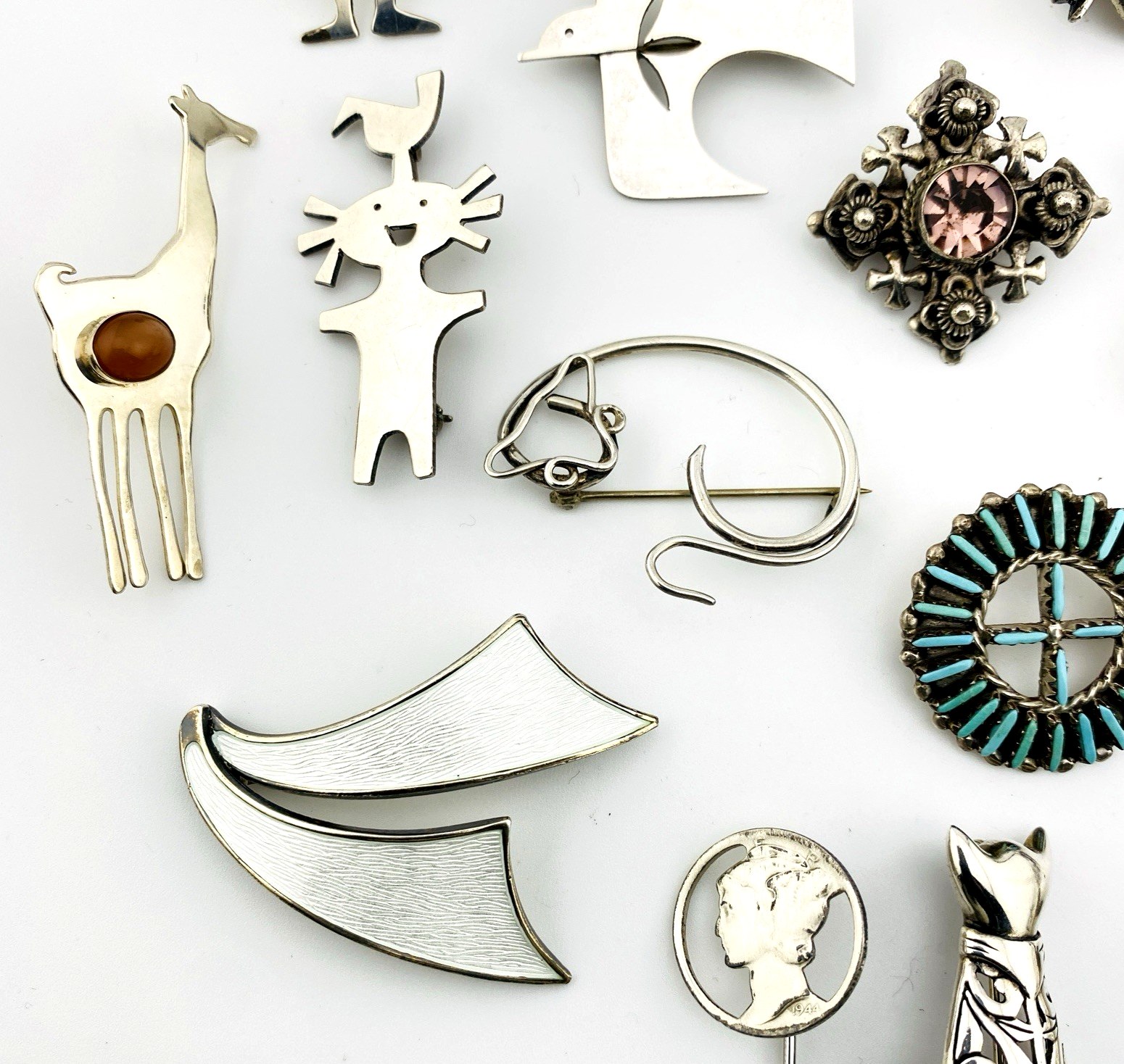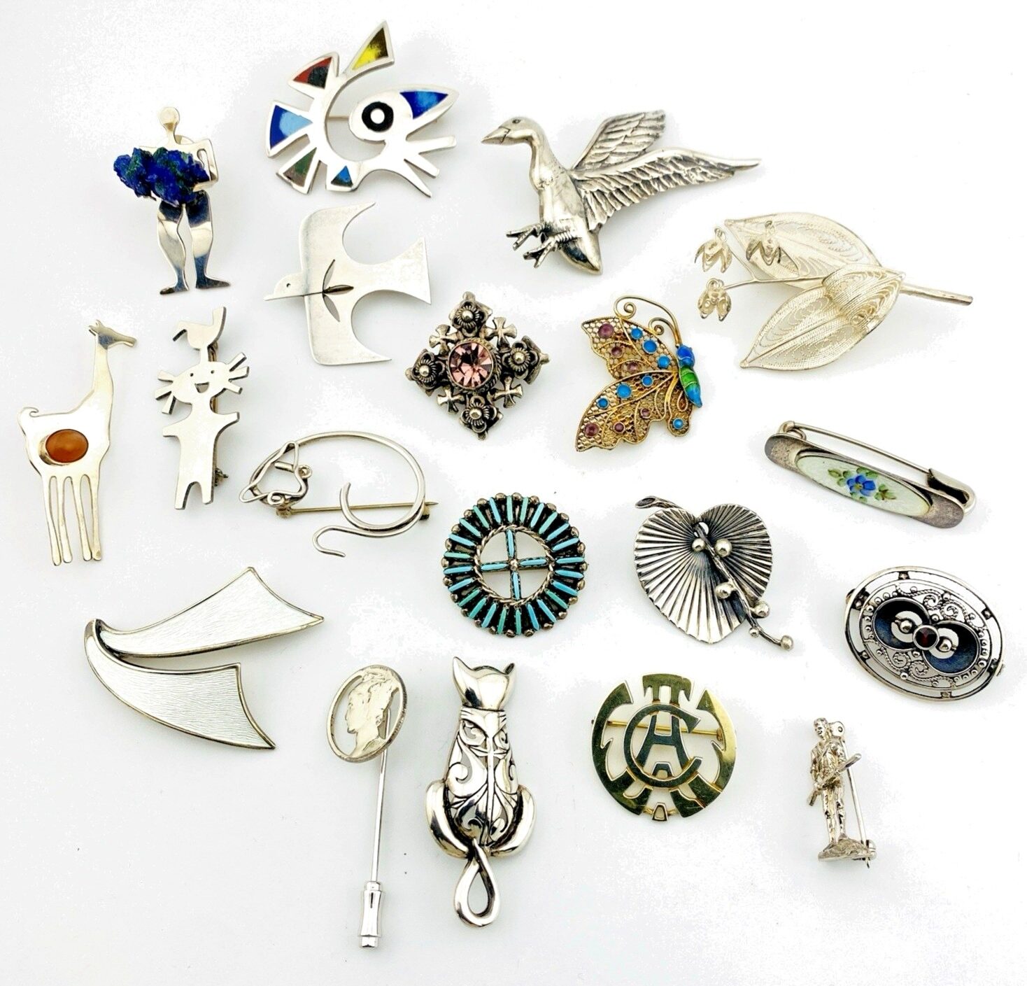Antique Vintage Sterling Silver Pin Brooch Lot – Modernist – Figurals – Signed – 19 Pcs
