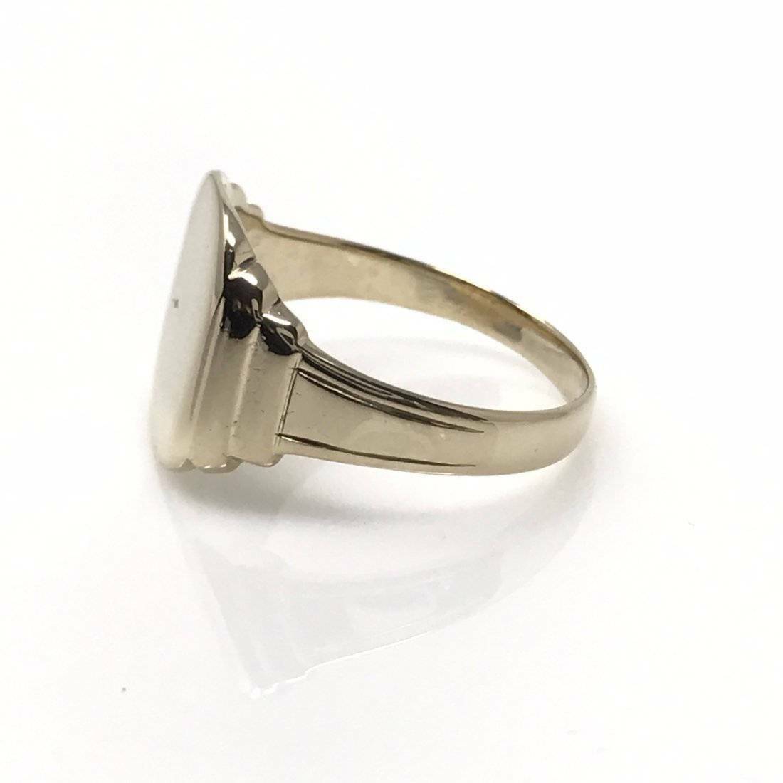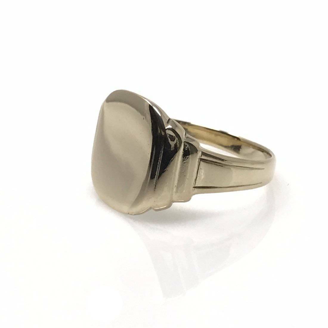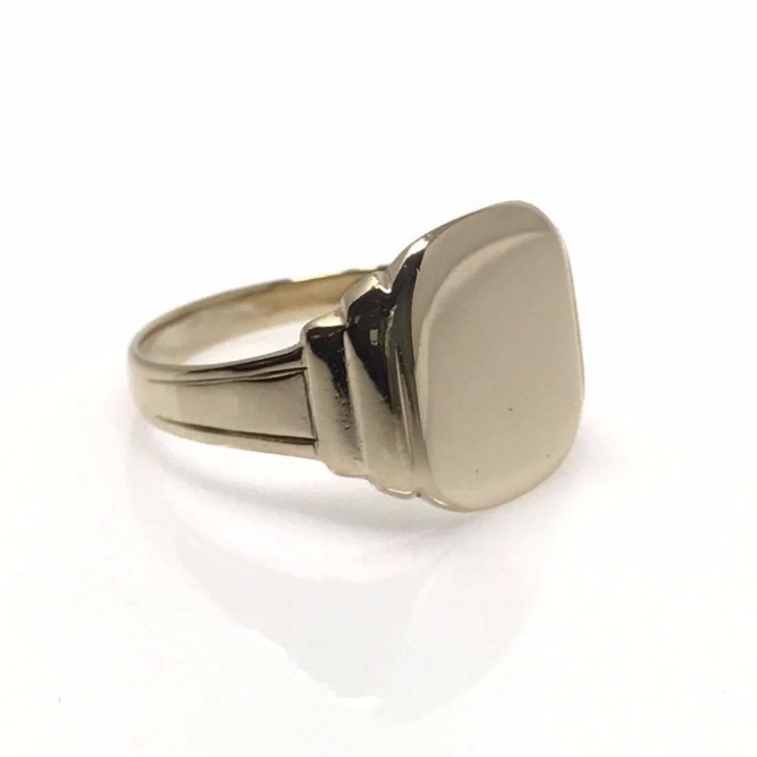 This is a great everyday ring. Dates from the Art Deco era, 20s to the 30s. The face is blank and you can have it engraved with your choice of initials.