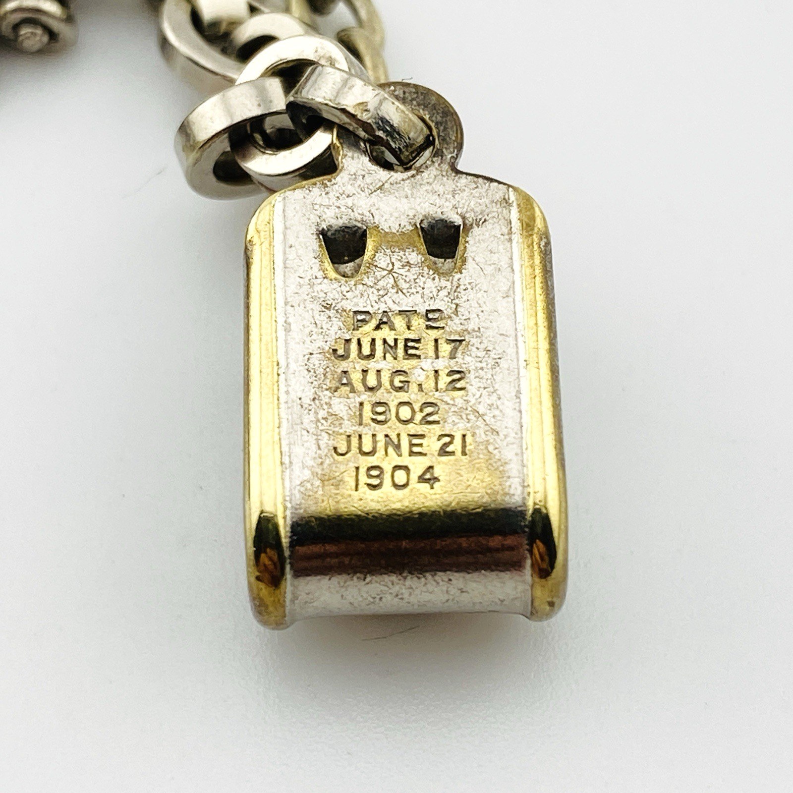 - Marks: Patent dates 1902 and 1904 on the clip