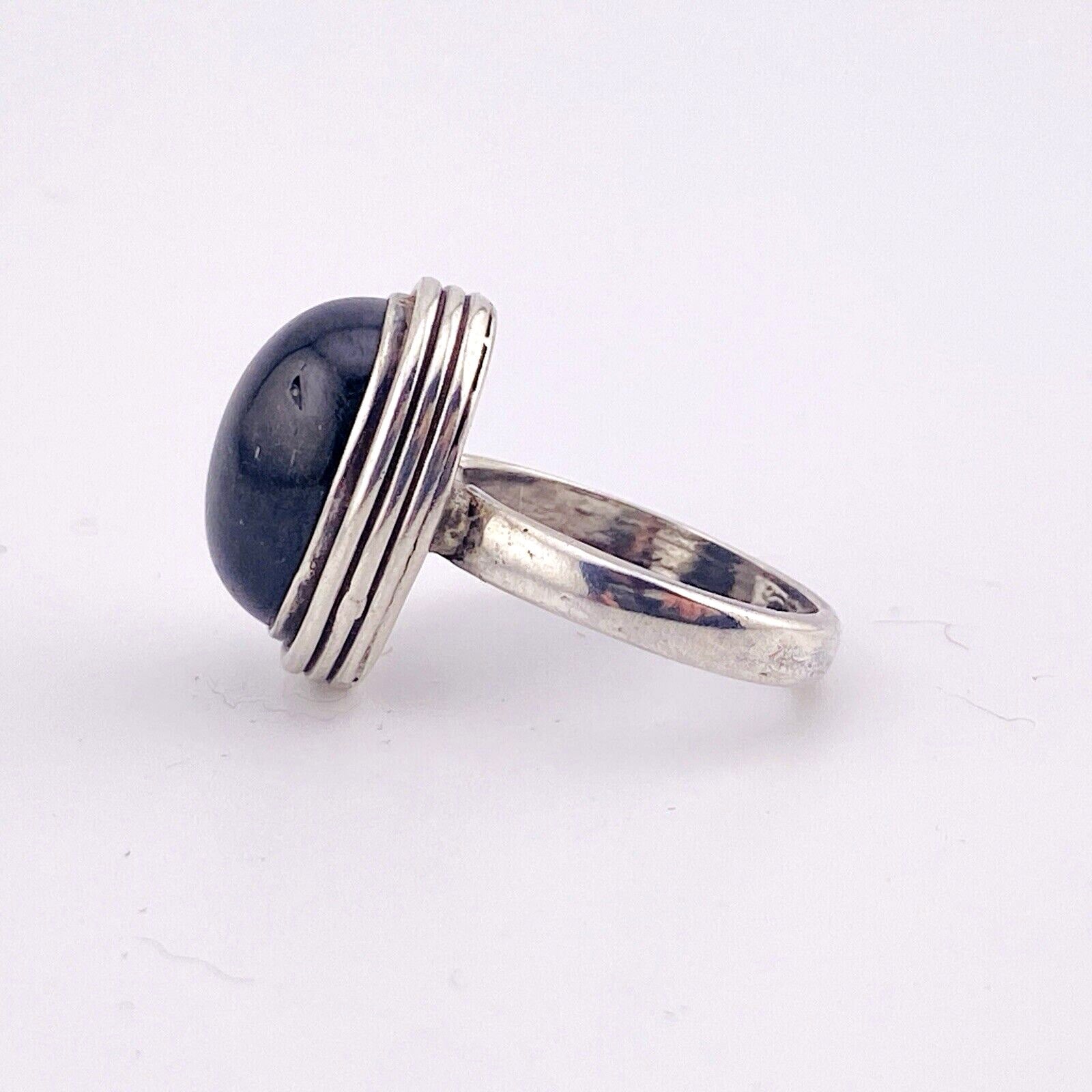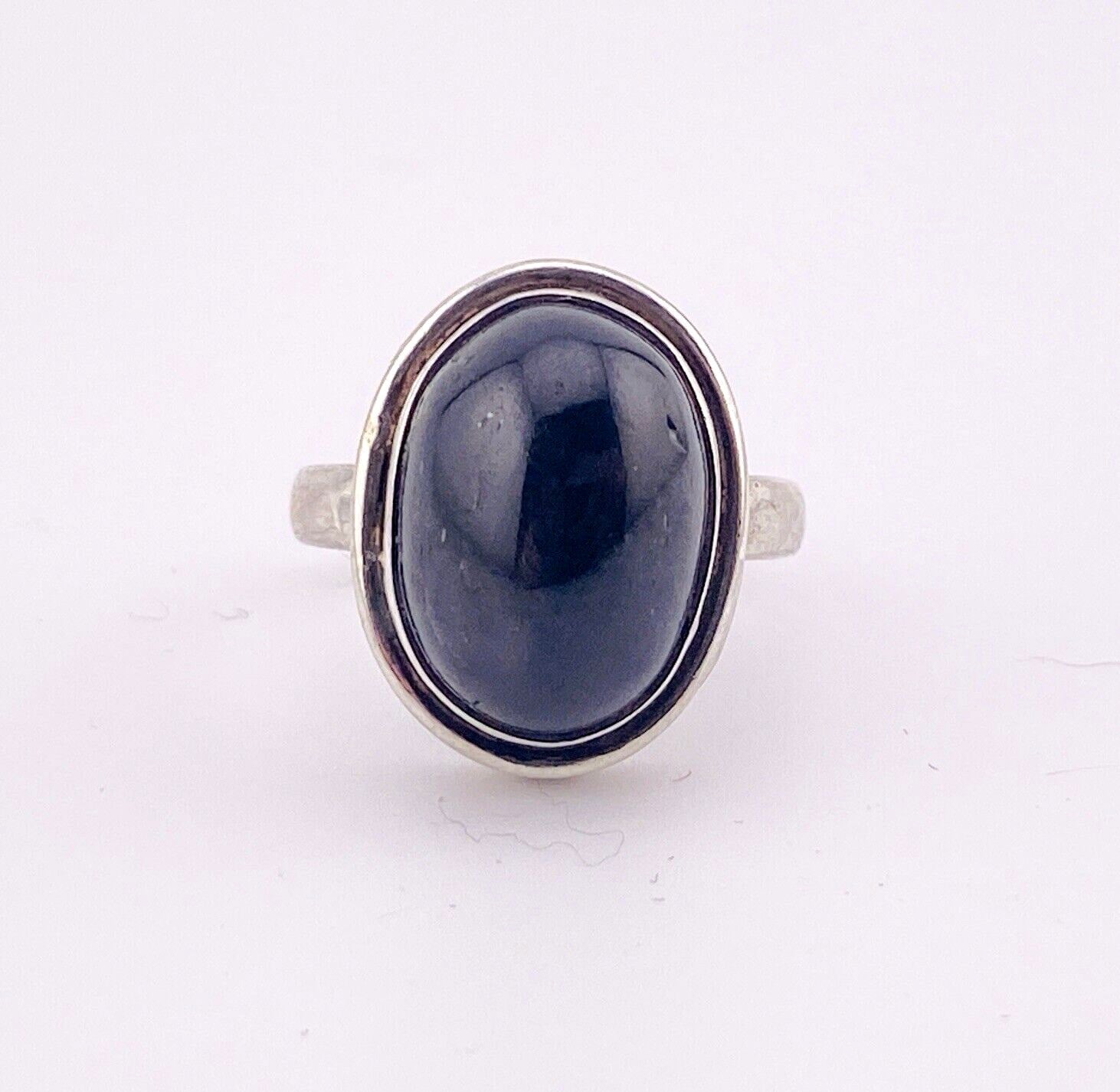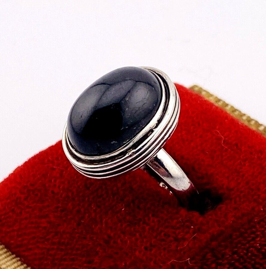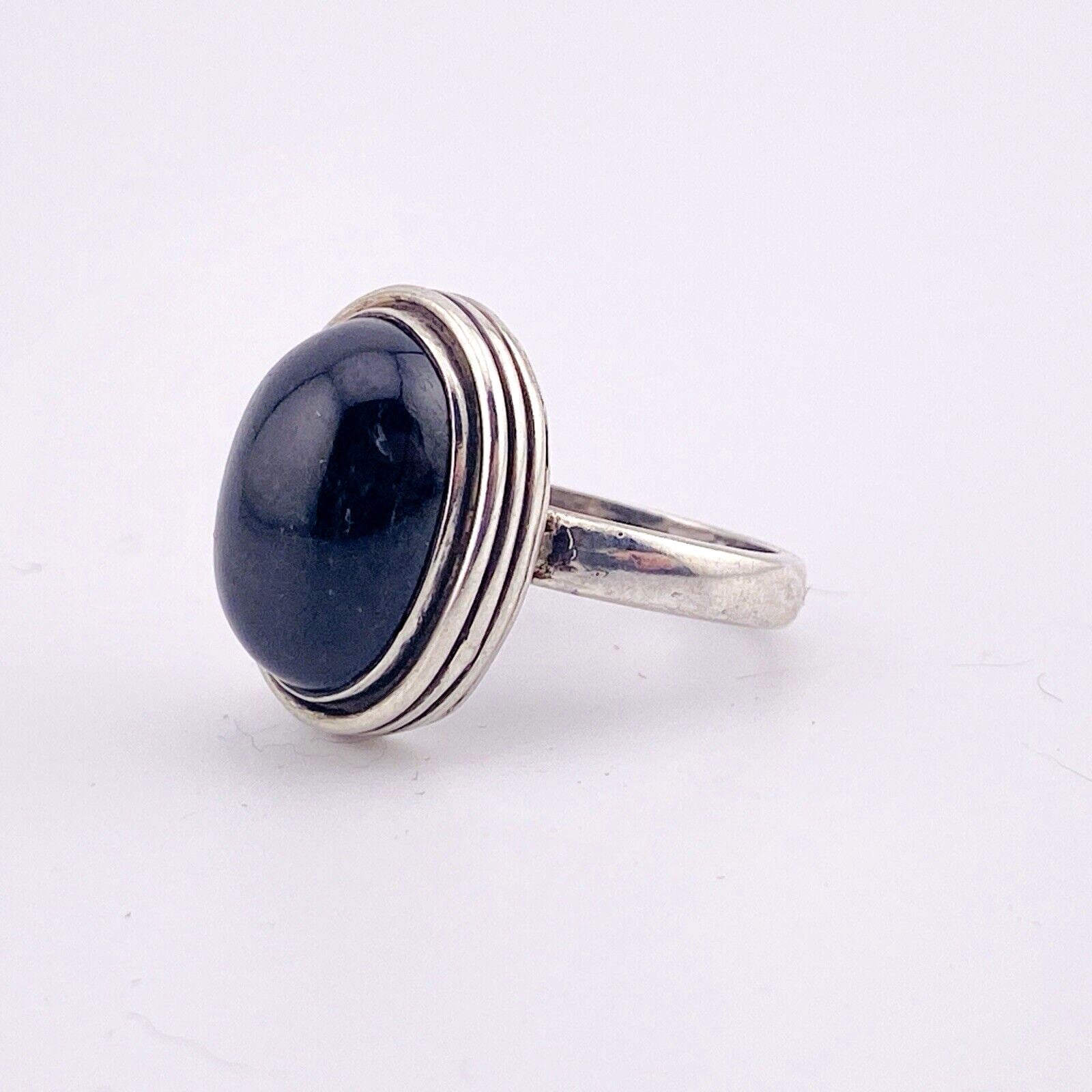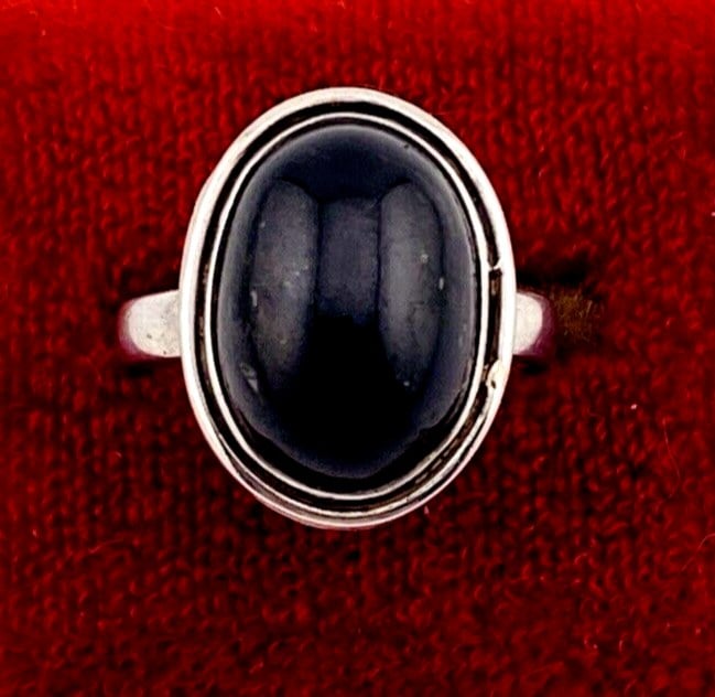 Vintage Black Onyx Oval Cabochon Sterling Silver Ring – Size 6.5 –