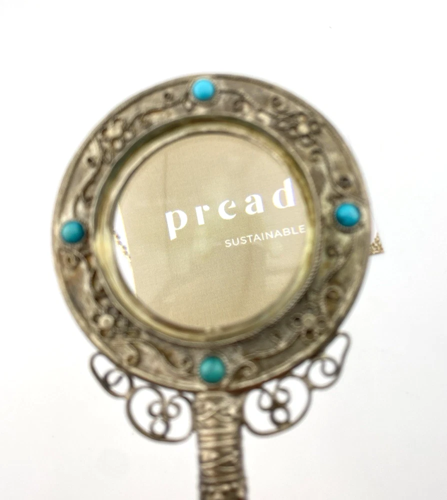 An ornate vintage magnifying glass featuring a sculptural handle and decorative metalwork, blending function with a strong visual presence.