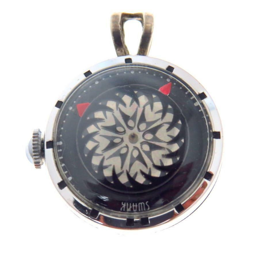 Super fun vintage kaleidoscopic pendant watch made for Swank. It was quite pricey at the time, and it is hand engraved 25th on the reverse. Was it a 25th Anniversary gift? Maybe a 25th birthday gift.