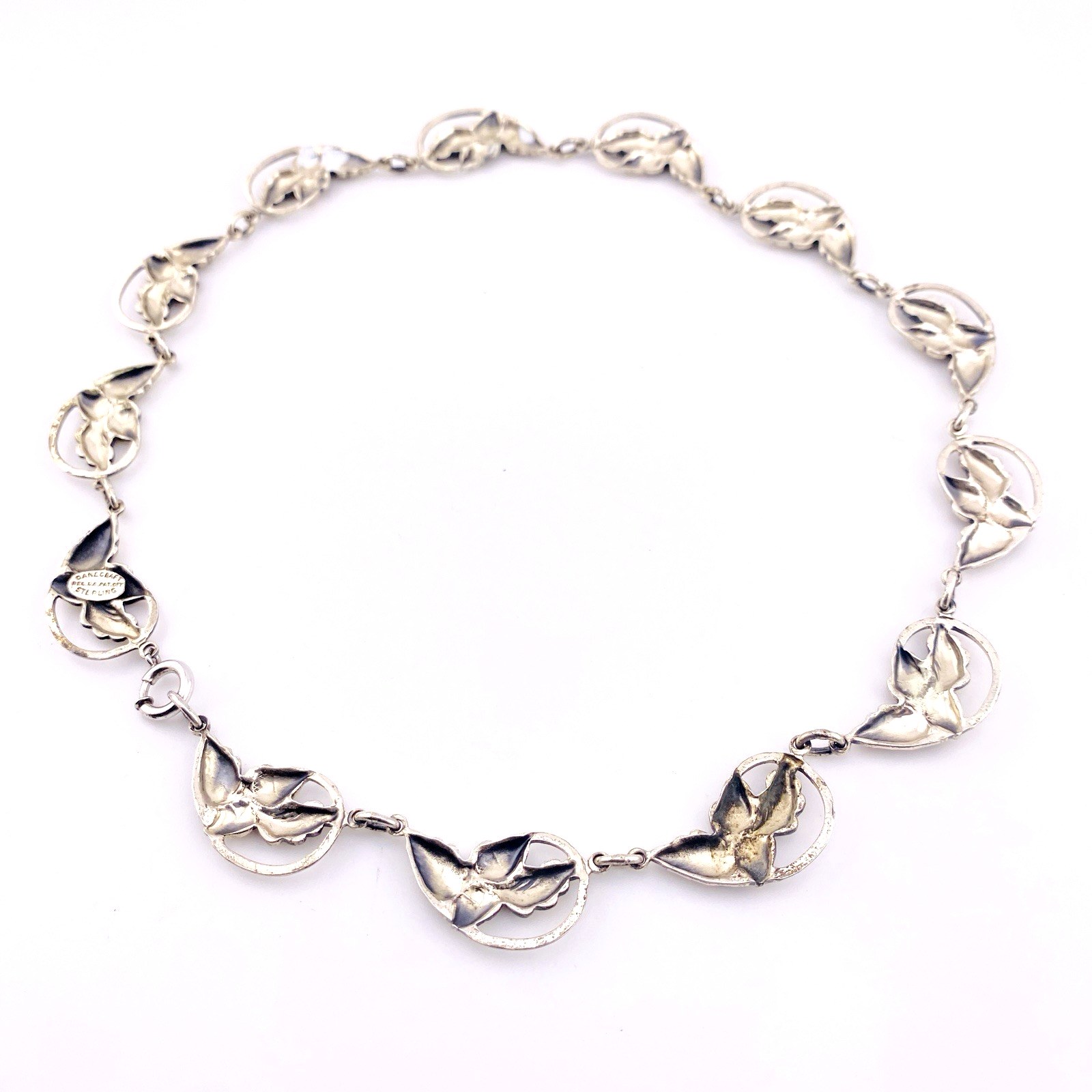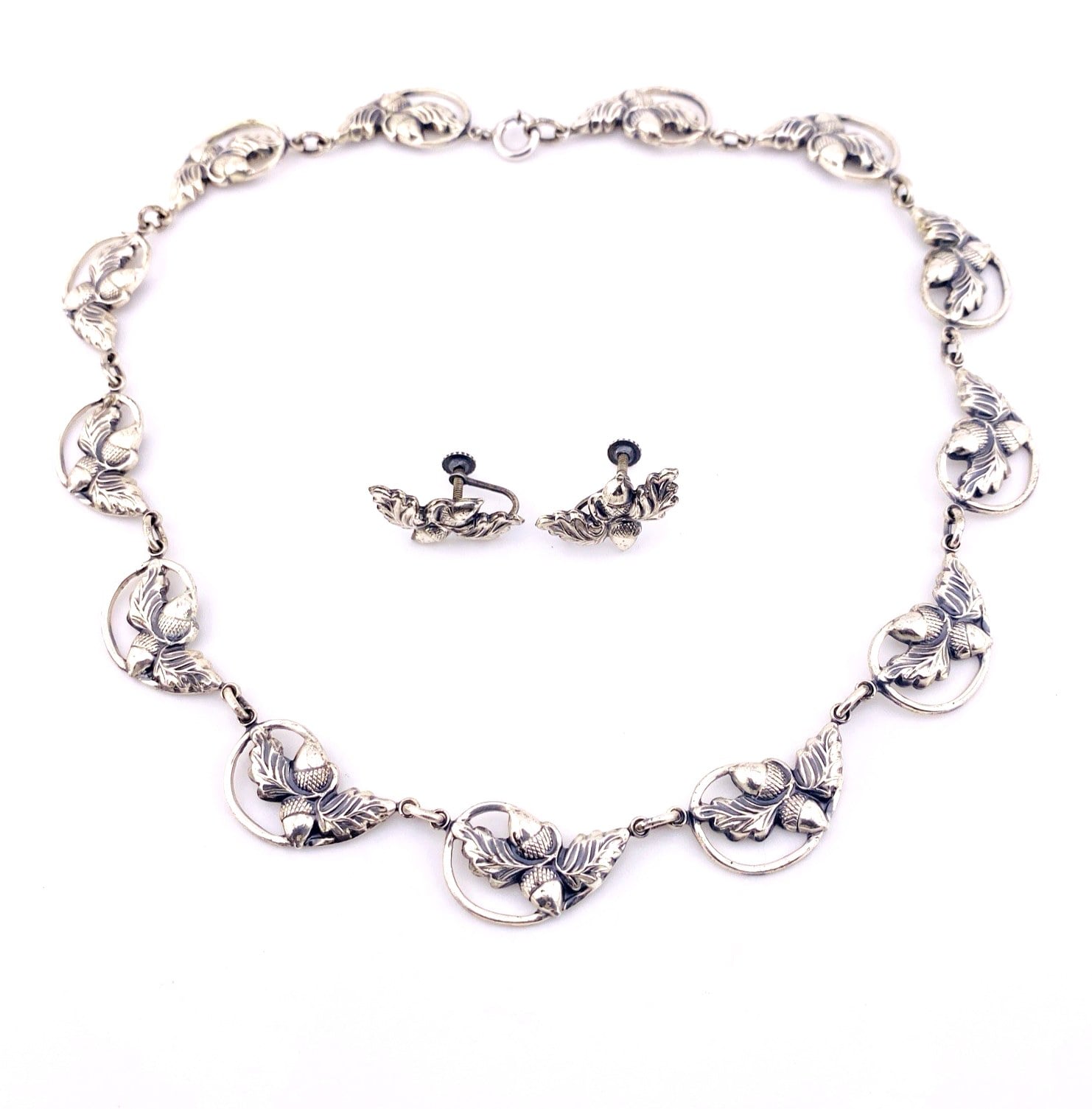 Danecraft Sterling Silver Necklace Earrings Set – Signed – Acorns and Leaves Links – Mid Century Chic