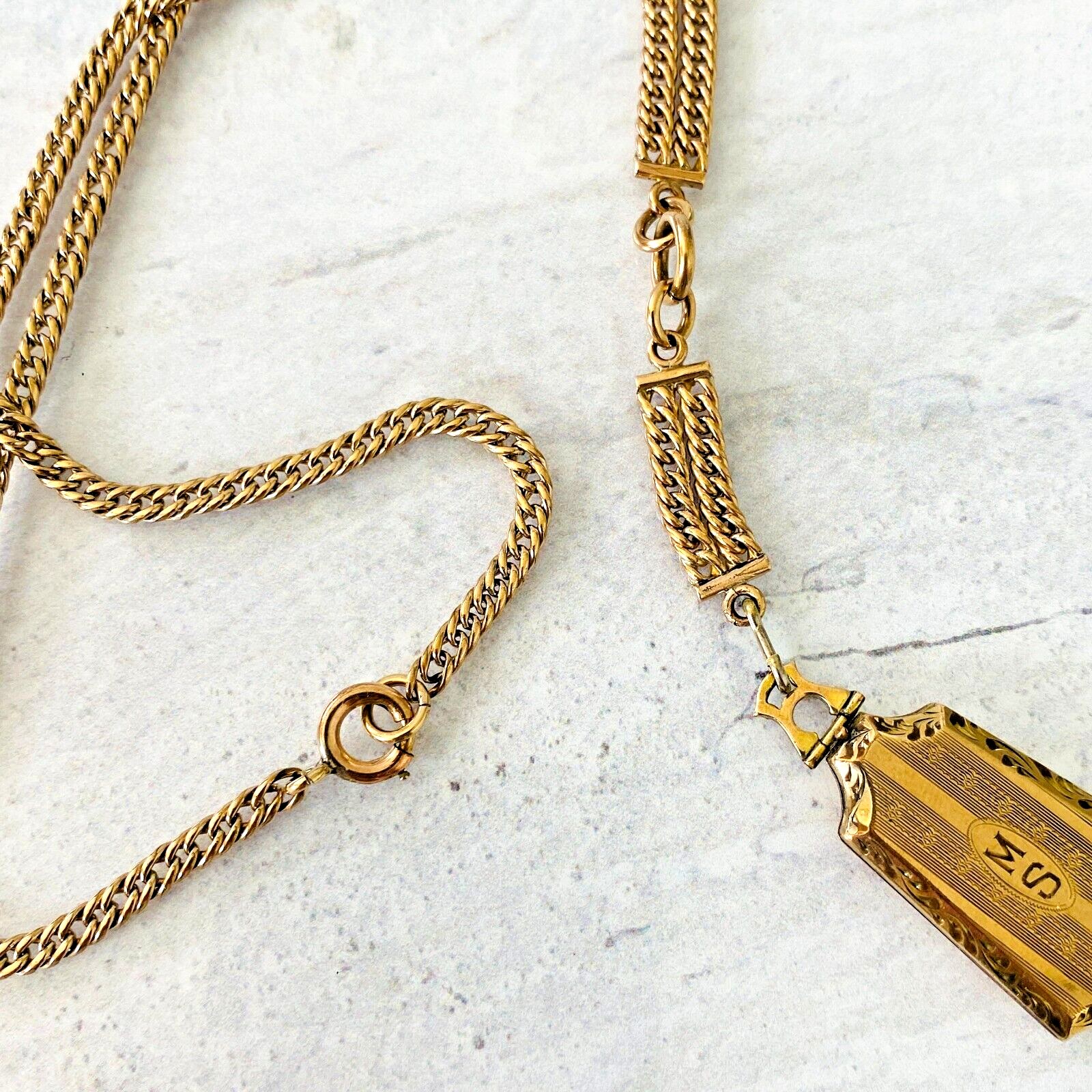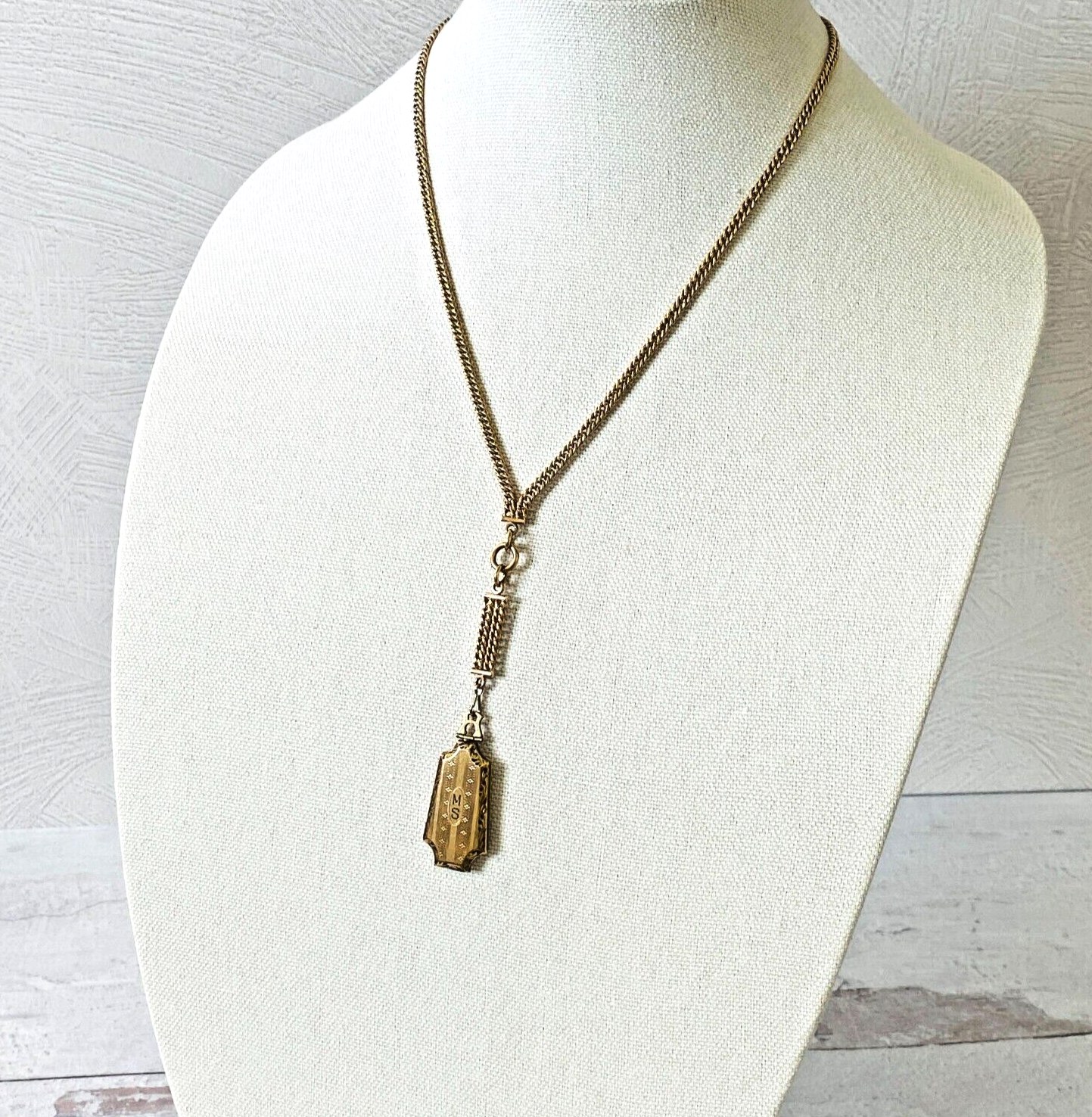 Antique Edwardian Gold Filled Y Necklace w Pendant Clip Add Your Own Locket or Charms