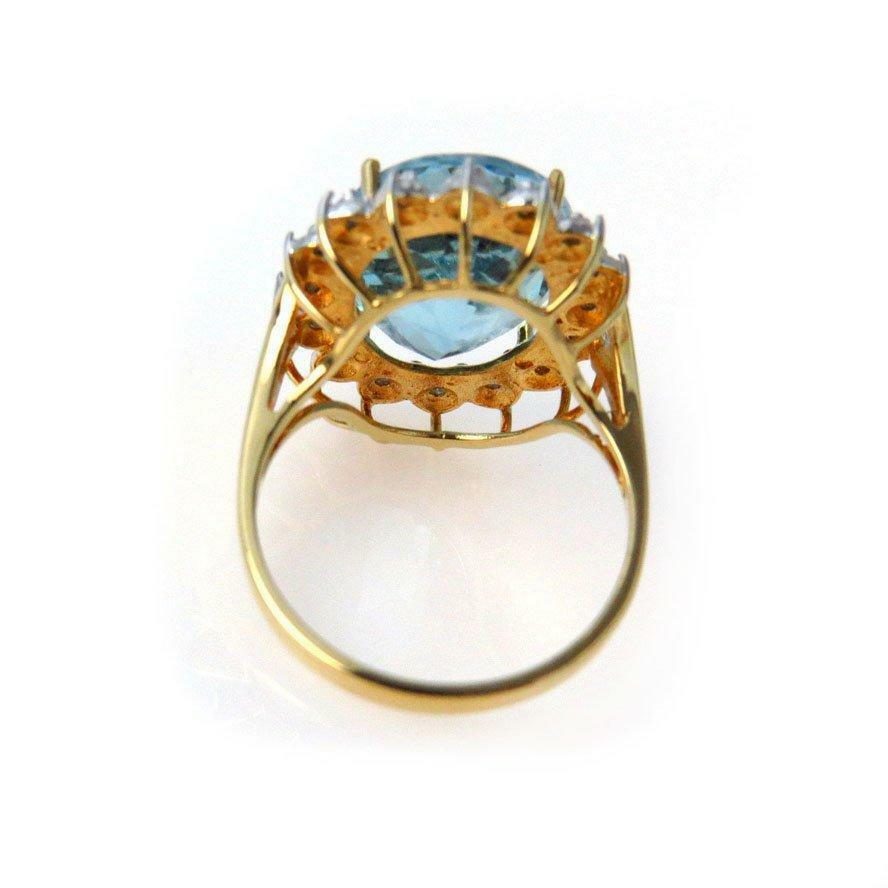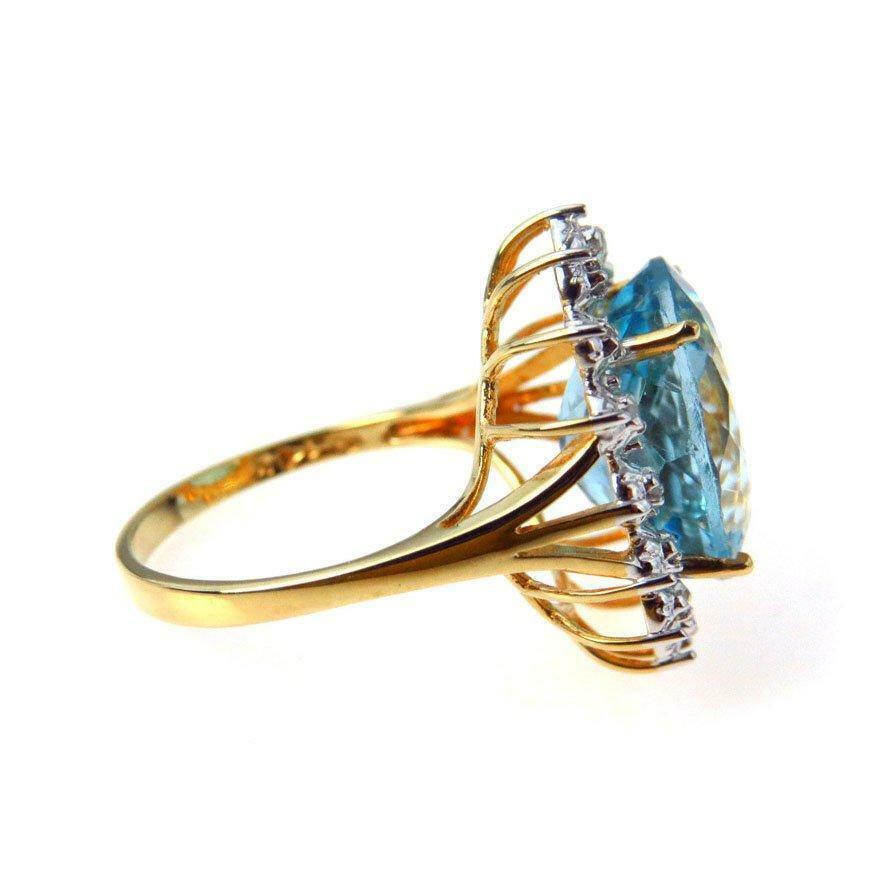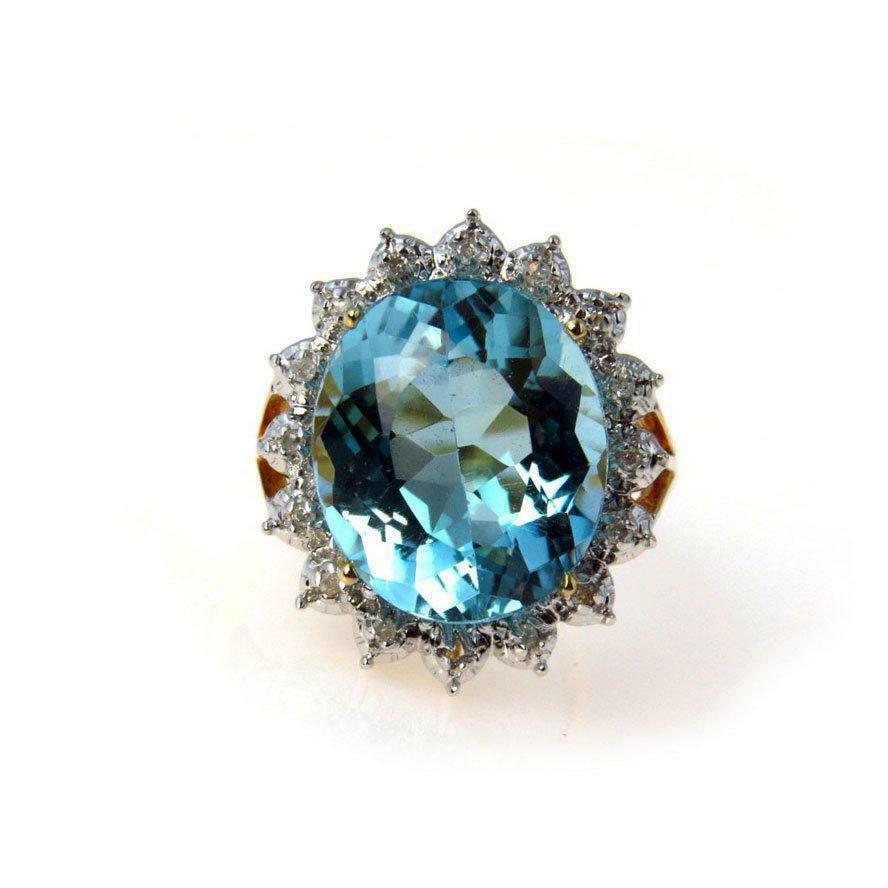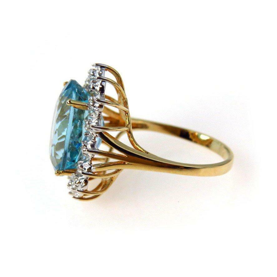 Stunning vintage Estate 14k Gold Blue Topaz Diamond halo dinner ring that will not go unnoticed.