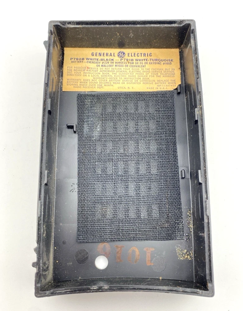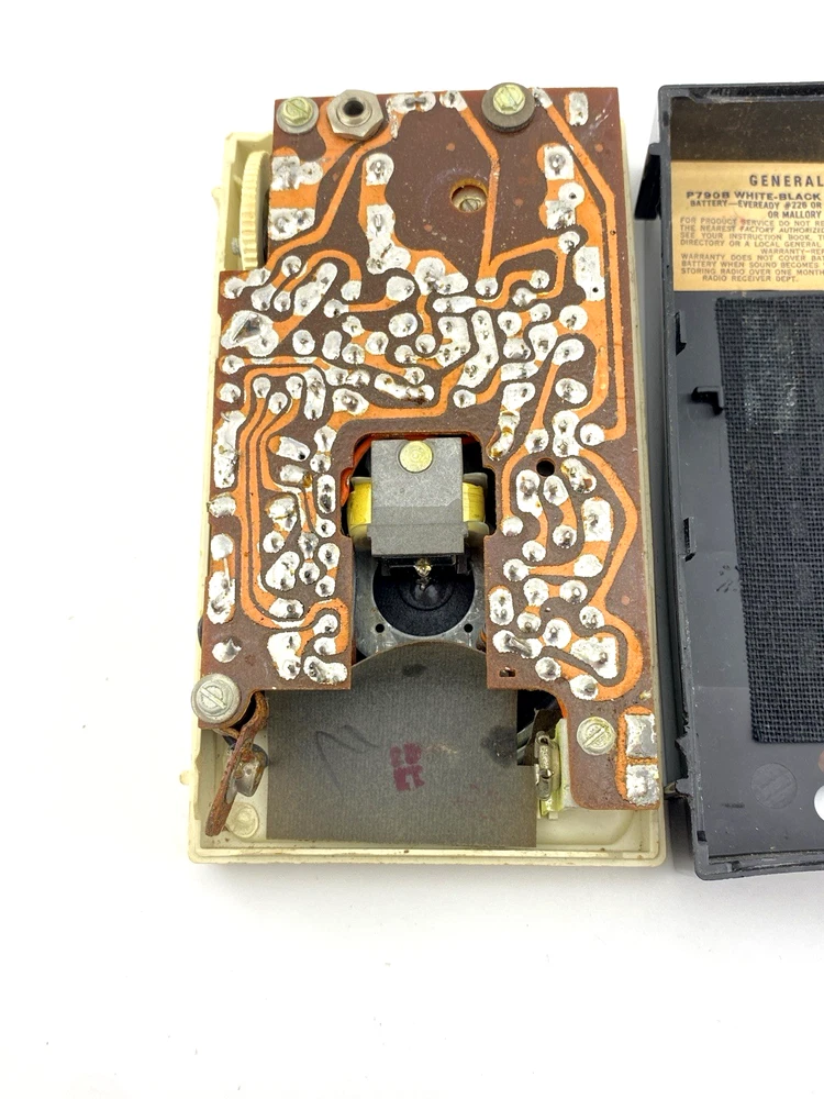 Untested and sold as-is for restoration or display. The radio appears clean, with no visible corrosion in the battery compartment or connectors.