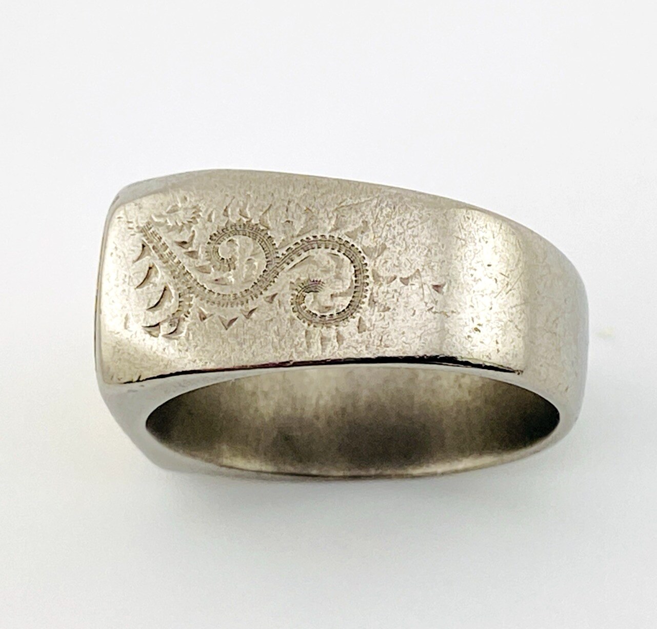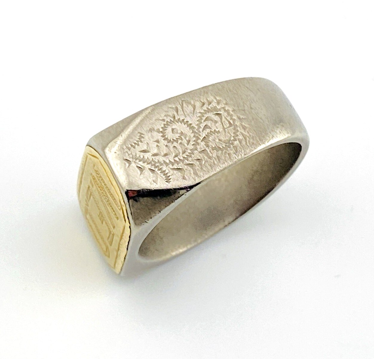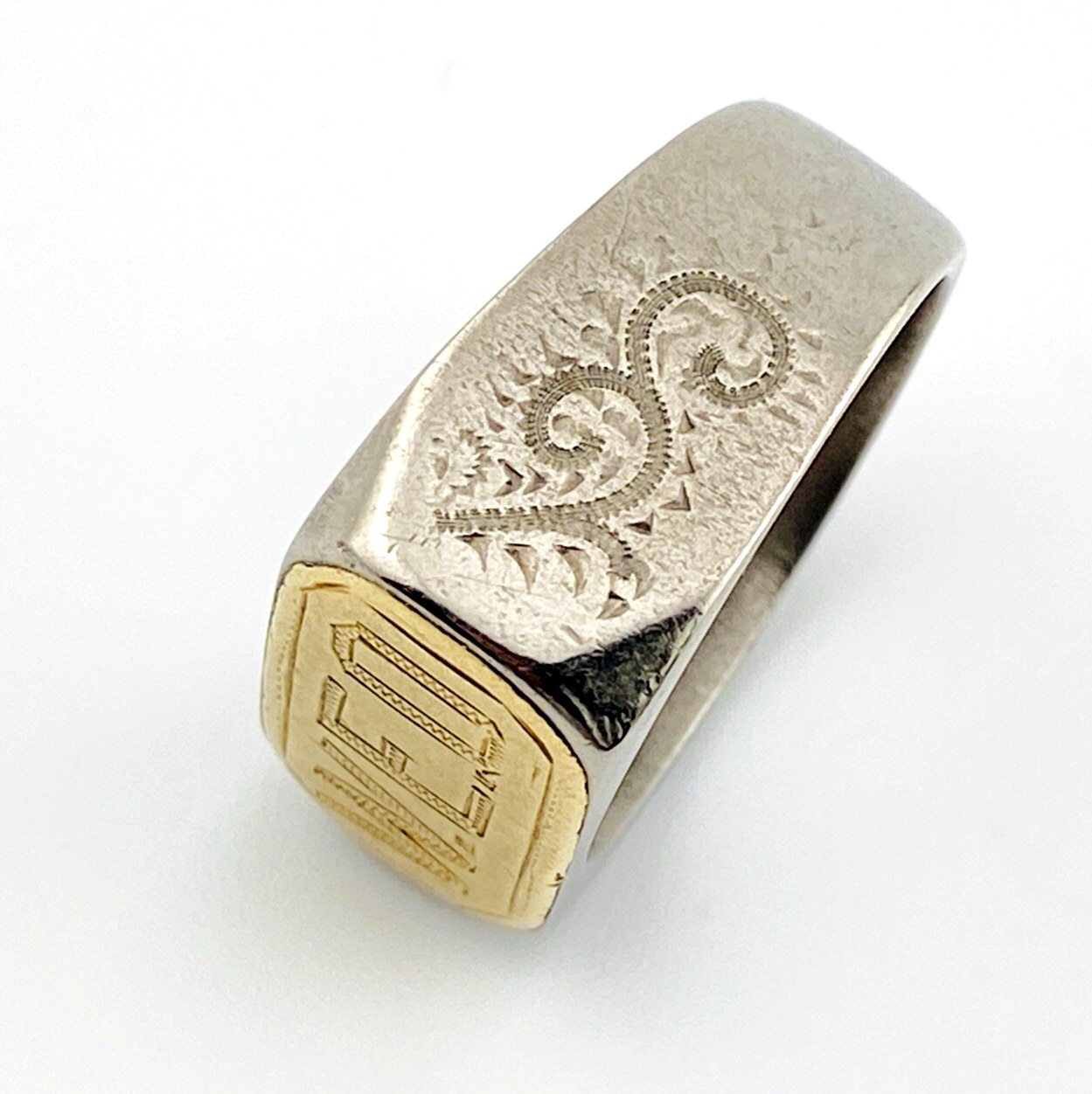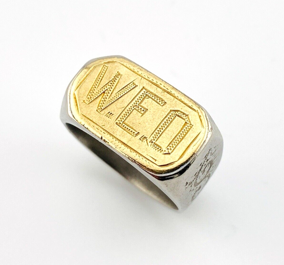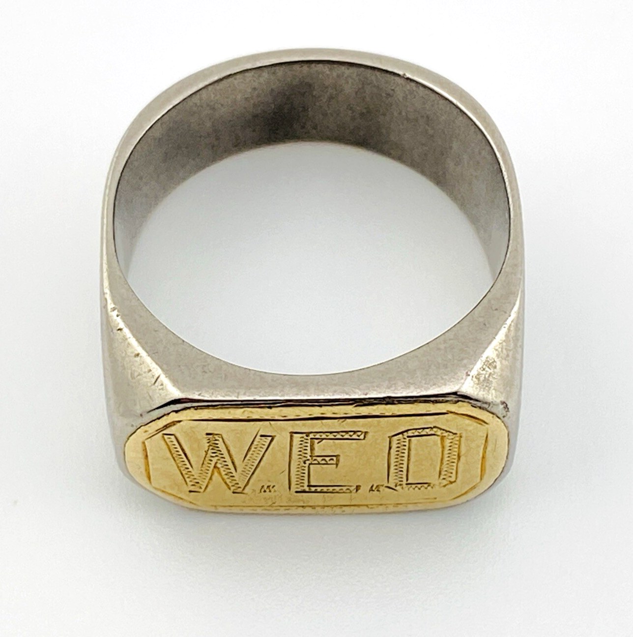 Vintage Gold and Steel Signet Ring – Men’s Size 9 – Artisan Made – Hand Engraved WEO or WED