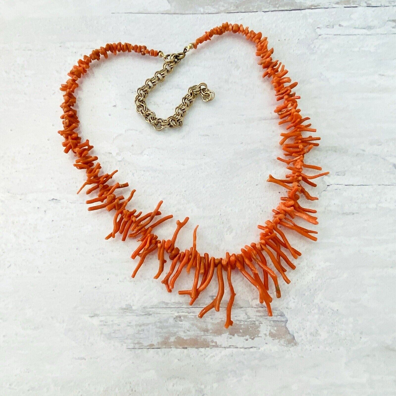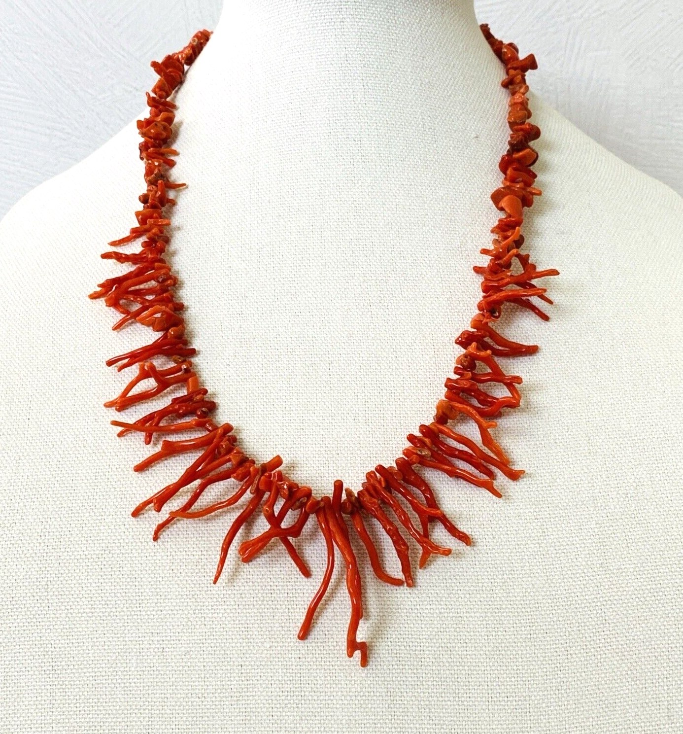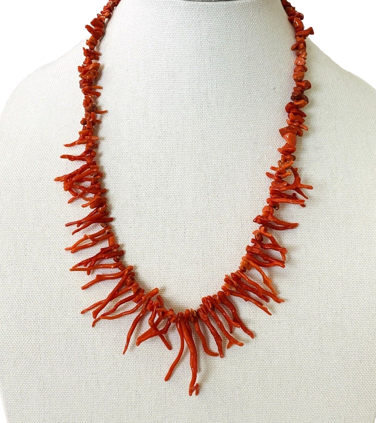 Gorgeous graduated coral branch necklace. The coral branches are natural and not color-enhanced.