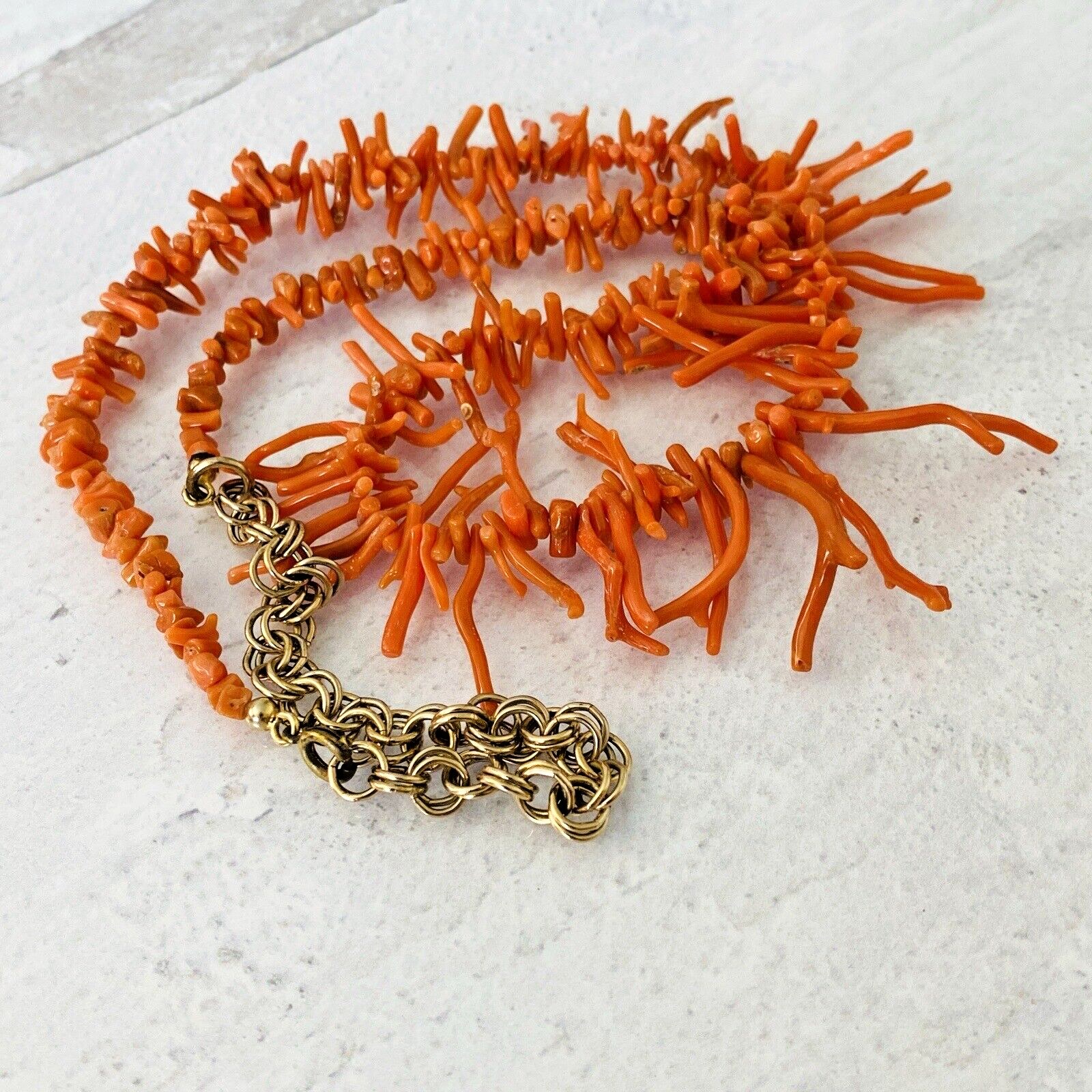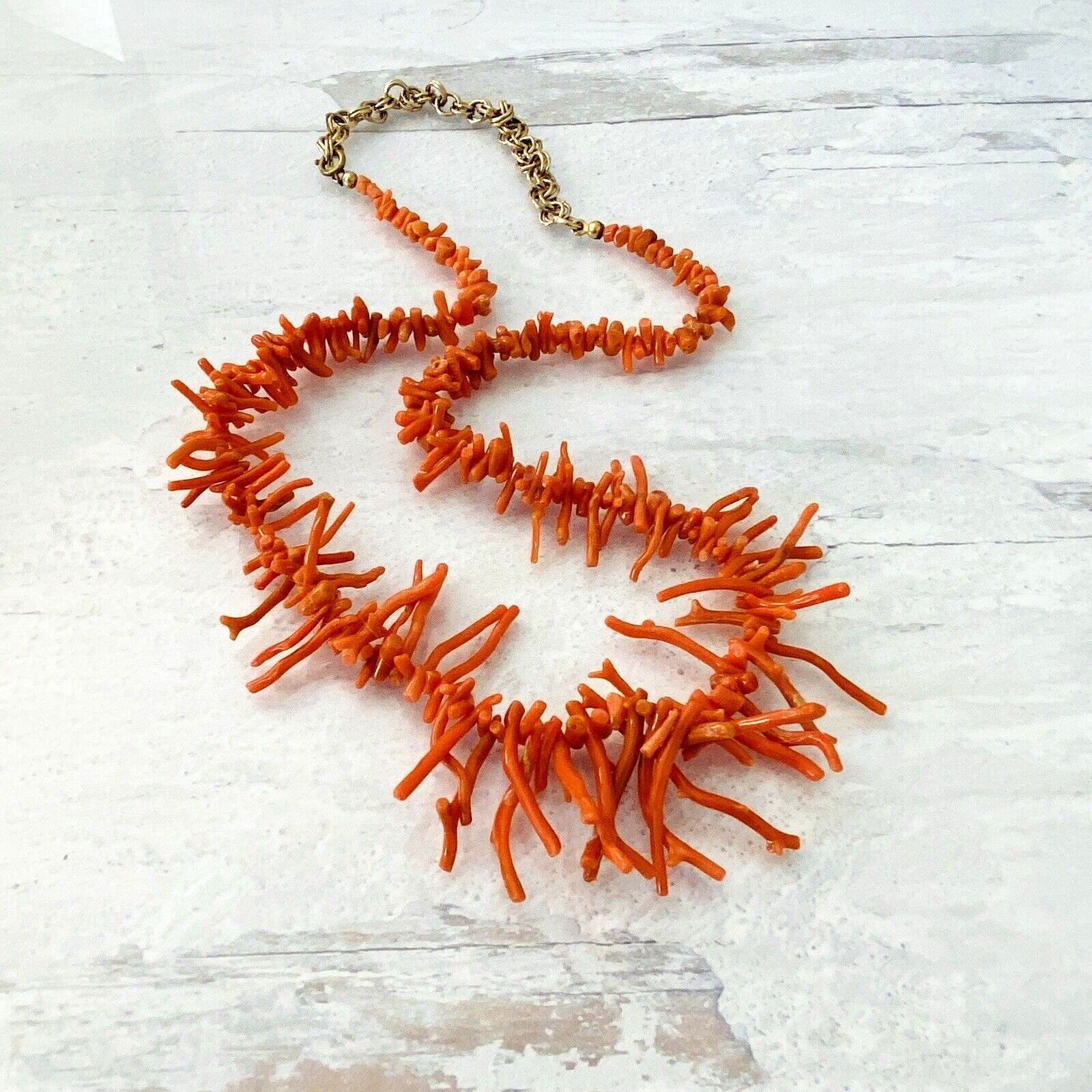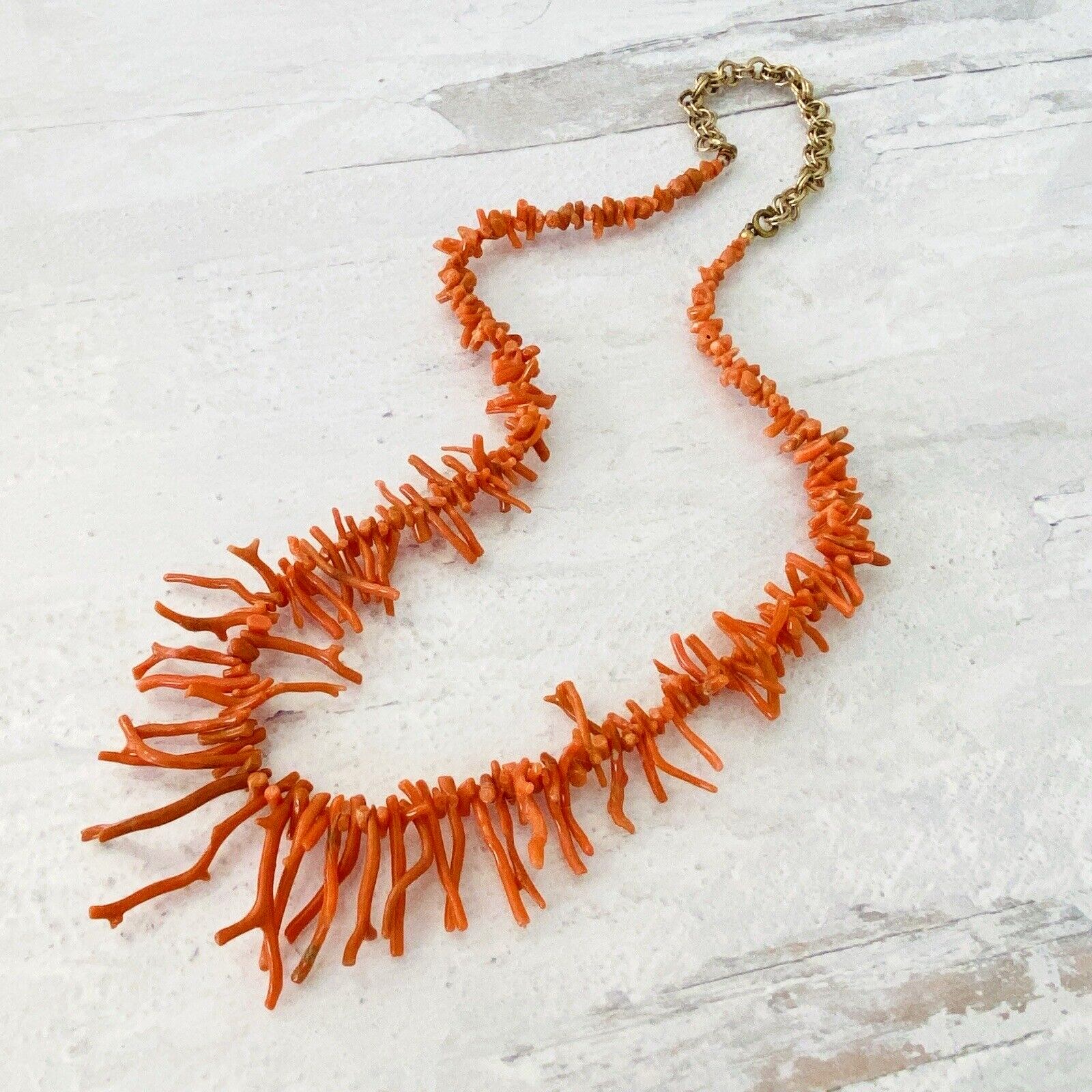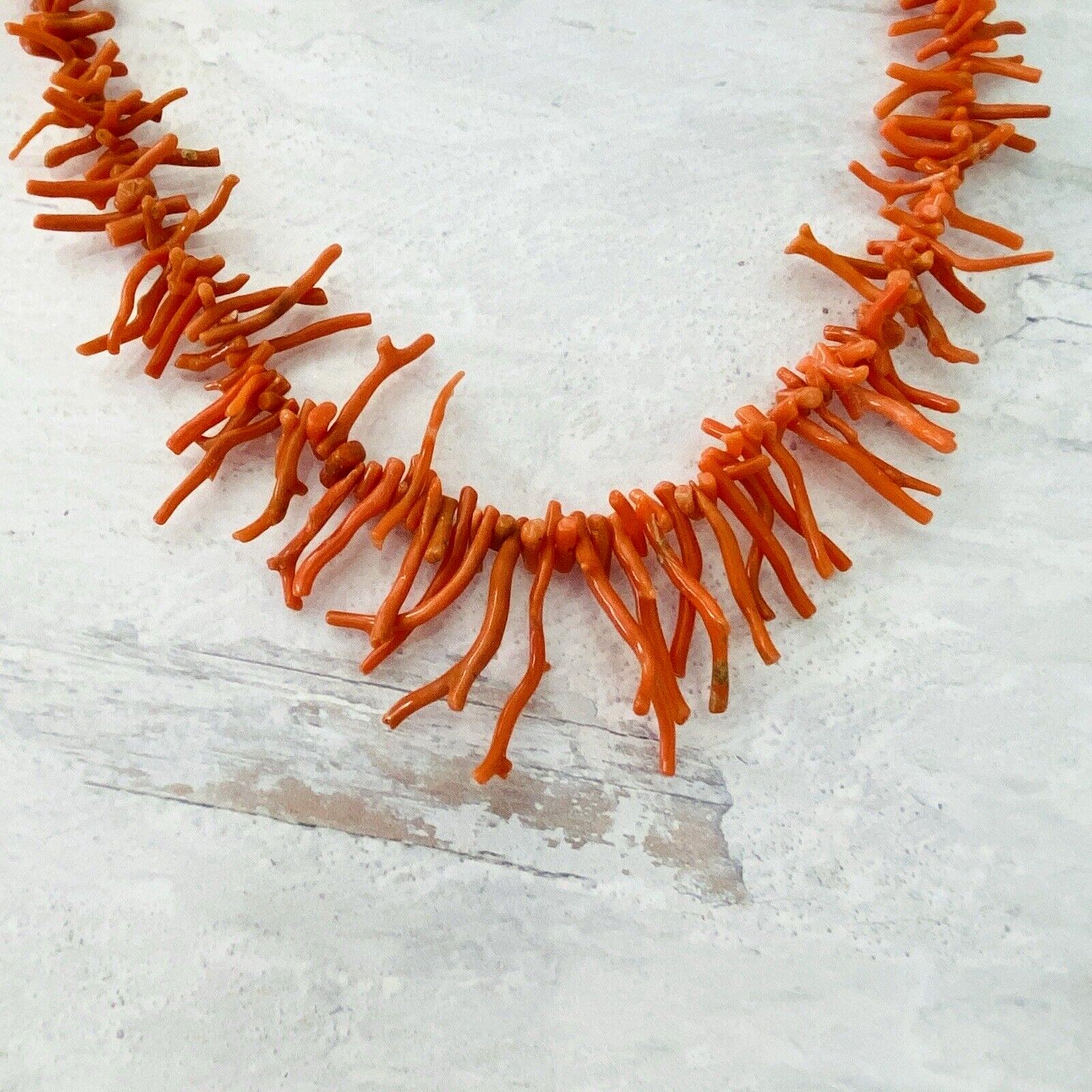 Gorgeous graduated coral branch necklace. The coral branches are natural and not color-enhanced.