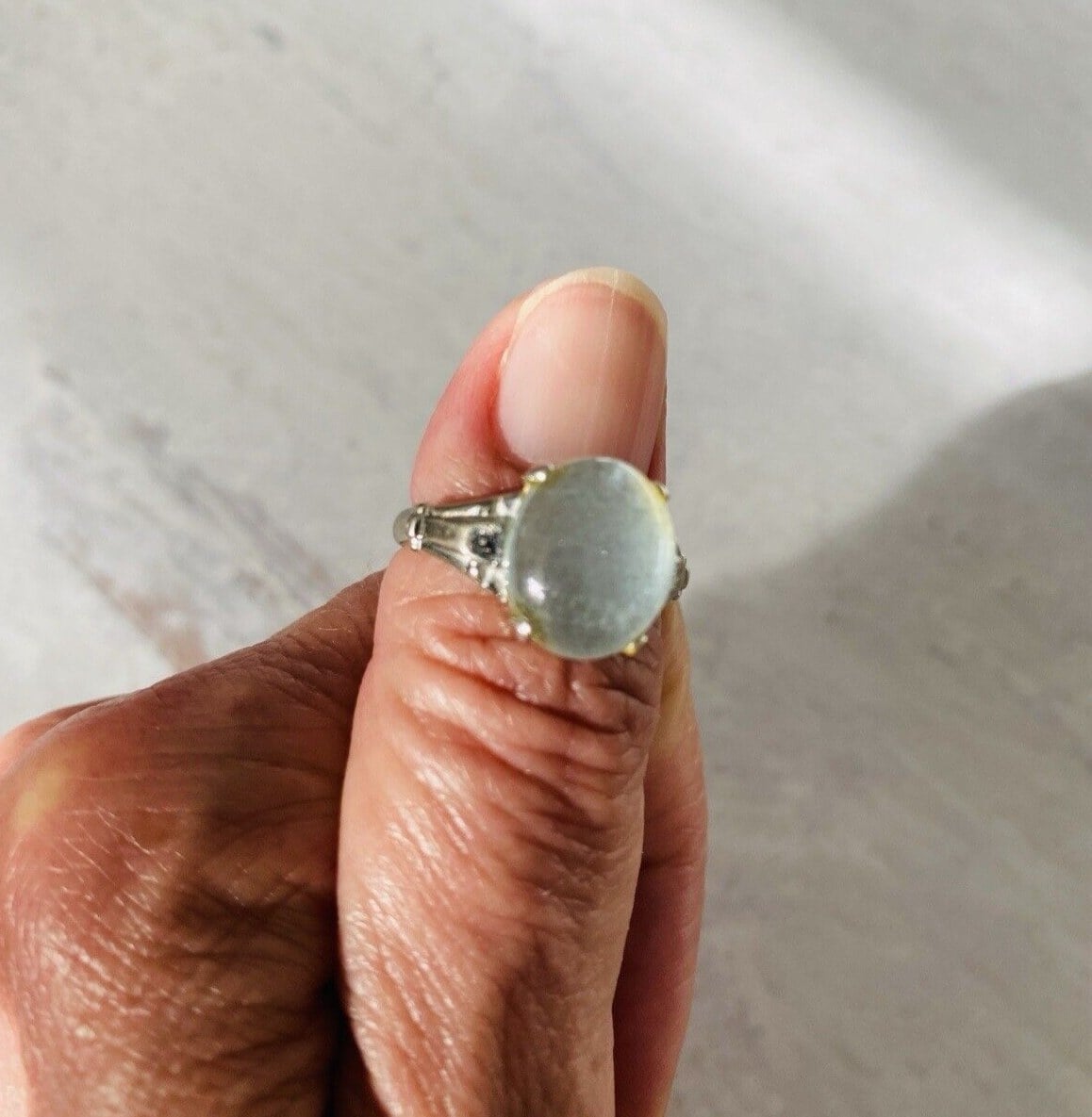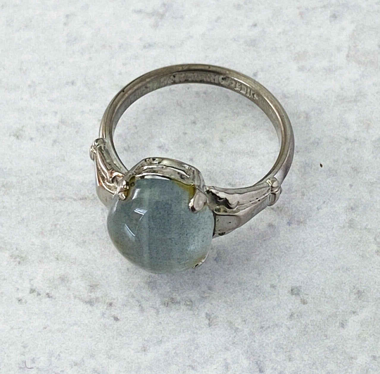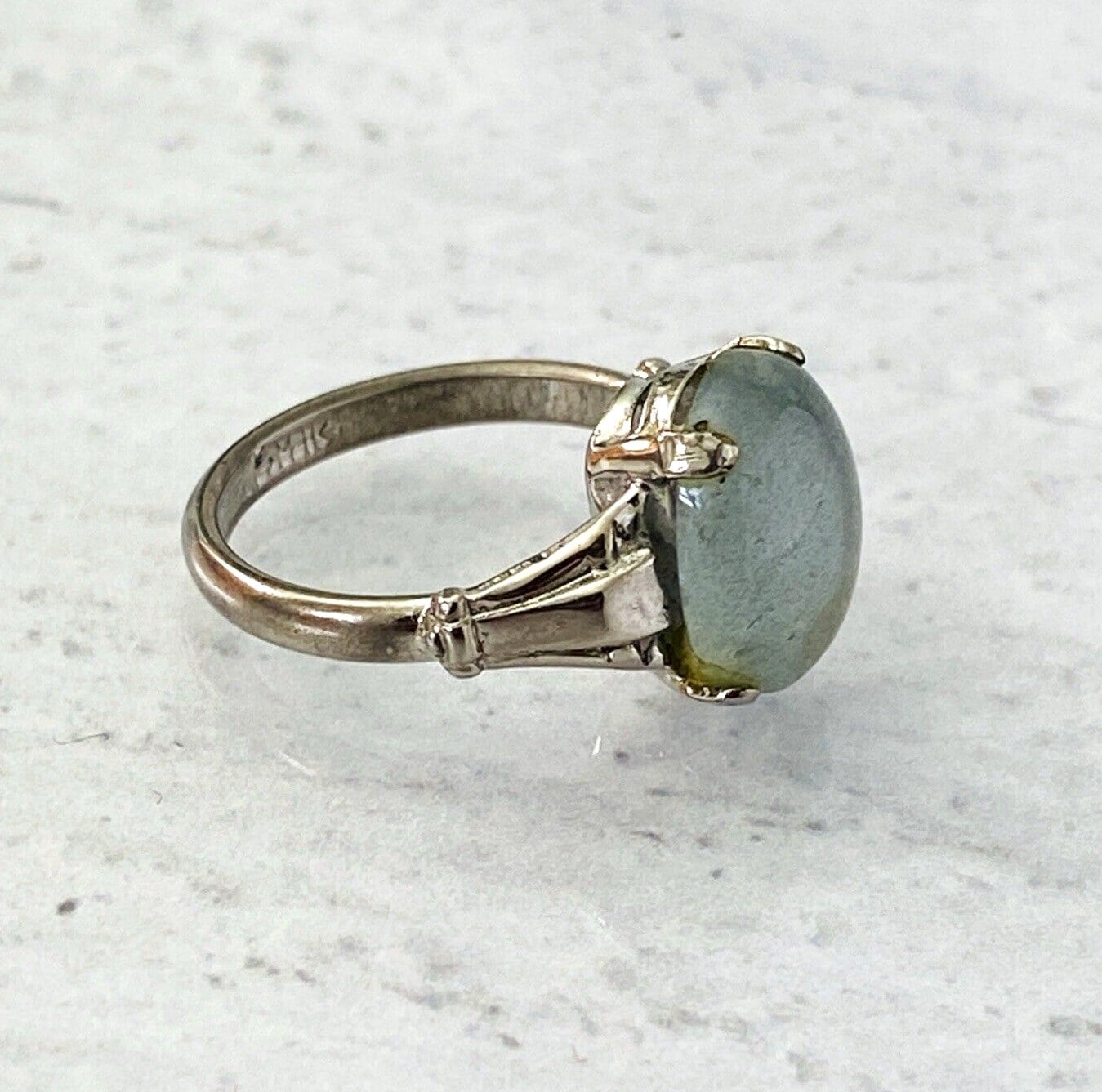 Gray Moonstone Sterling Silver Ring Sz 5 3/4, Retro design, vintage, and signed MH for McGrath Hamin.