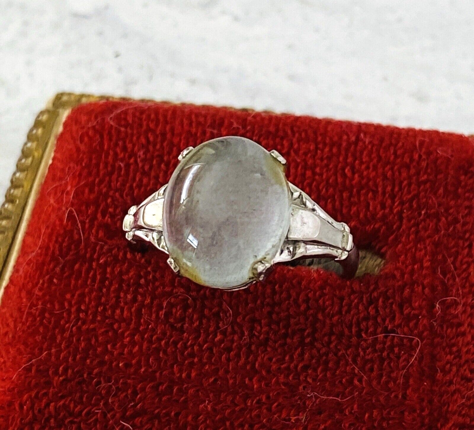A lovely Art Deco Era gray moonstone sterling silver ring size 5 3/4, signed by McGrath Hamin.