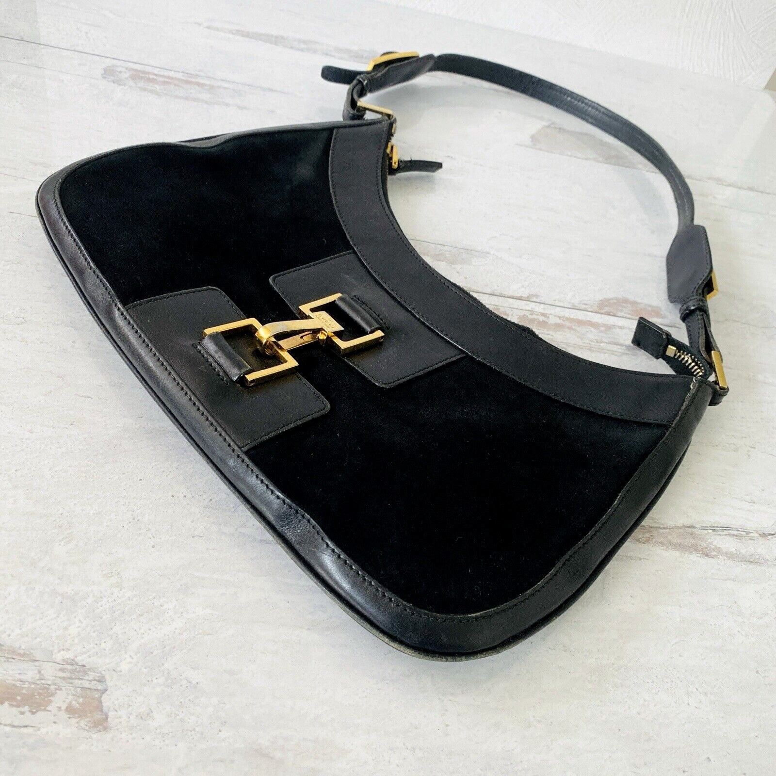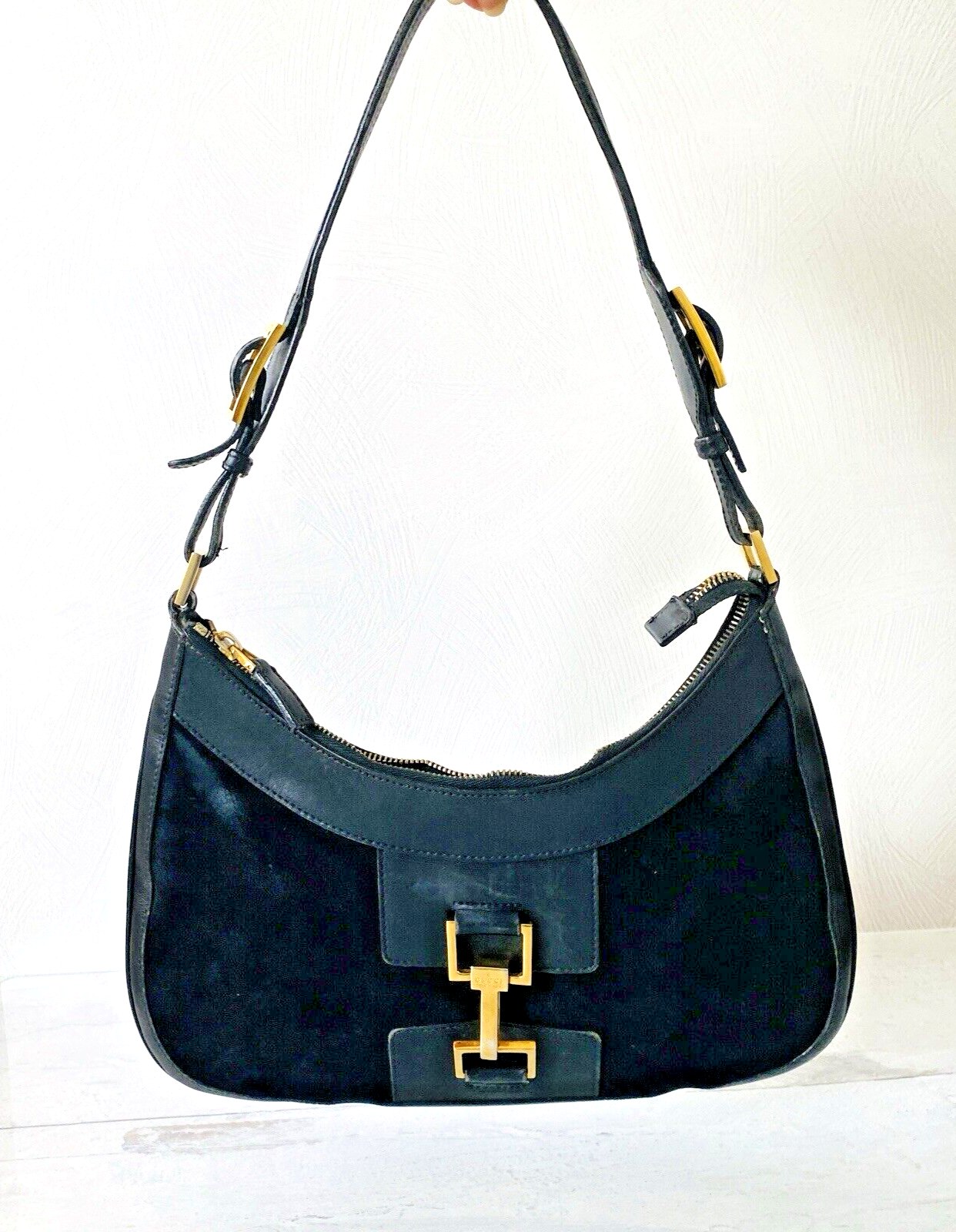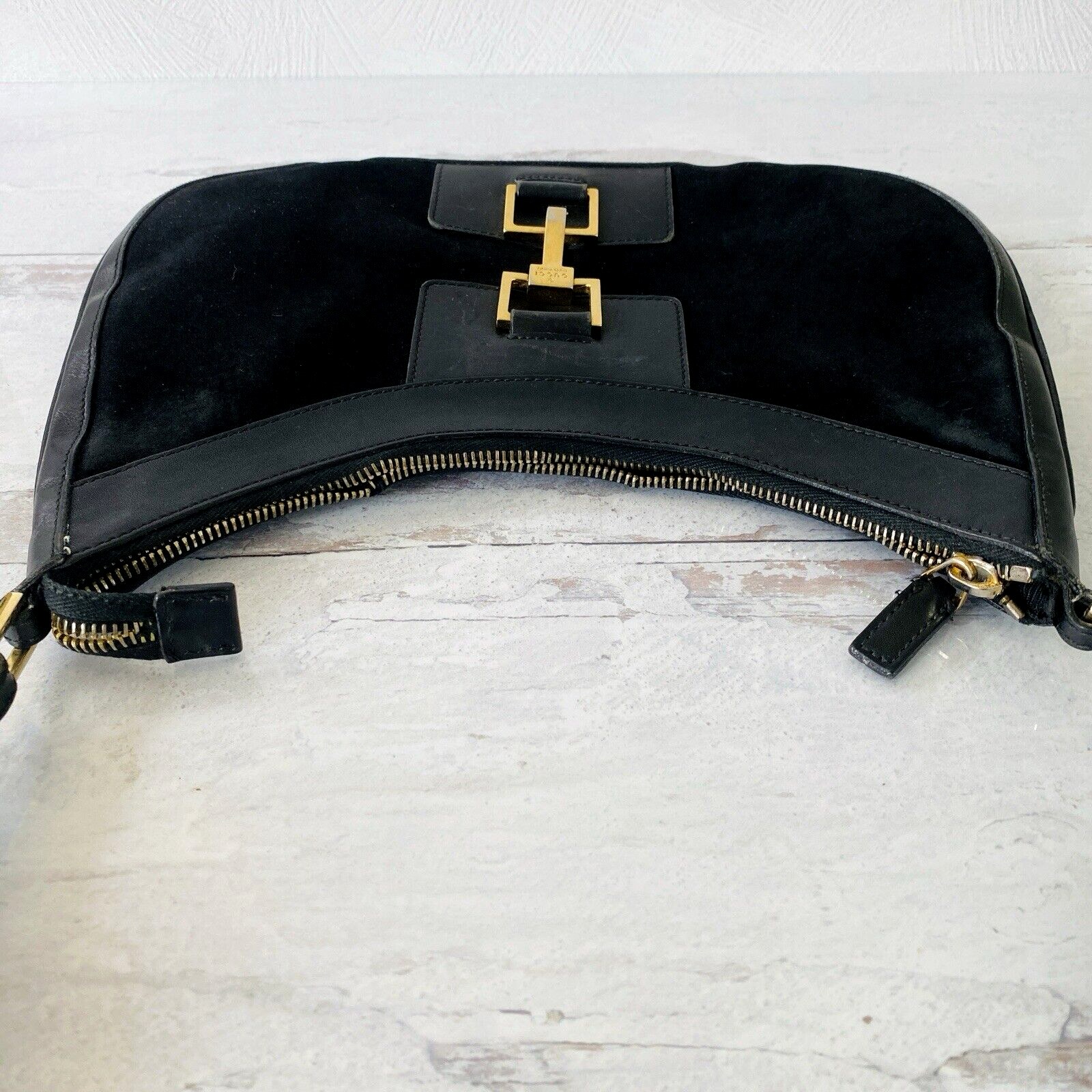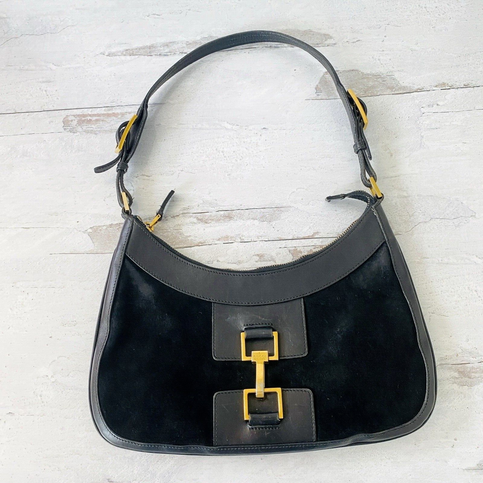 Gucci Purse Jackie 001-4128 0001998 – Black Leather and Suede – Gold Plated Hardware- Authentic Gorgeous TL