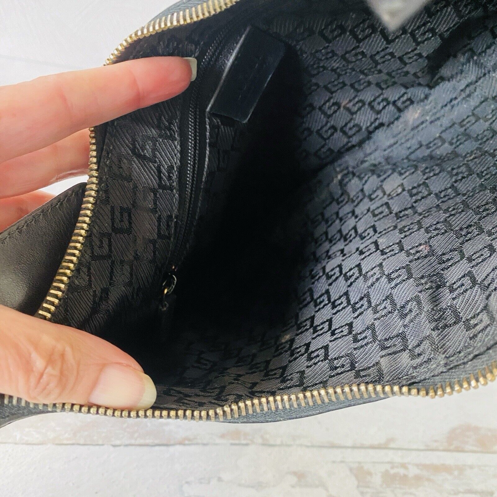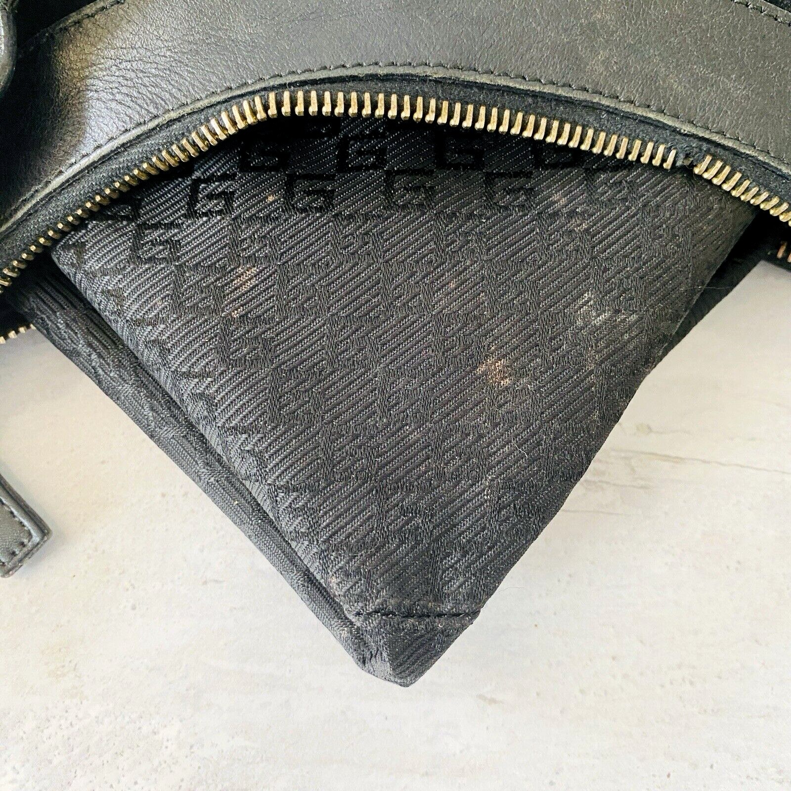 The zipper needs to be fixed, slight loss of plating on the lower portion of the buckle, and there are a few spots on the lining.
