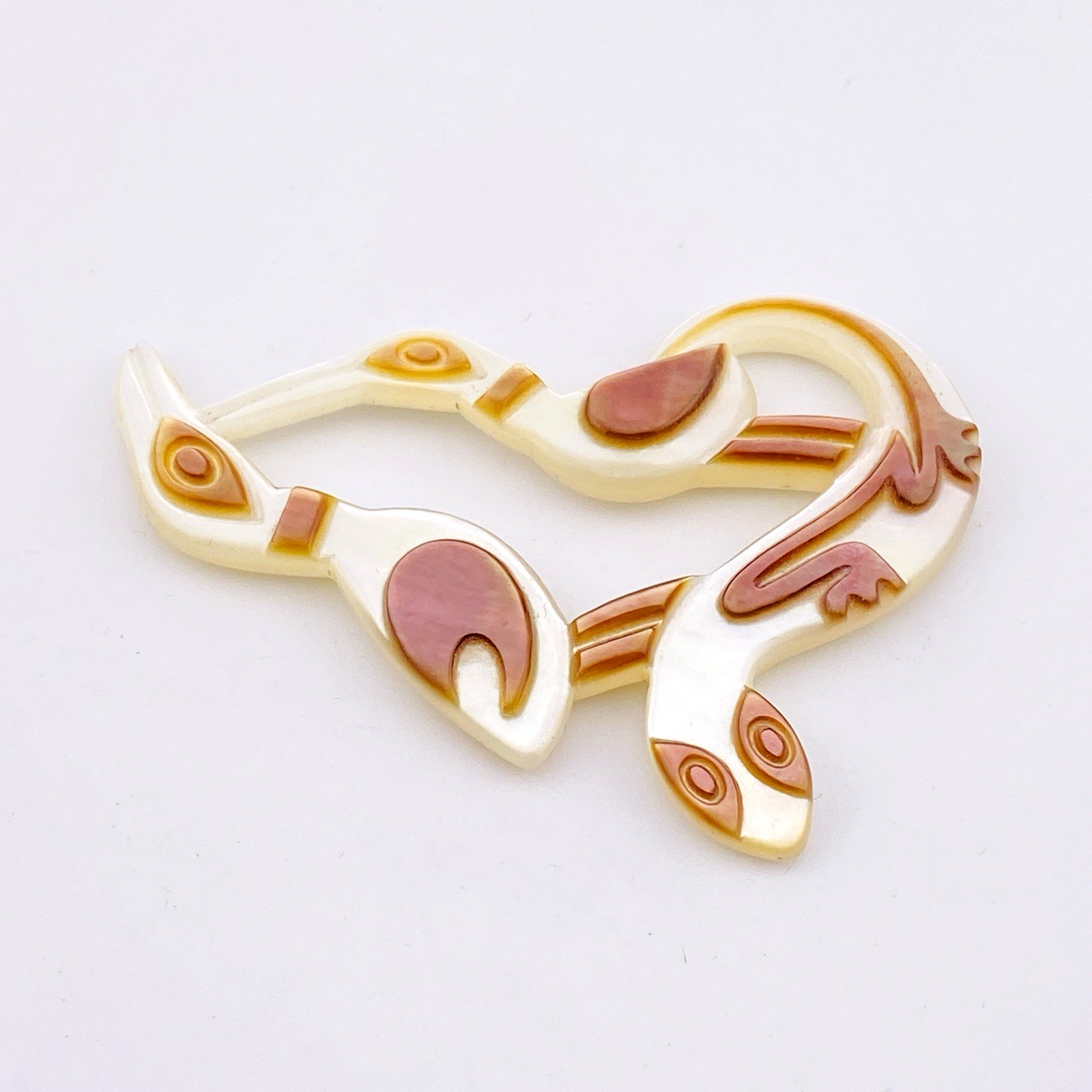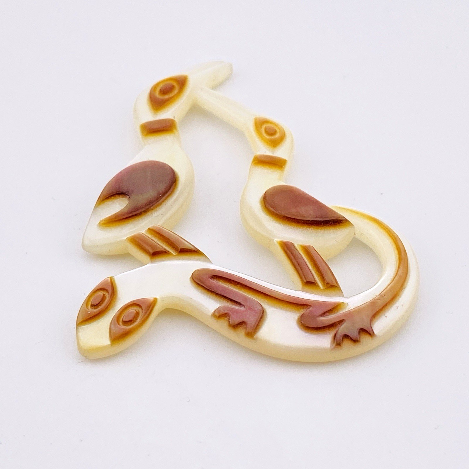 Vintage Hand Carved Mother of Pearl Shell Pacific Ocean Pendant – Two Birds and a Lizard
