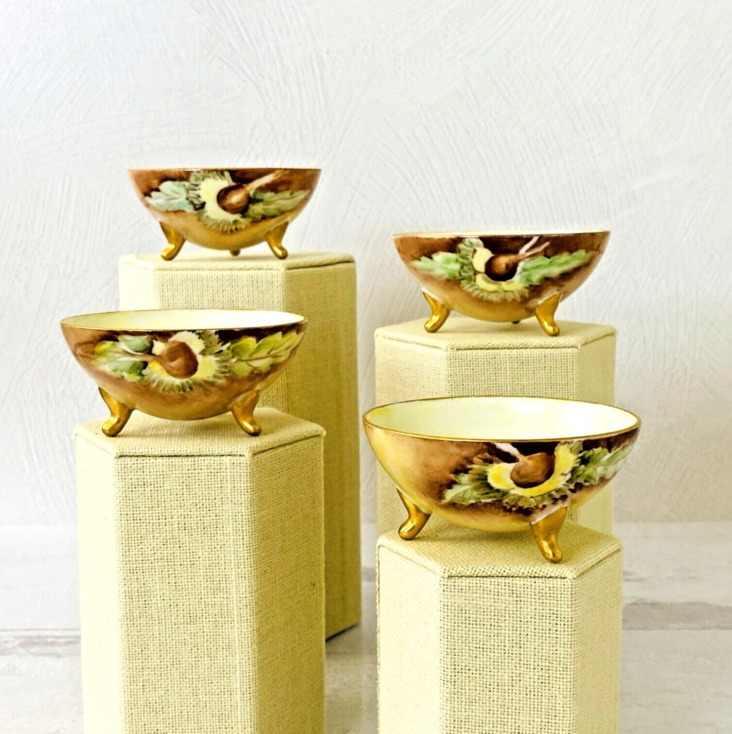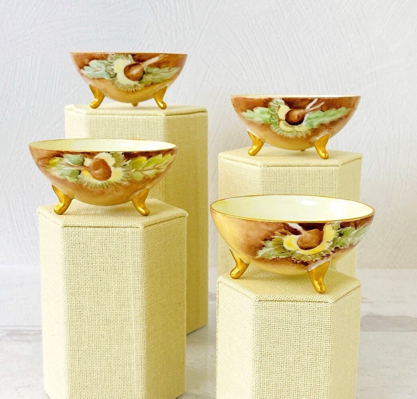 Set Of 4 Hand Painted Footed Fine Porcelain Salts or Finger Tip Bowls – Antique Victorian w Dedication