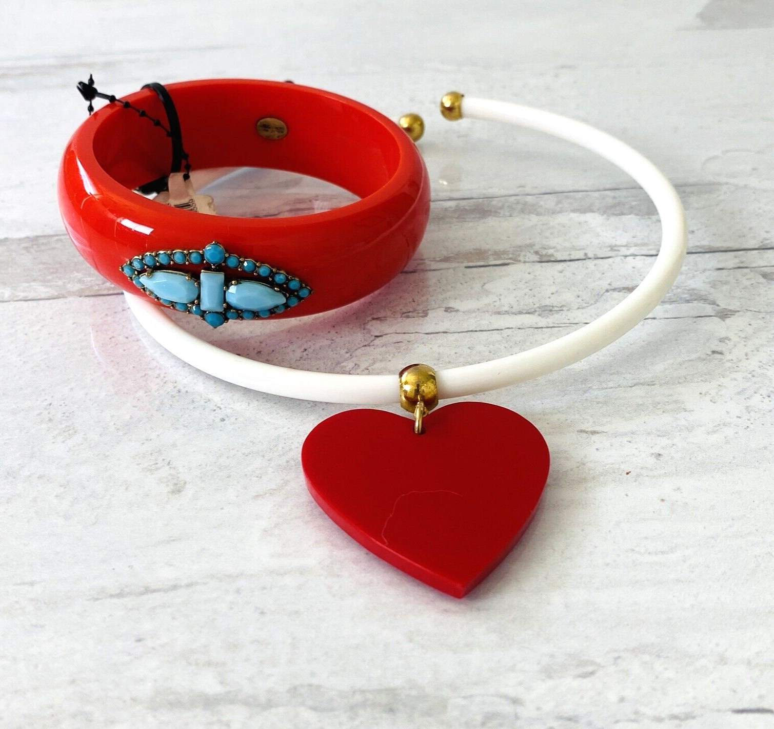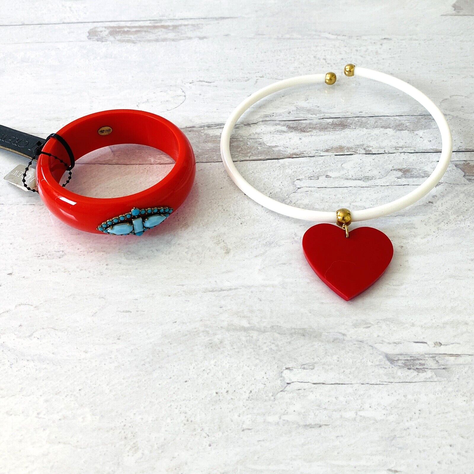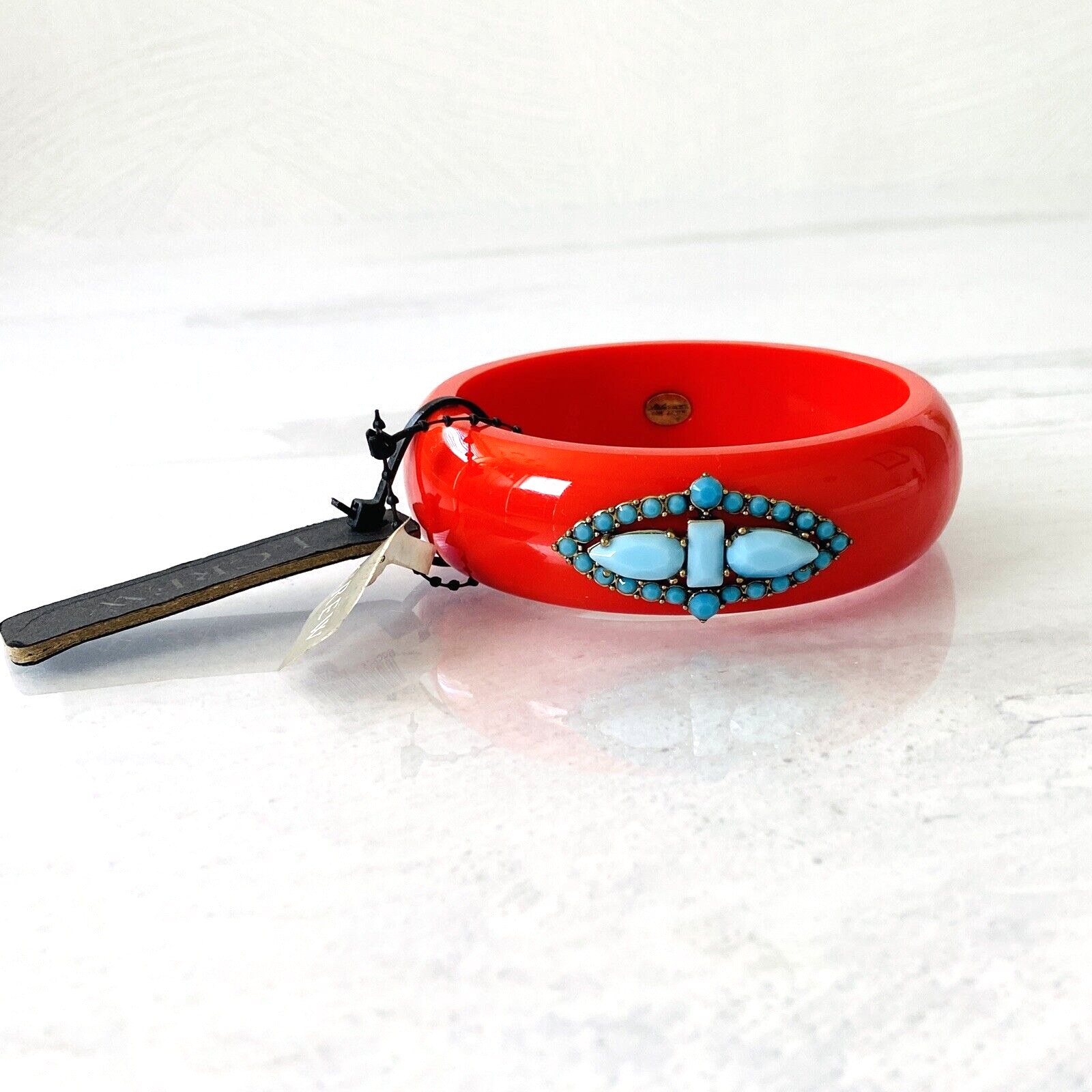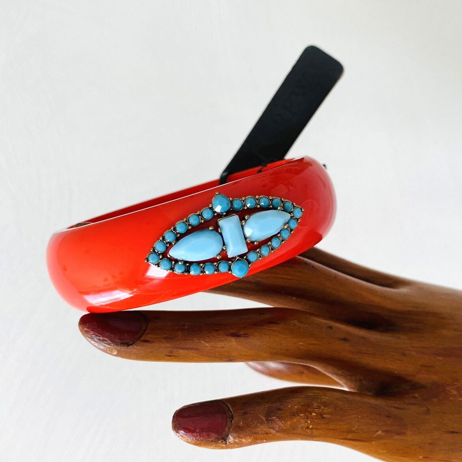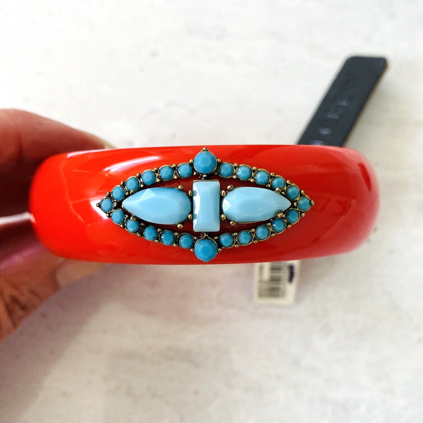 Lulu Frost for J Crew Red Bangle Bracelet with Turquoise Blue Stones – New W Tags