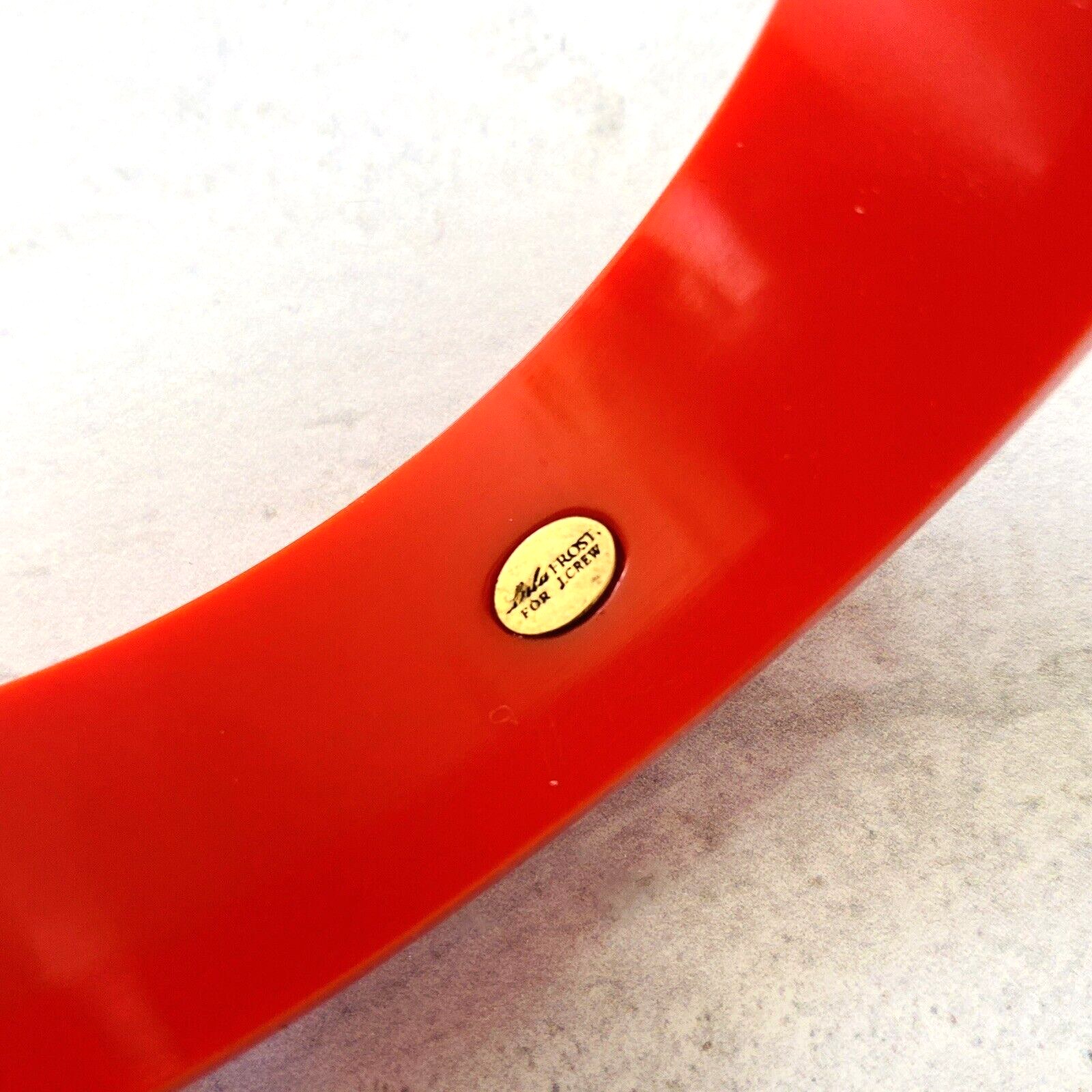 The bangle measures 7/8 inch wide and 5/16 inch thick. The inside diameter of the opening is 2 5/8 inches.
