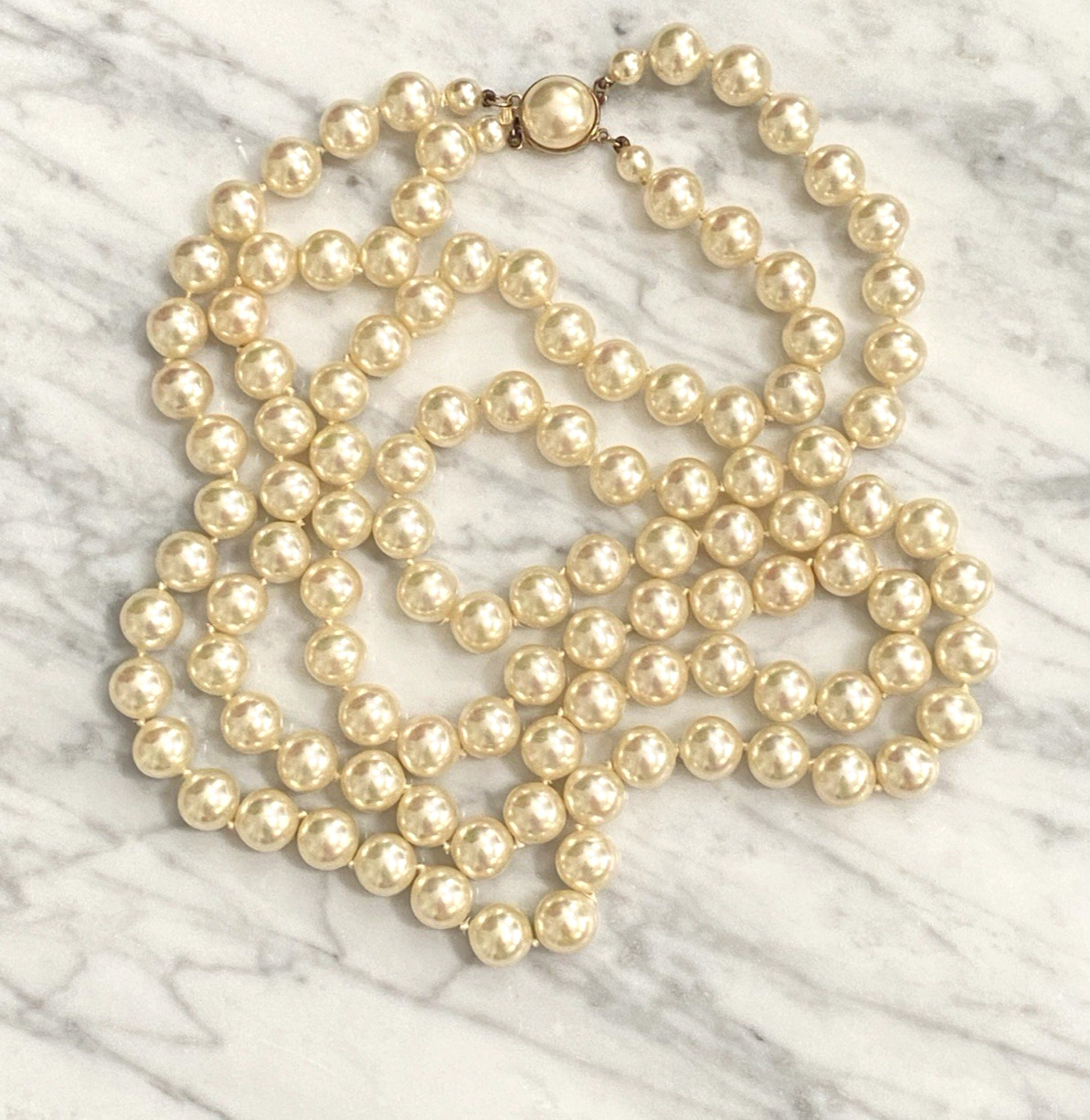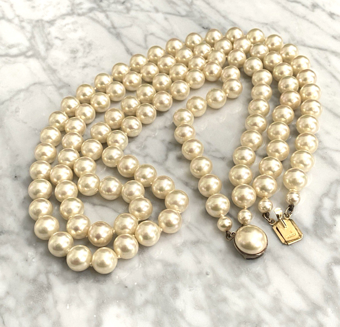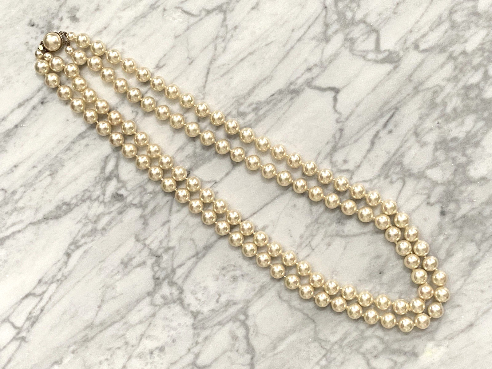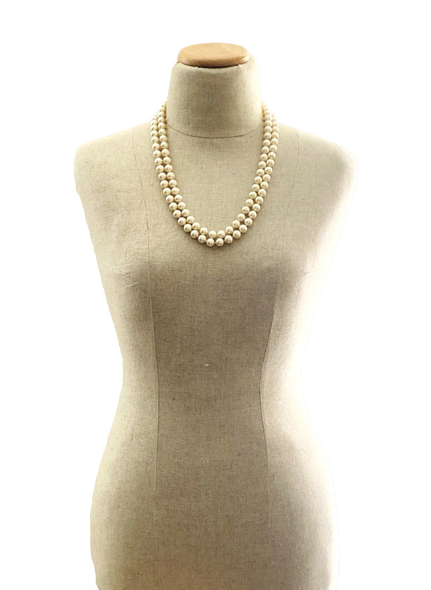 An elegant and timeless Majorica double strand pearl necklace featuring luminous 10mm simulated pearls with a rich, even glow. The double strand design adds dimension and presence while maintaining a classic, refined look.
