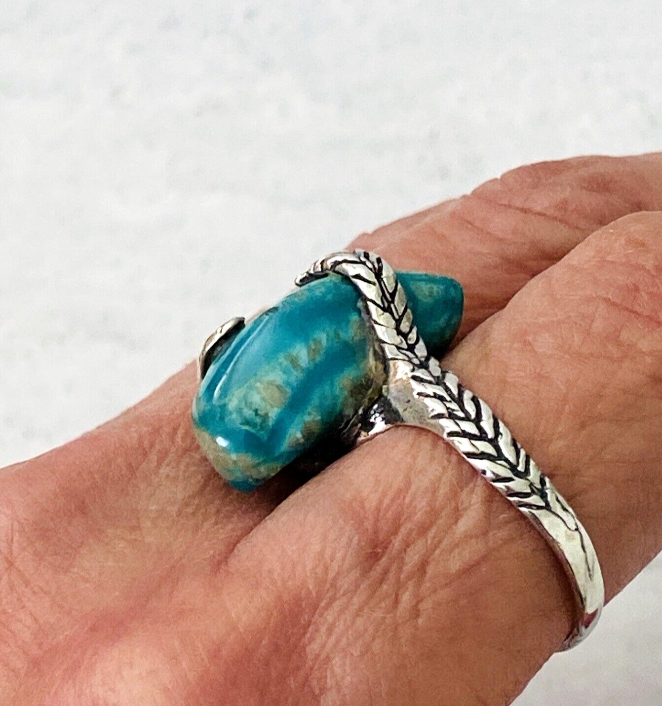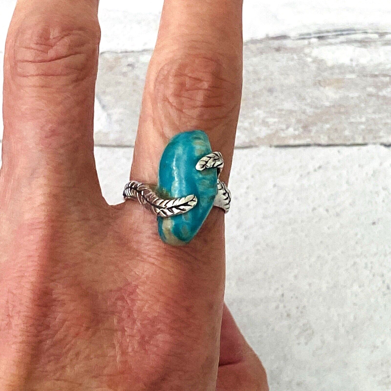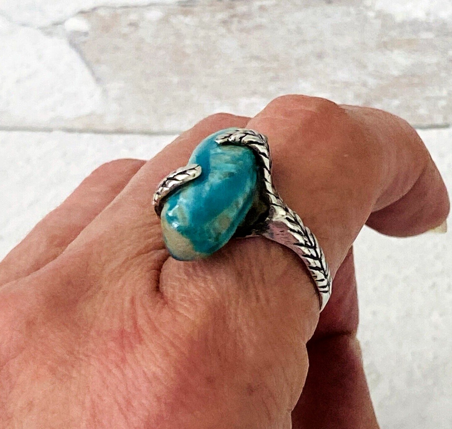 Modernist Sterling Silver Amazonite Rock Ring Size 7.25