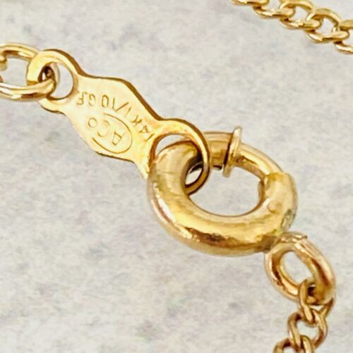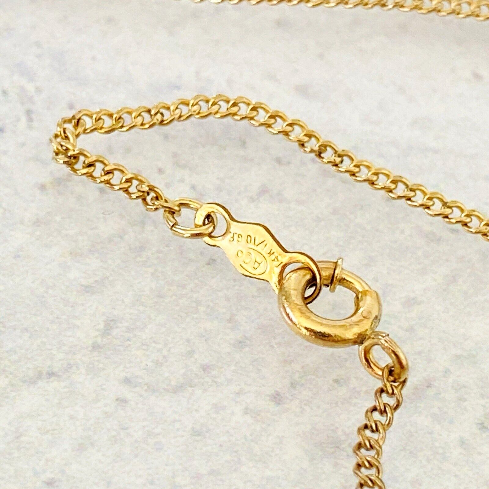 It is in excellent condition. The chain is older than the kitty pendant and is marked 1/20 14k on the clasp. The kitty is marked Monet on the bail.