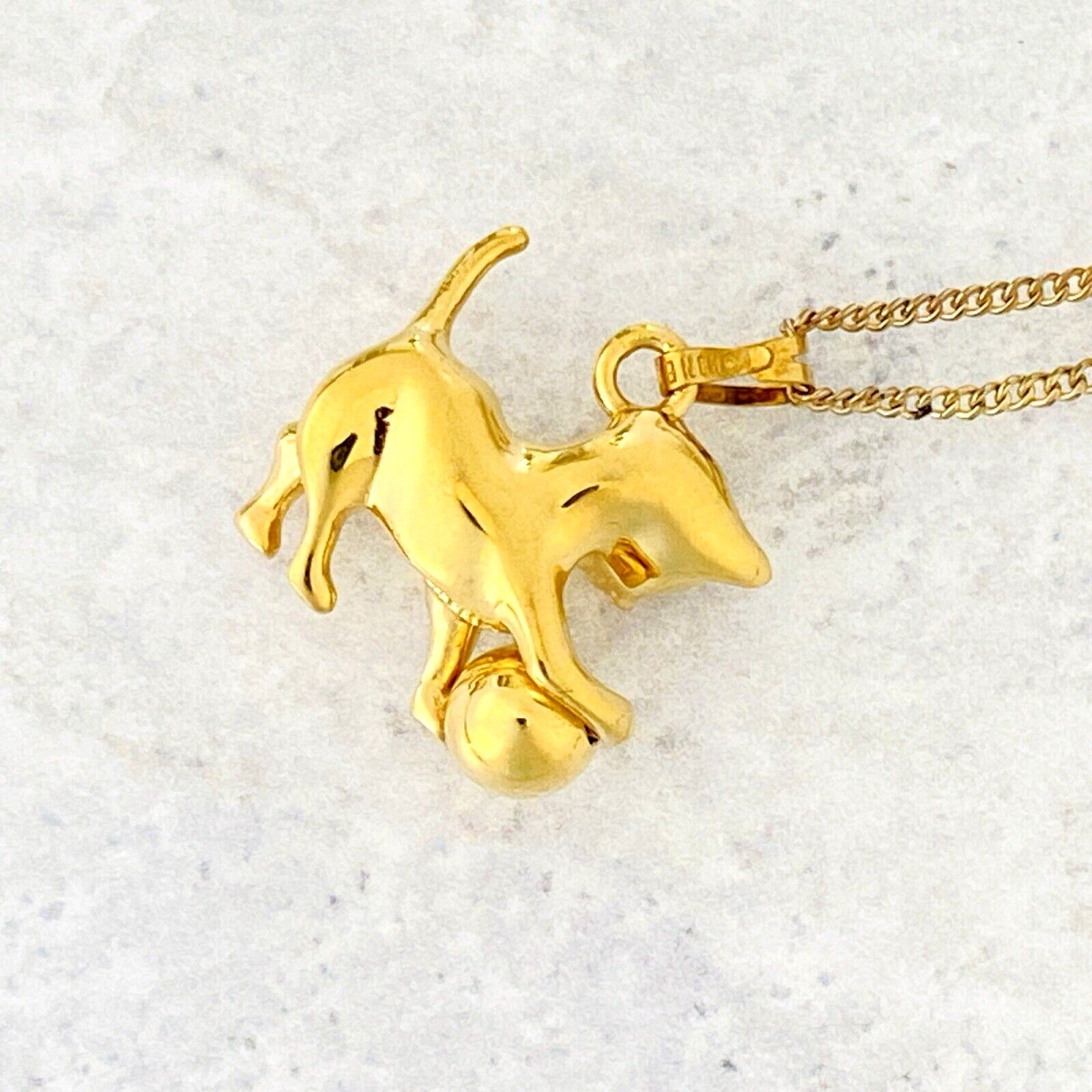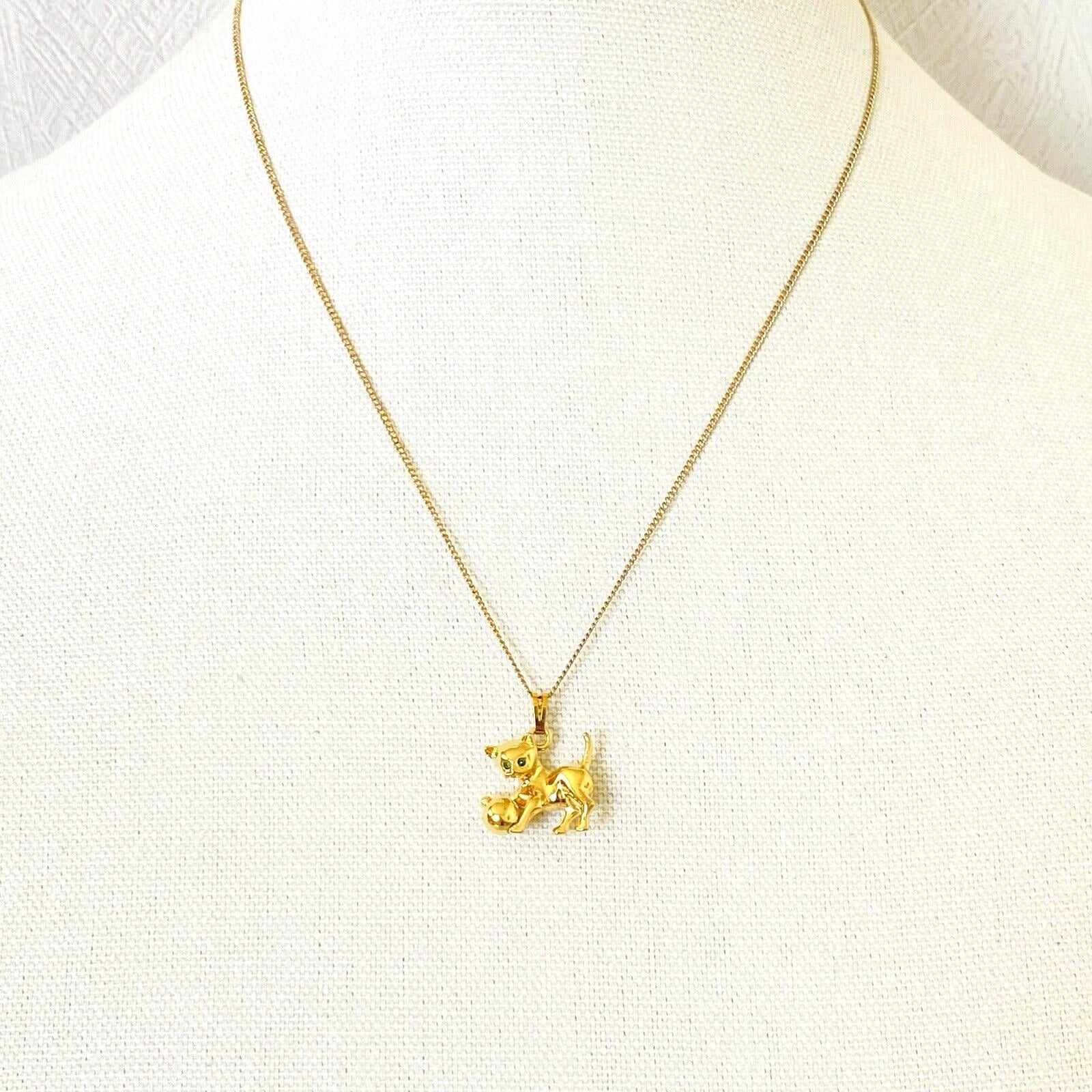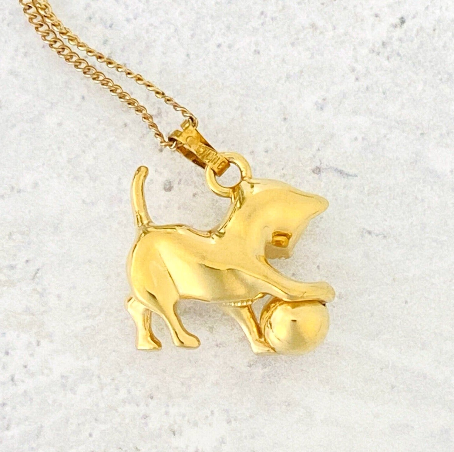 Adorable Monet Cat with Rolling Ball Pendant Necklace – Gold Tone Pendant – Gold Filled Chain – 18 1/2 Inches Long – Vintage –