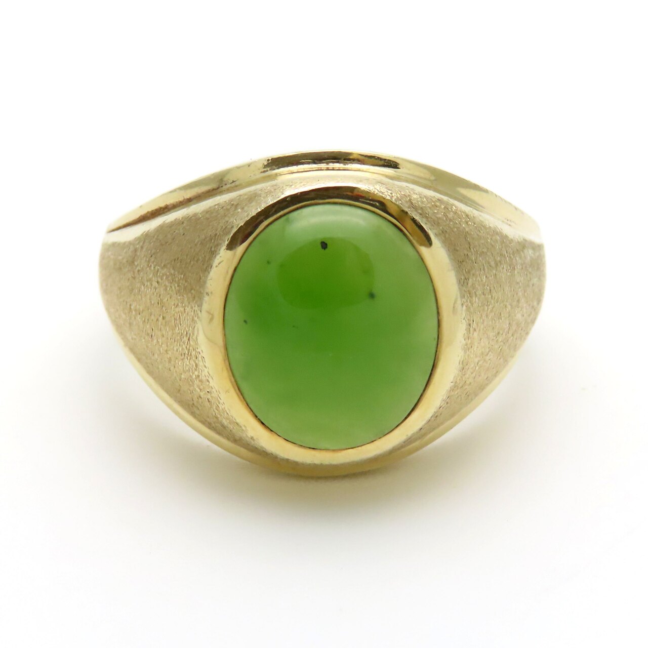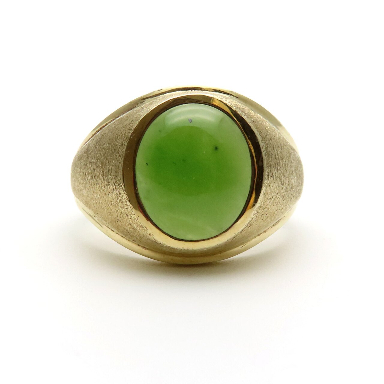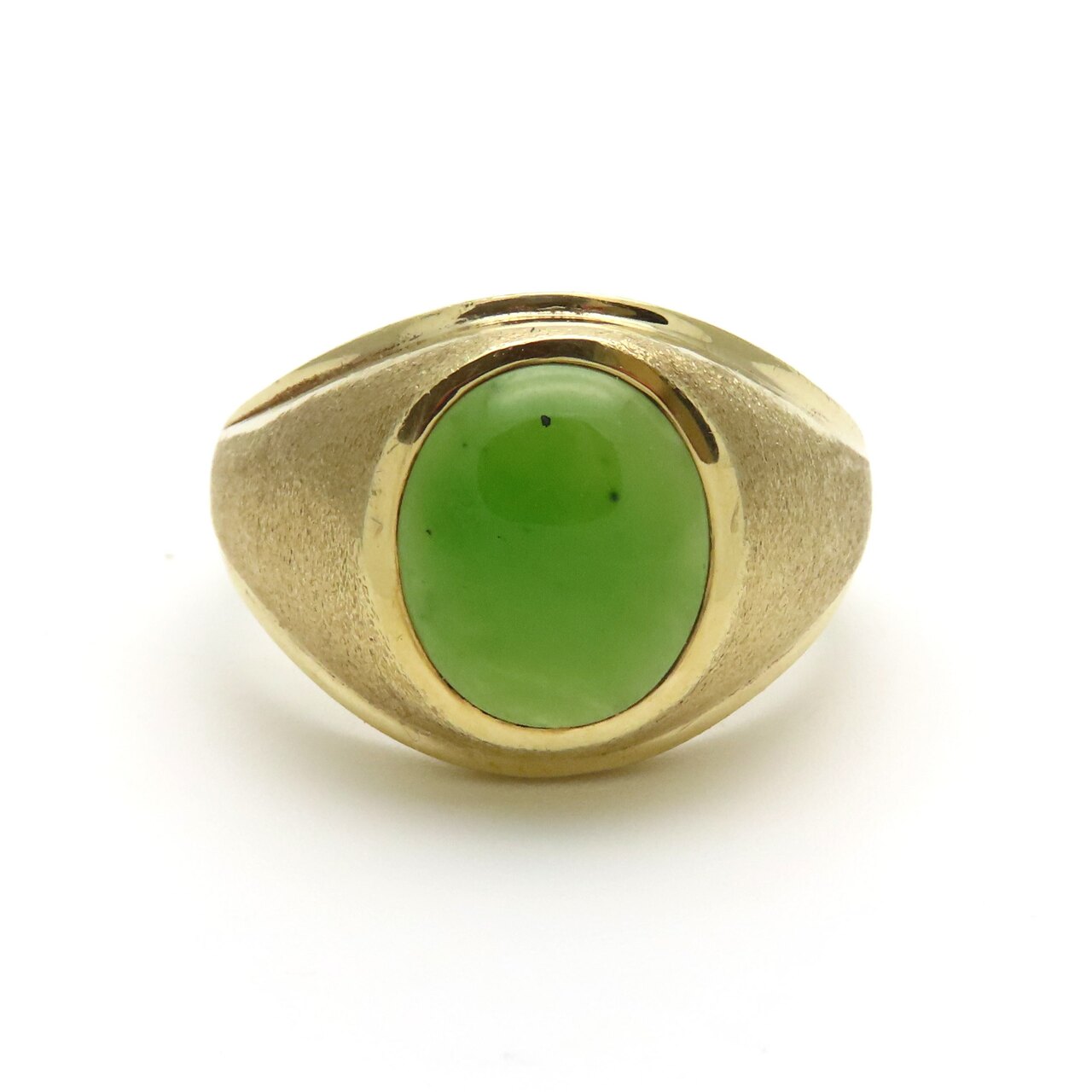 This impressive vintage Nephrite Jade men’s signet ring is made of solid yellow gold. The elegant design resembles an eye and makes a wonderful good luck amulet. Let’s this be your lucky ring!