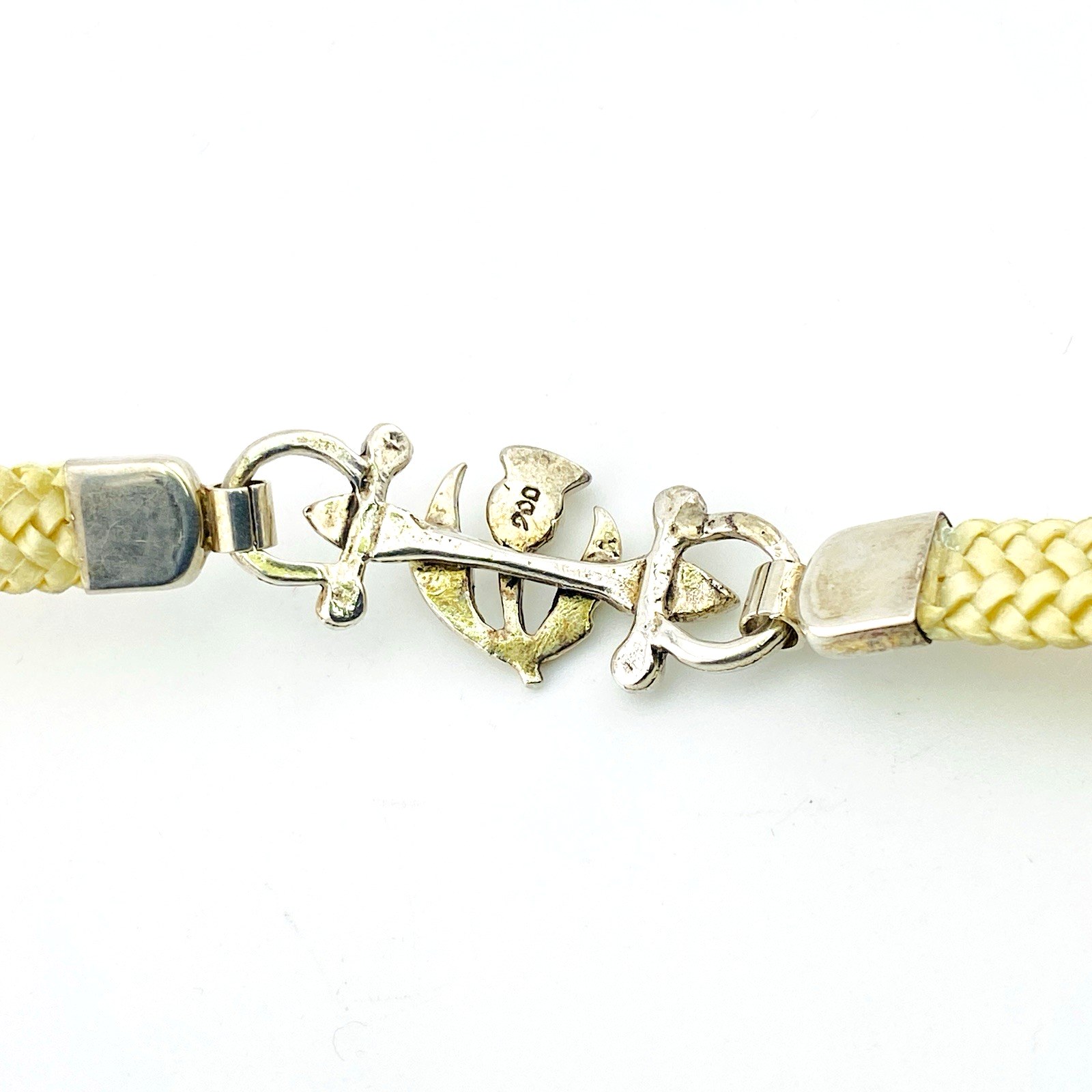The combination of silver and linen gives this bracelet a unique balance of strength and softness. The woven bands are securely capped at the ends, allowing the bracelet to wear comfortably while maintaining a clean, finished look. The construction is thoughtful and well executed, with a lightweight feel on the wrist.