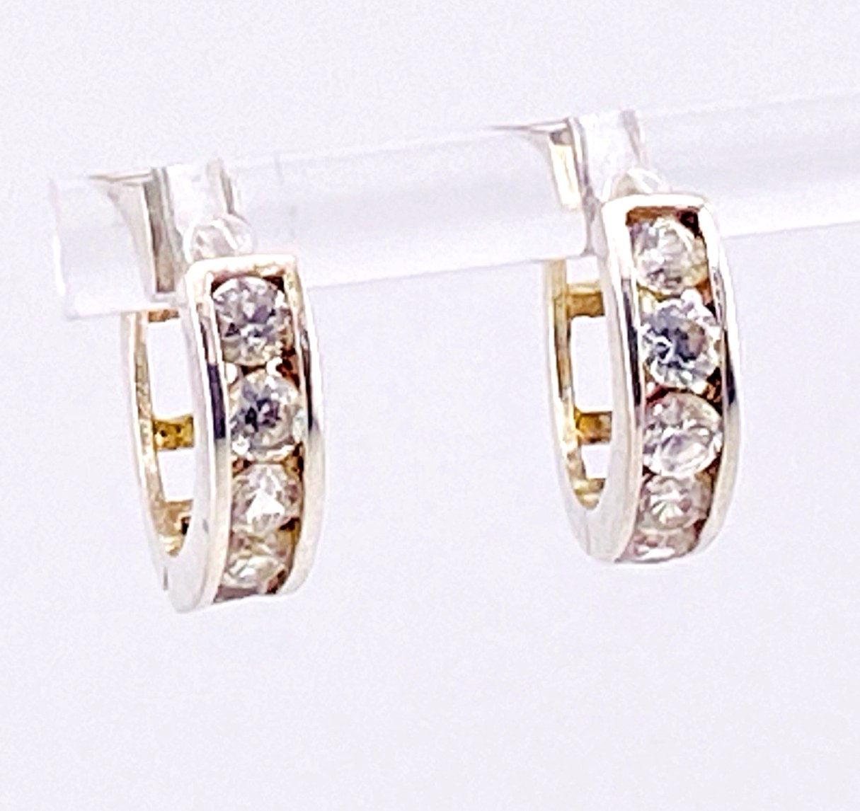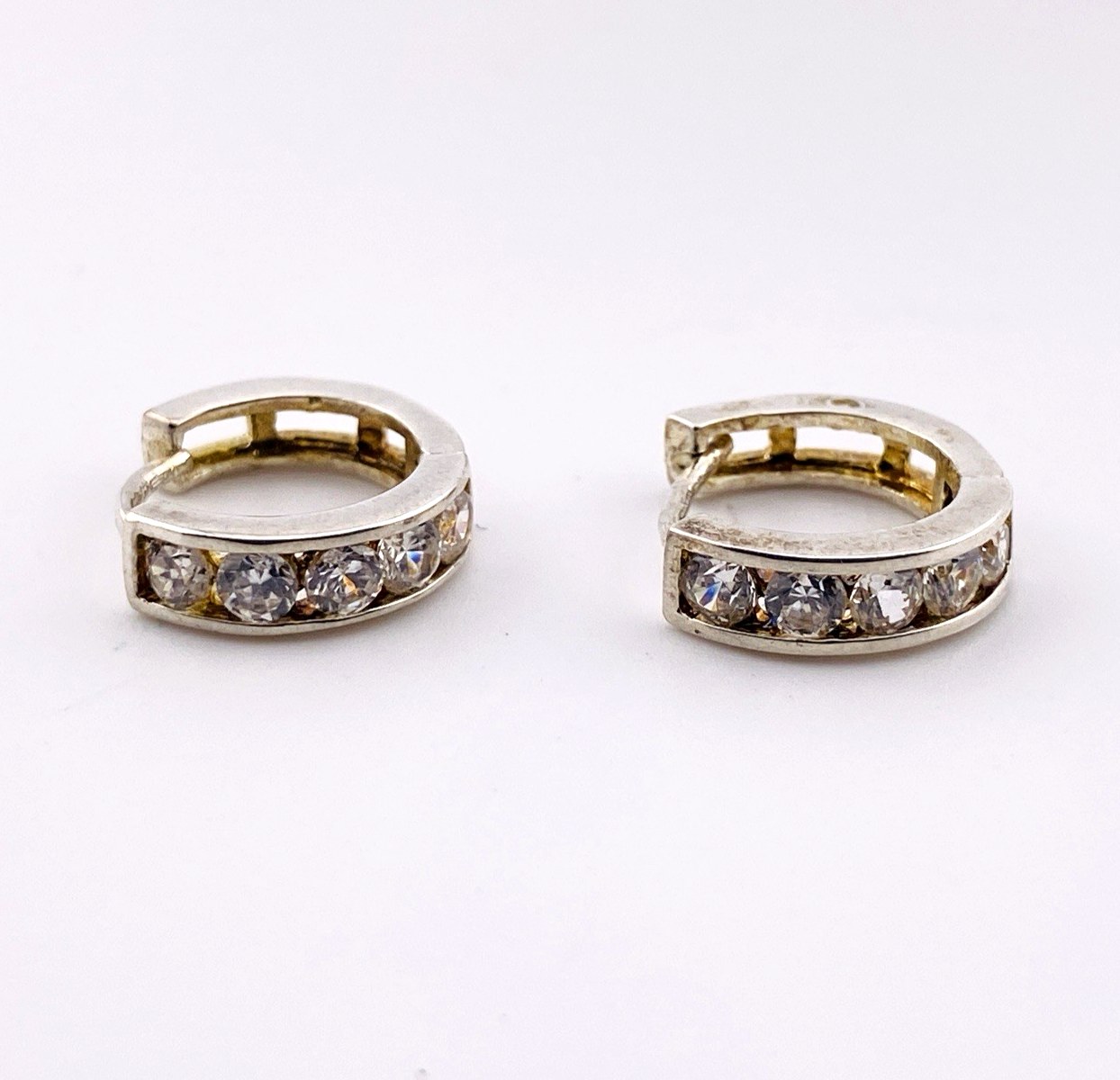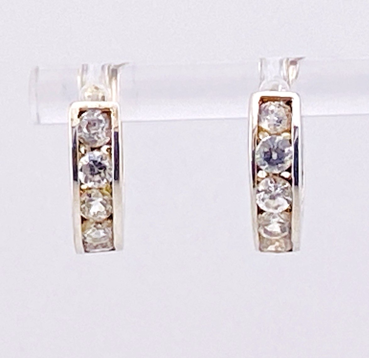 Each hoop features five channel-set CZ stones, forming a smooth, continuous line of sparkle across the front. The polished silver tone and classic proportions give the earrings a versatile look that transitions easily from everyday wear to more polished occasions.