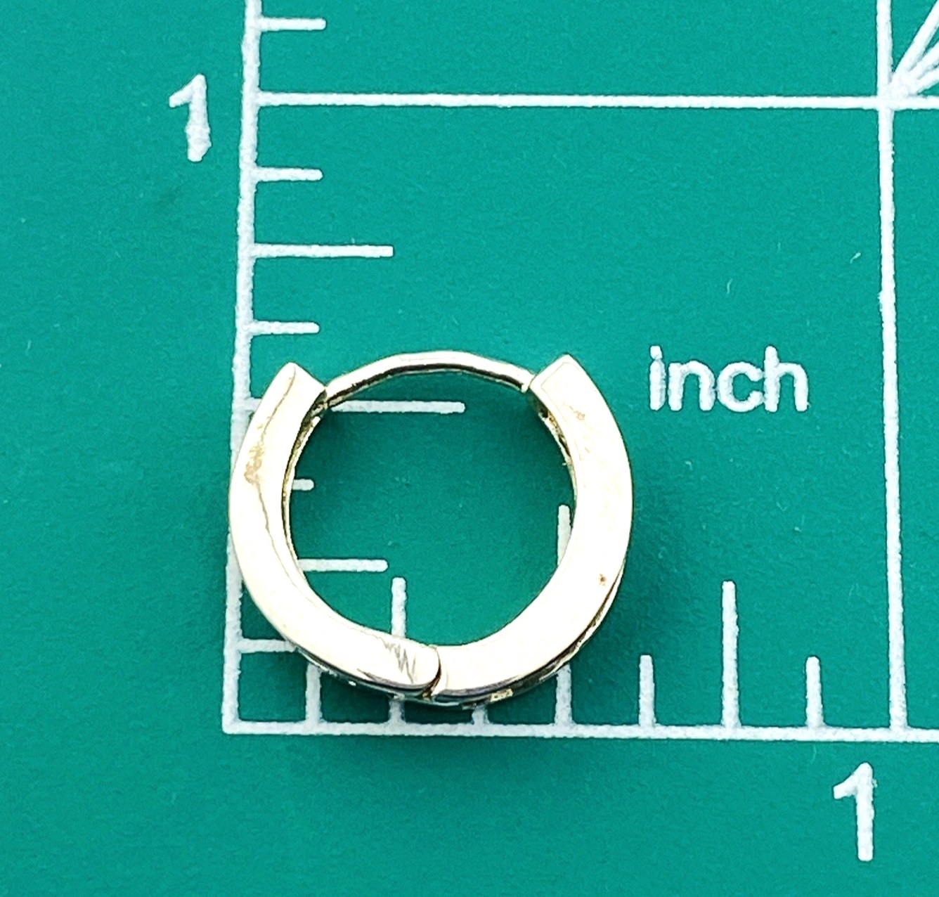 The hoops measure approximately 9/16 in (15 mm) in diameter, 1/8 in (4 mm) wide, and about 3 mm deep, offering a lightweight and comfortable fit suitable for extended wear.