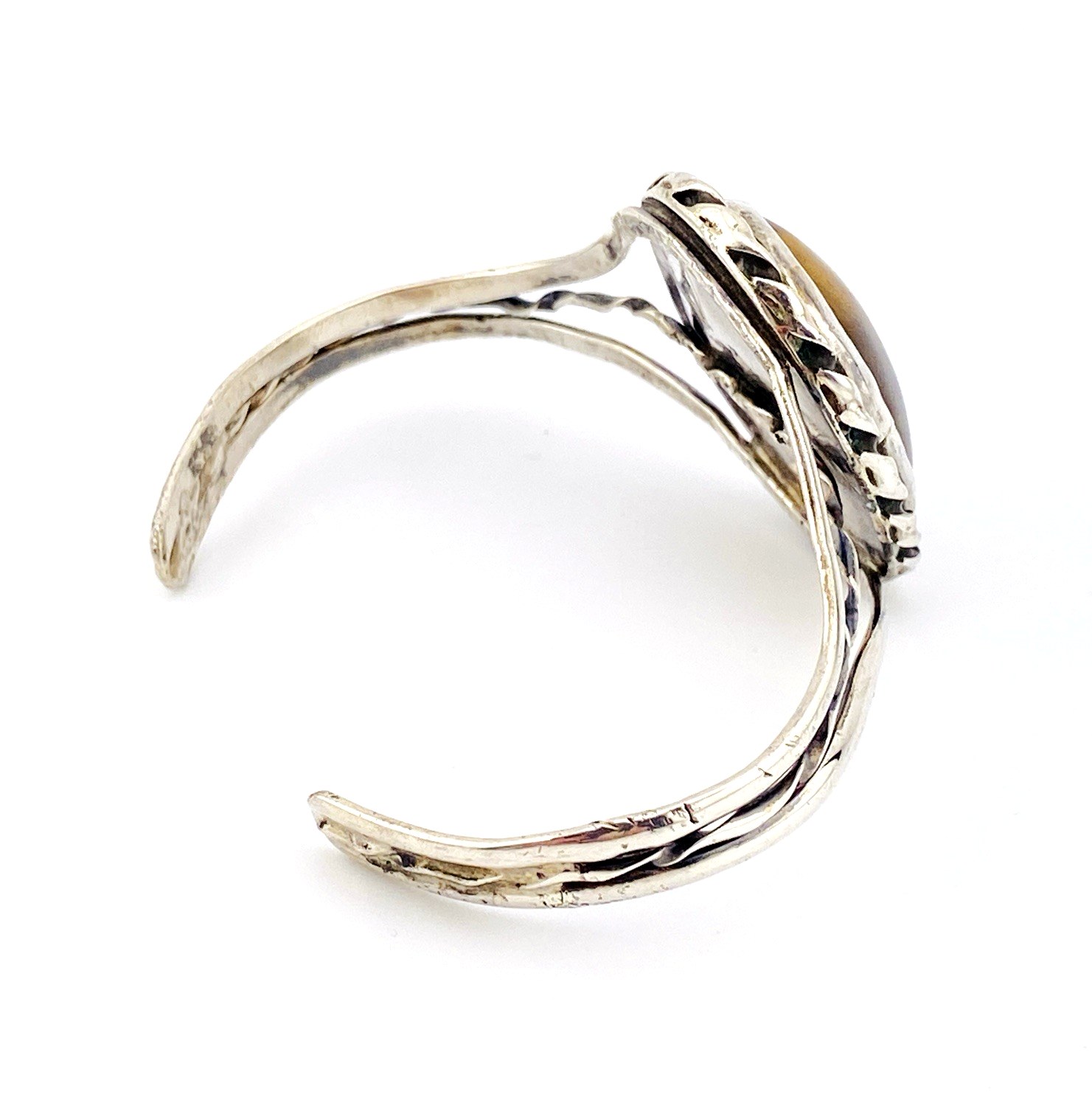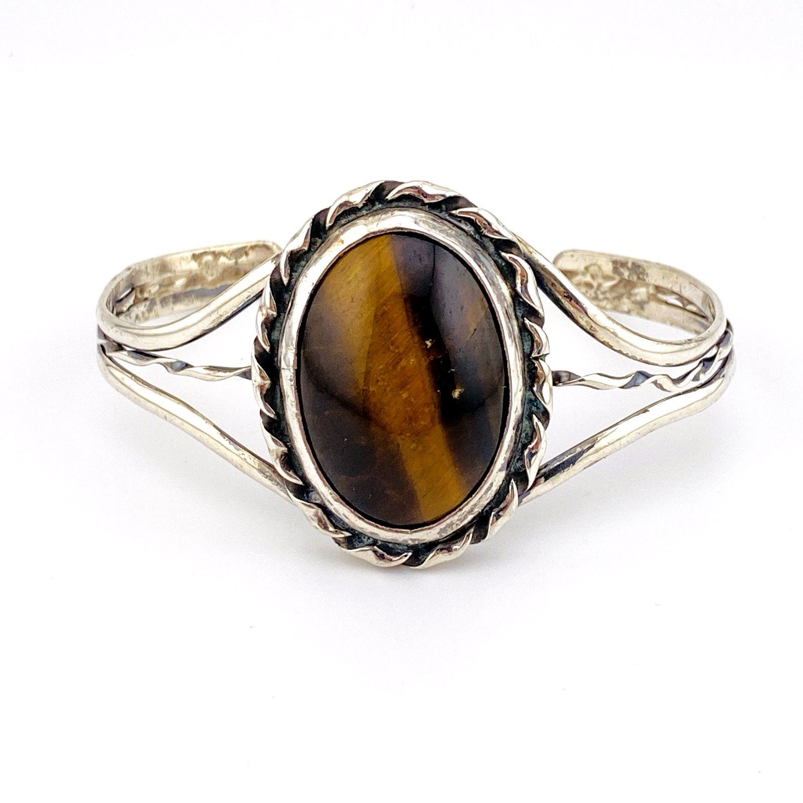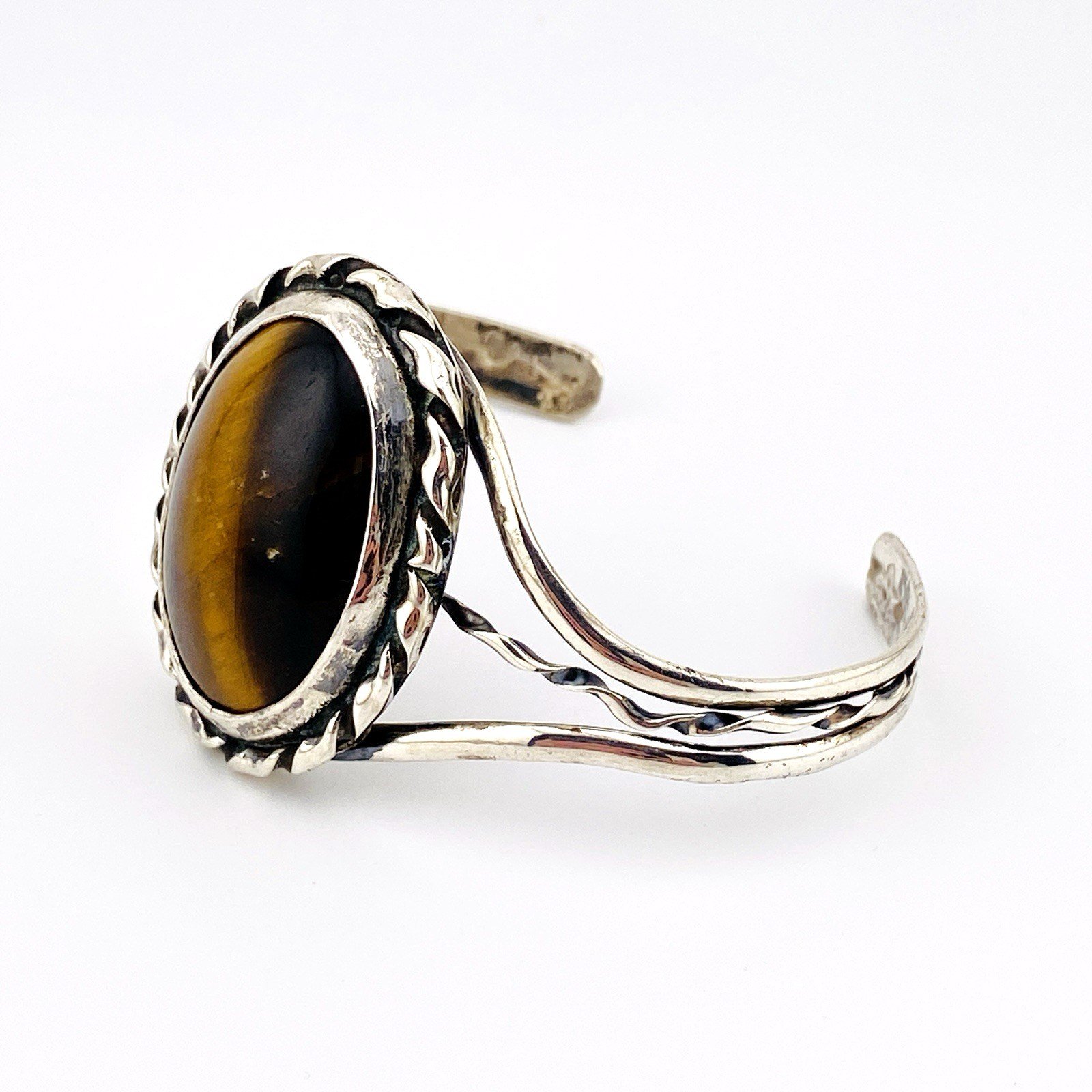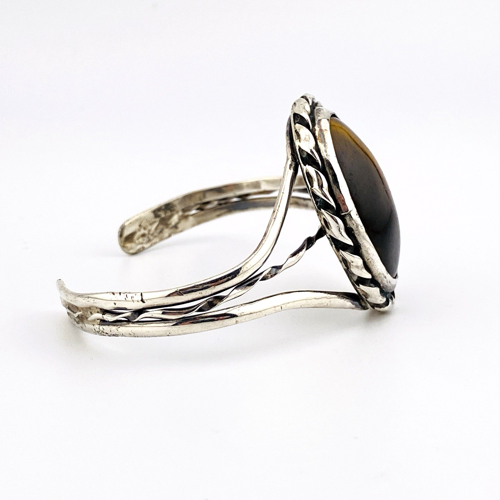 Vintage Sterling Silver Tiger Eye Cuff Bracelet – Artisan Made – Nice Play of Light –