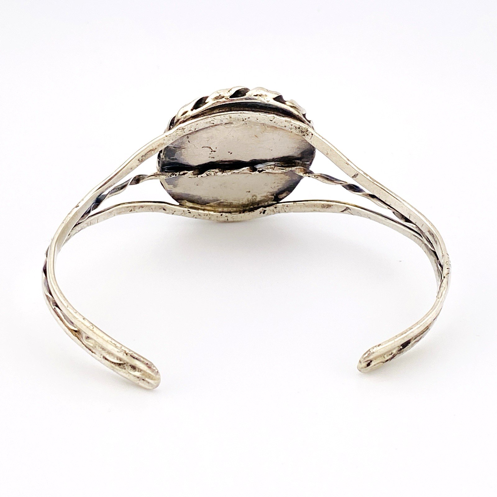 No markings of maker’s signature, carefully tested to verify silver content of 925. There are two small dots on the cabochon, which are natural stone inclusions.