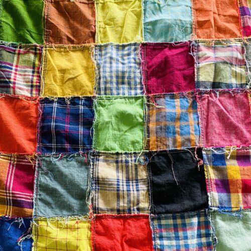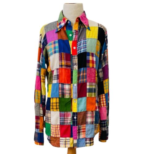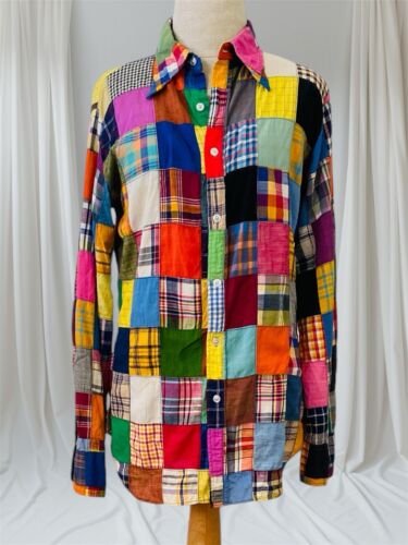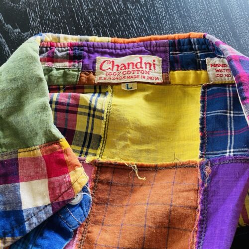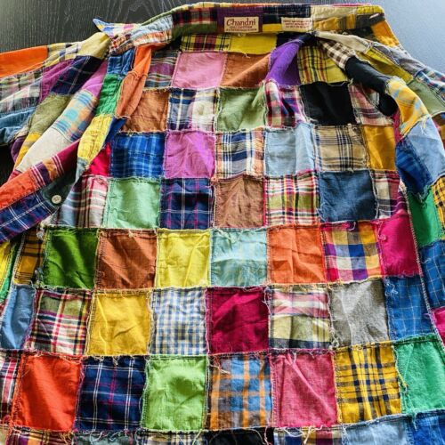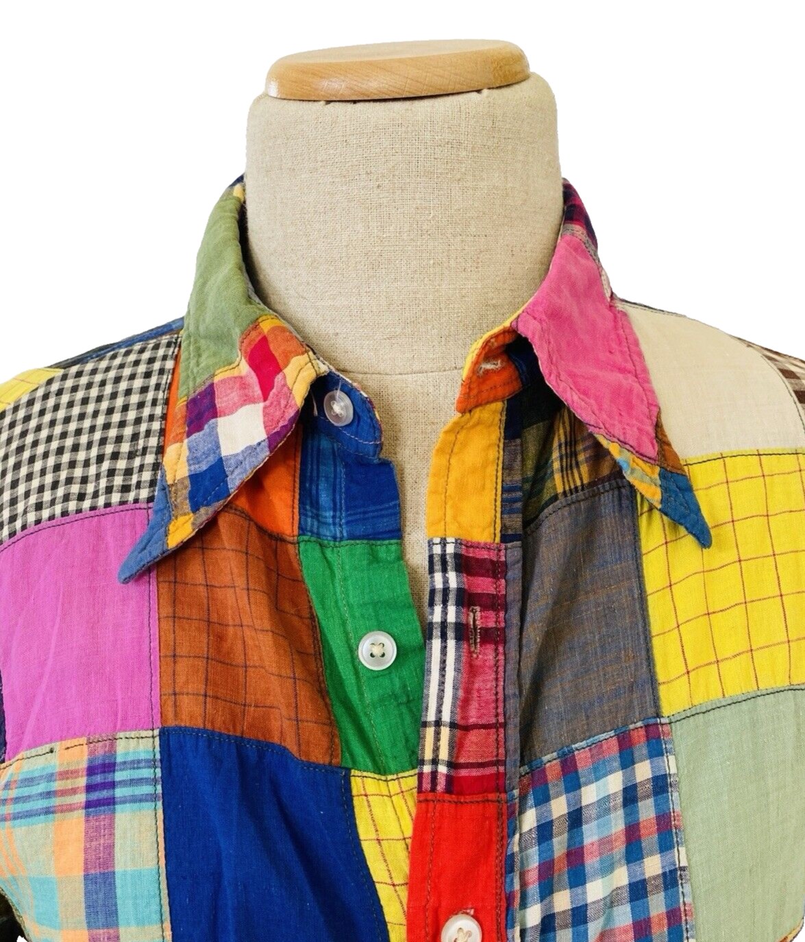 Vintage 1970s Patchwork Men’s Boyfriend Shirt 100% Cotton Made in India