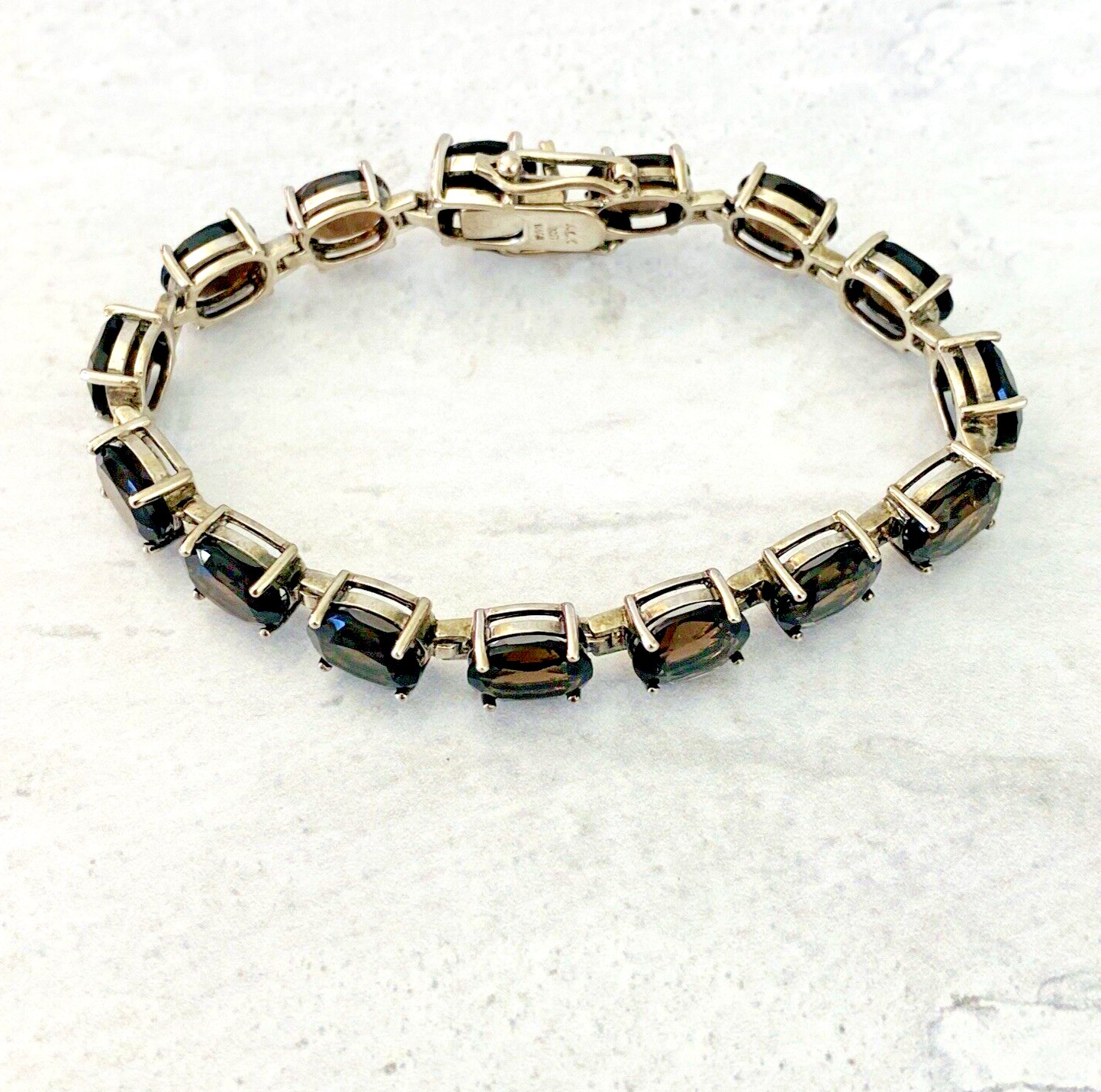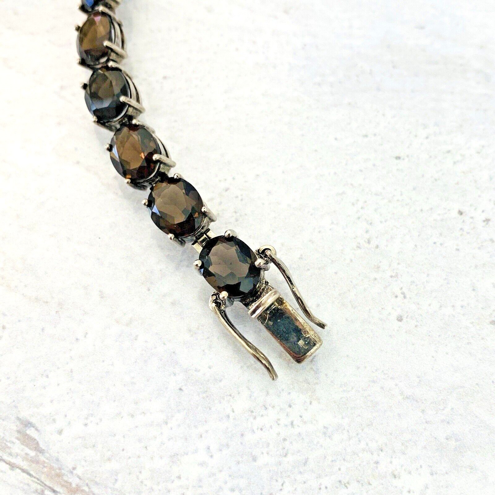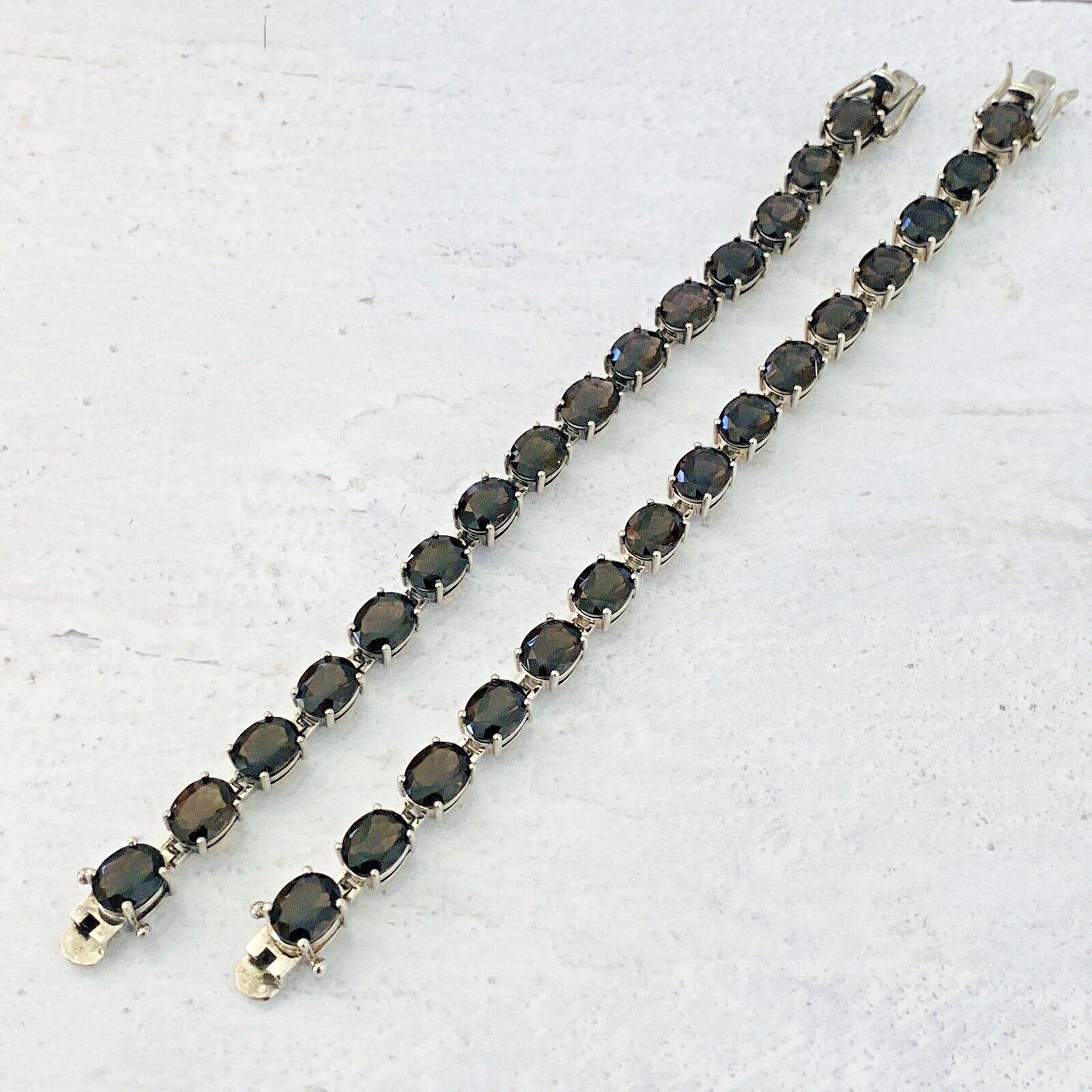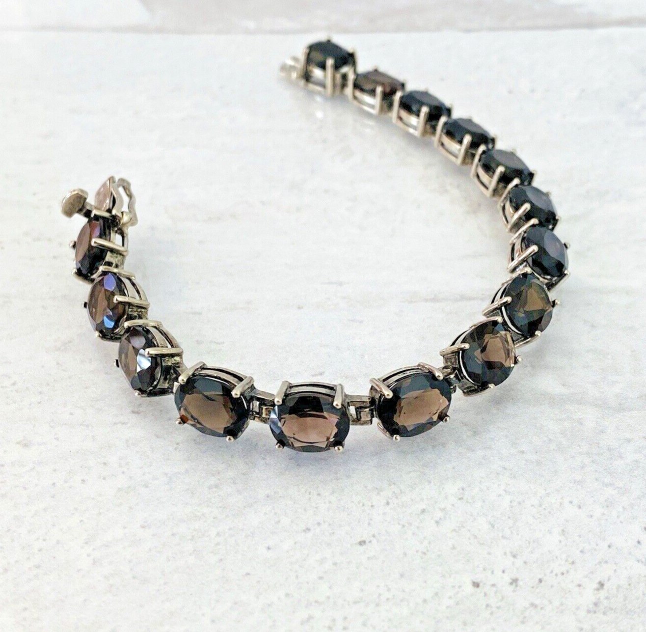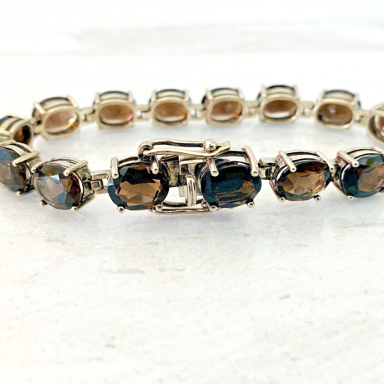 Vintage Faceted Oval Smoky Quartz Sterling Silver Line Bracelet – 15 Gems – Total of 38 Carats –