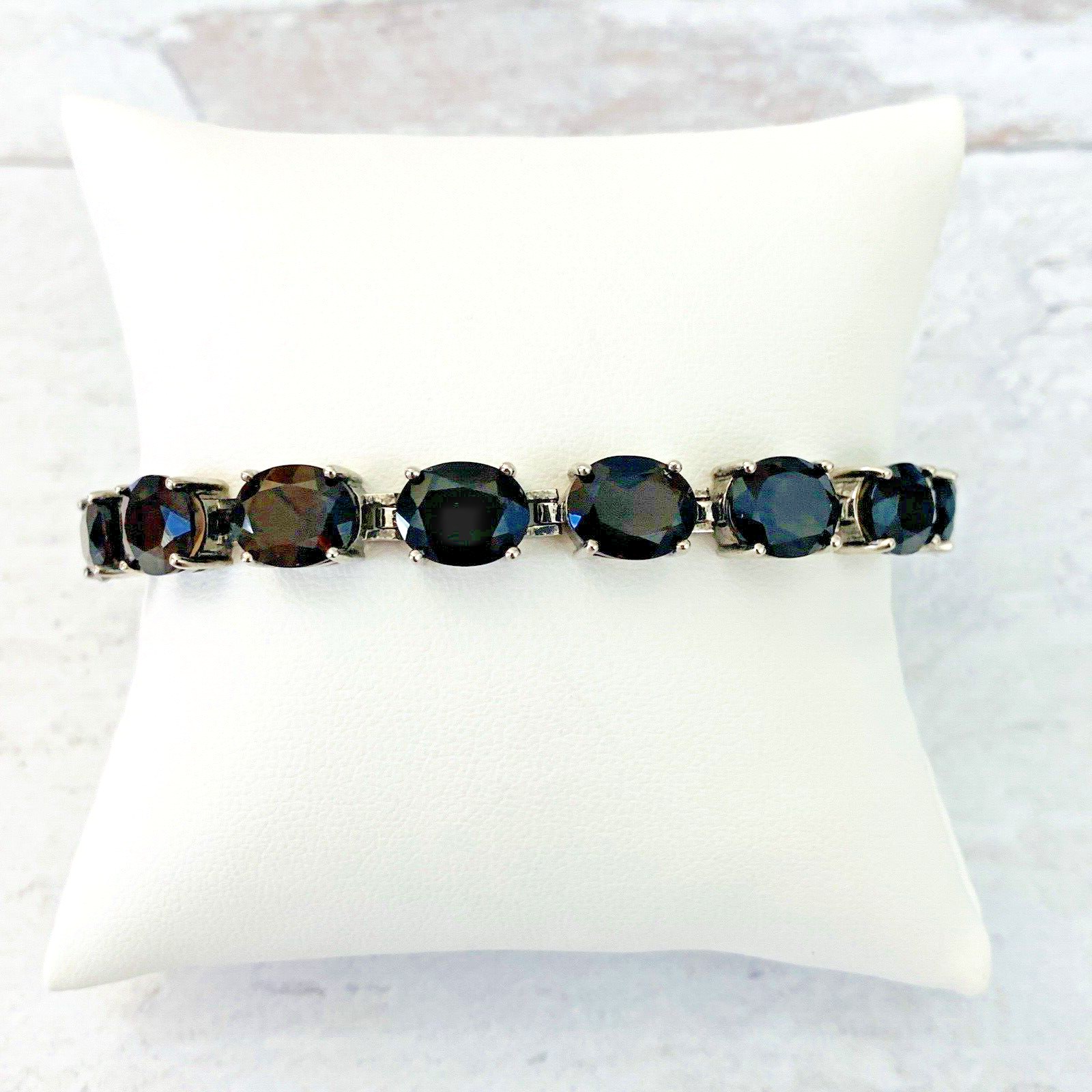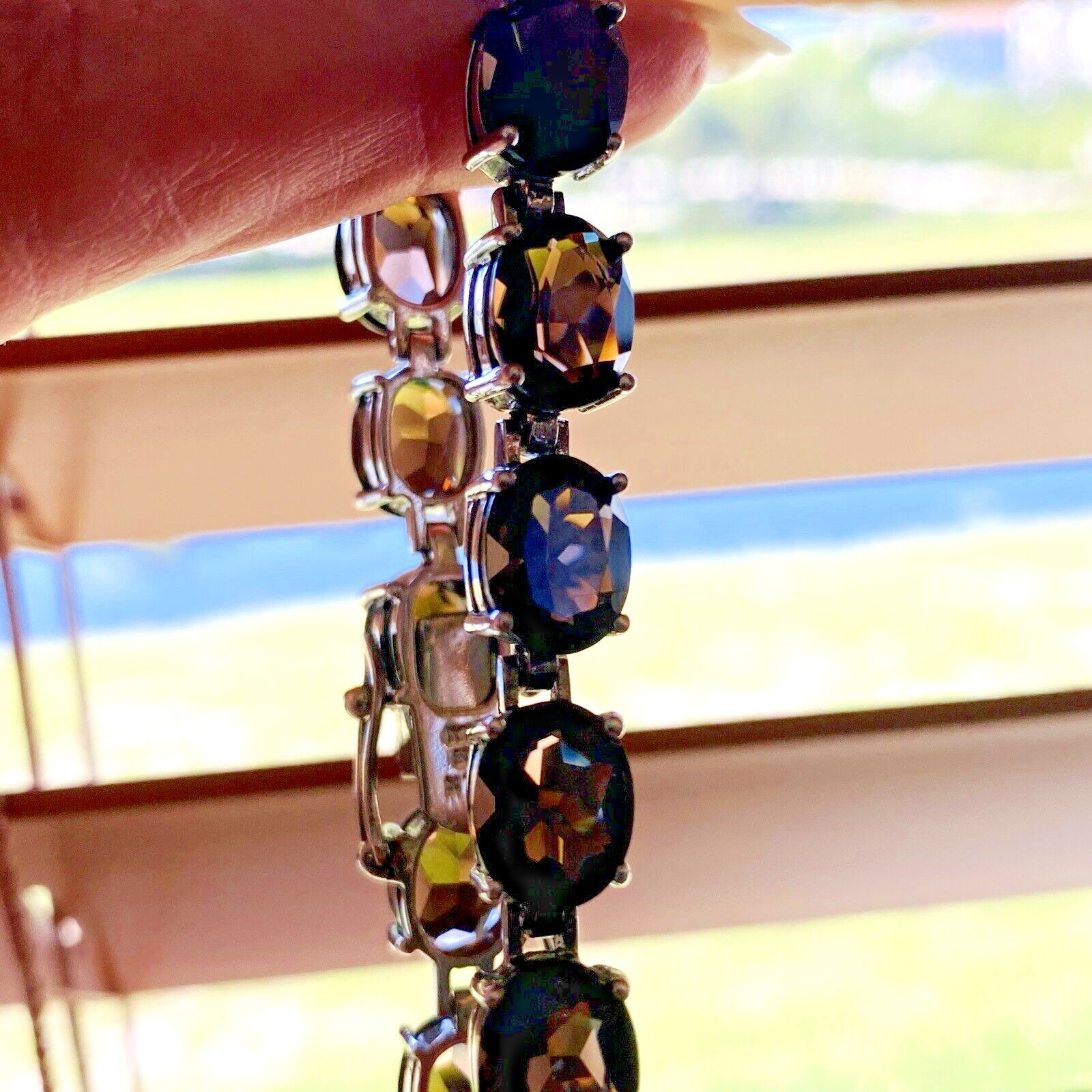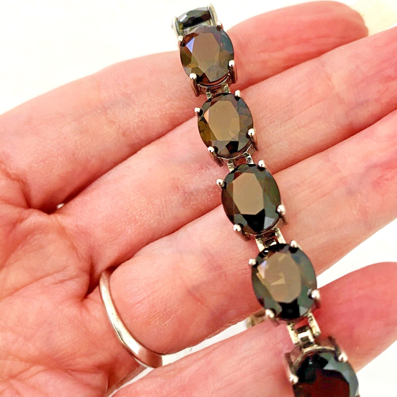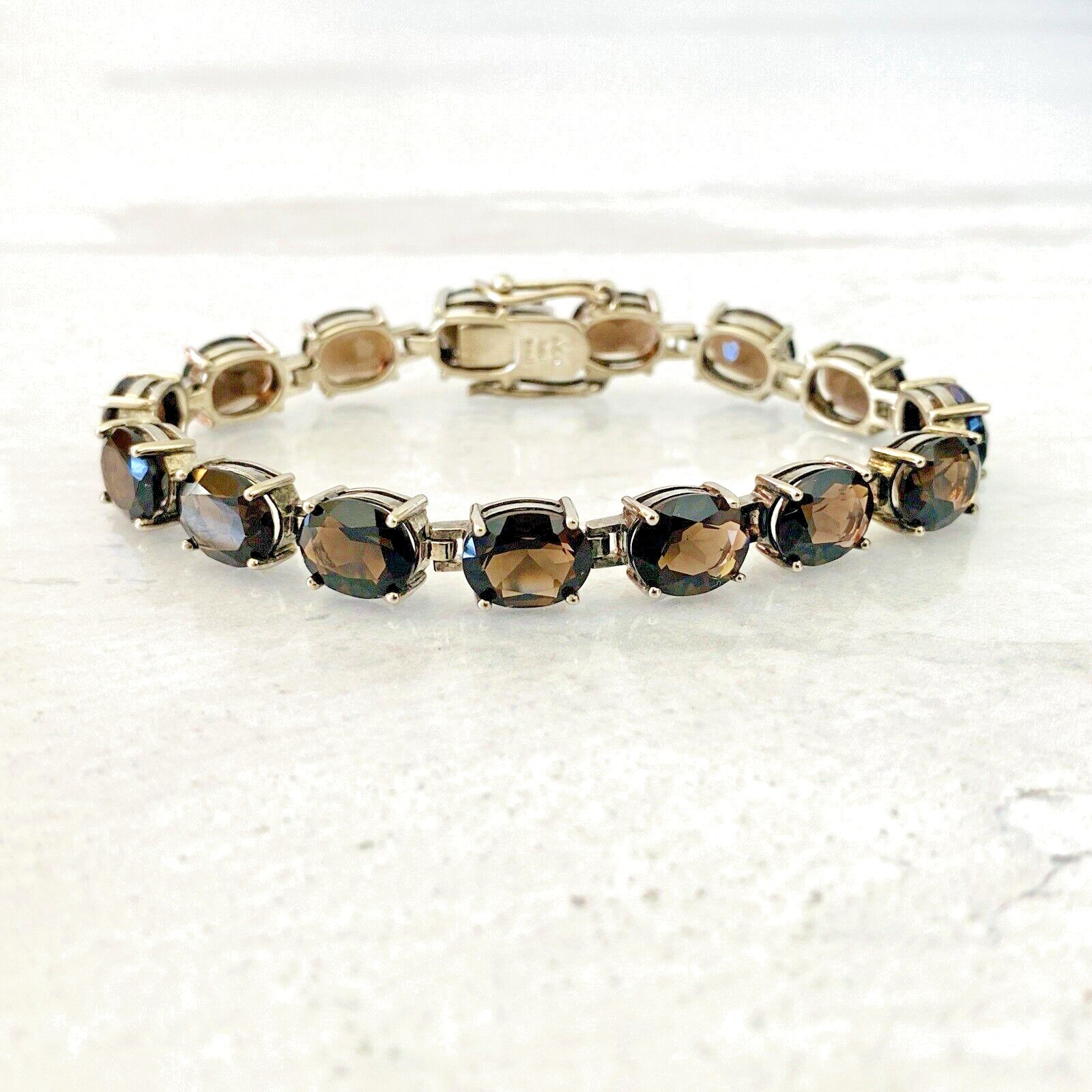 A stunning, gorgeous, faceted oval natural gem Smoky Quartz and sterling silver line bracelet set with 15 oval cut stones.