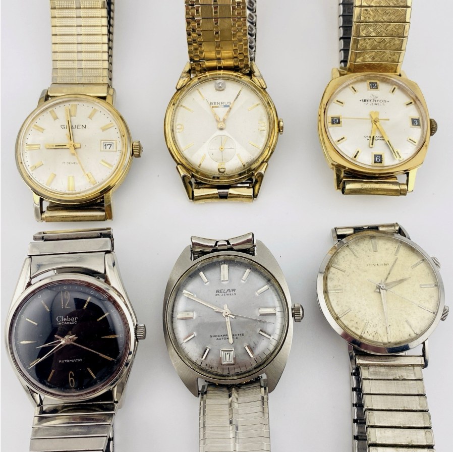 Vintage Men’s Watch Lot Juvenia Alarm Benrus Diamond Belair 25J Auto Clebar Auto