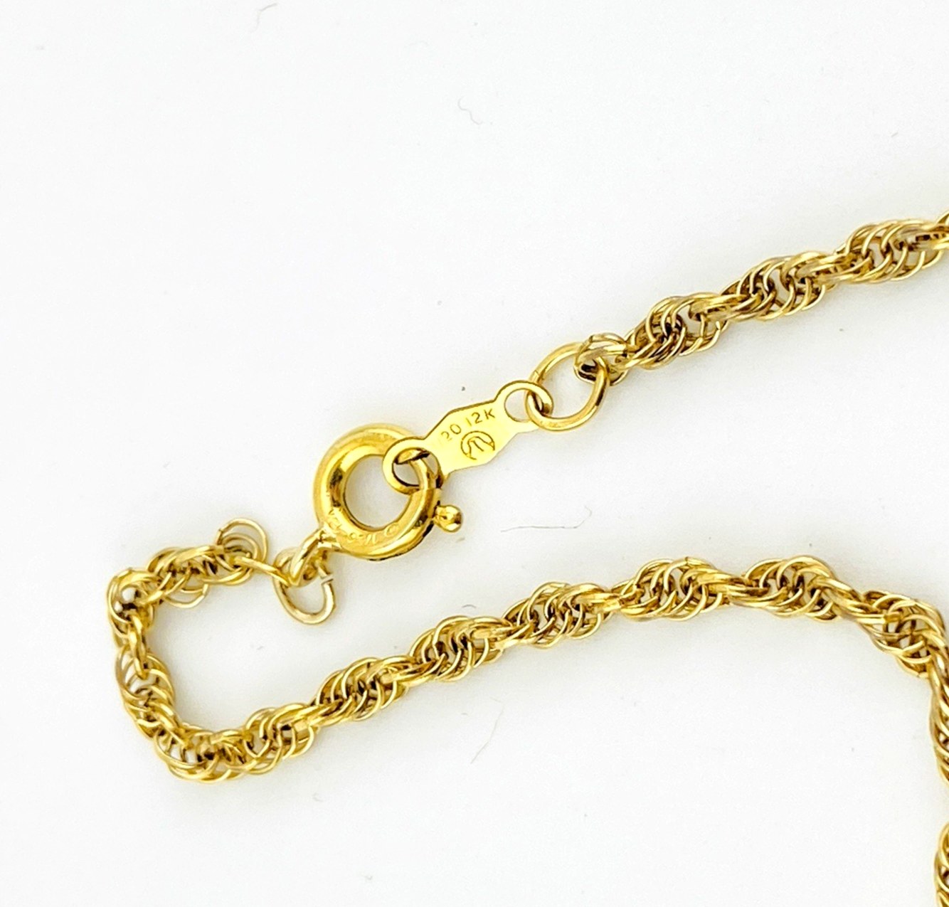 The pendant is paired with a 1/20 12k yellow gold filled rope chain, marked at the clasp. It is offered with its original vintage jeweler’s box from Pascoe’s of New Zealand, making this a complete and especially appealing presentation for collectors or gifting.