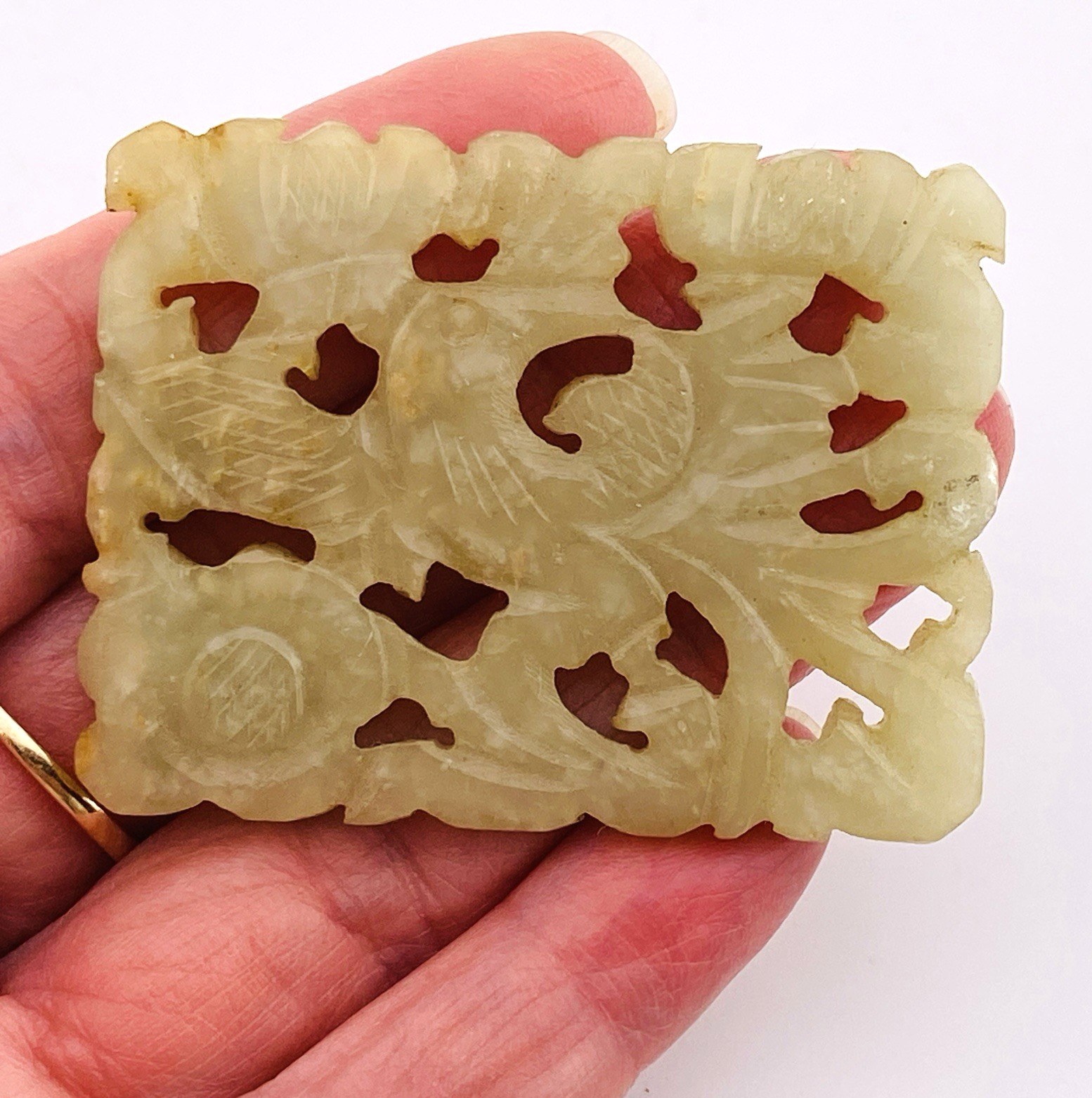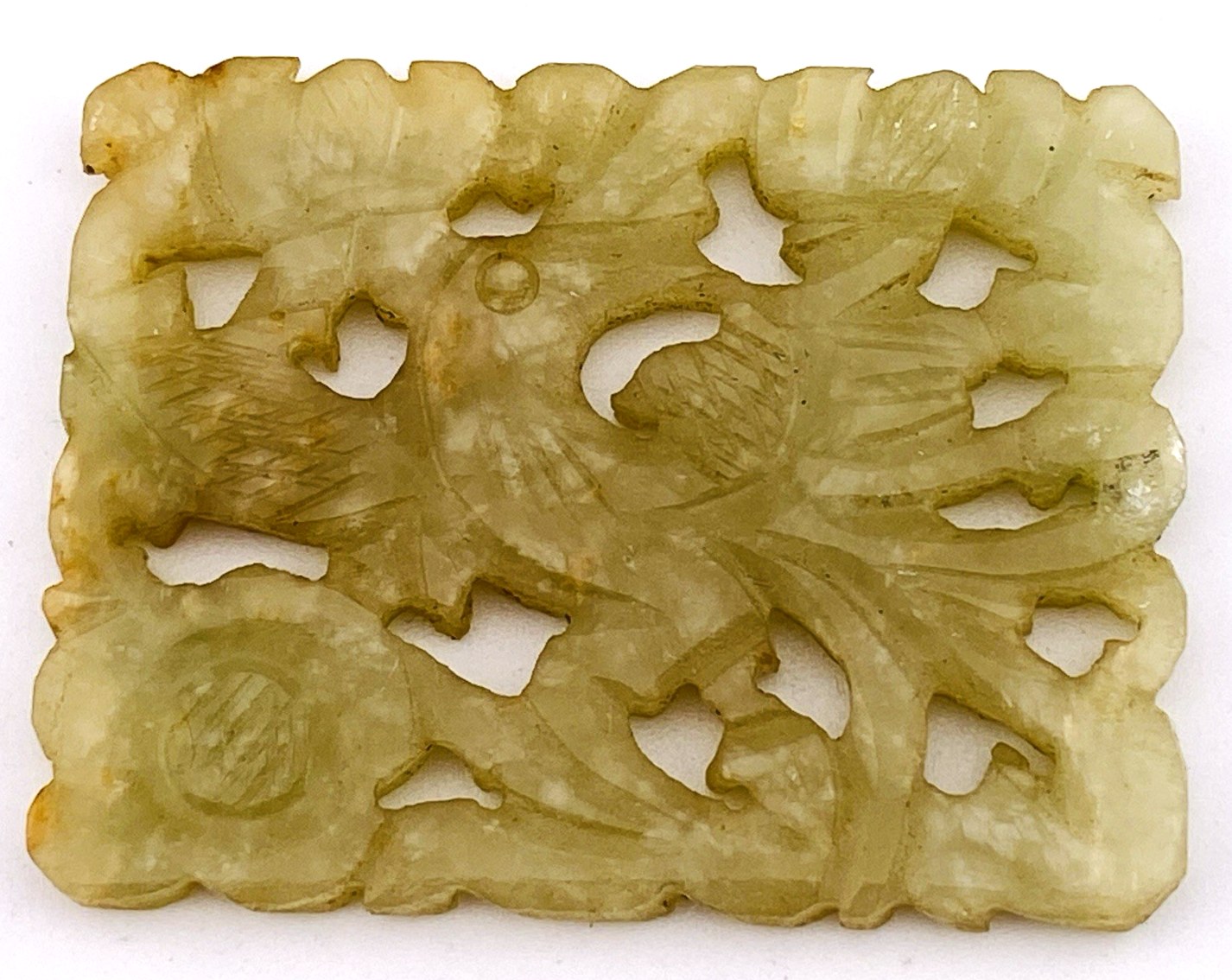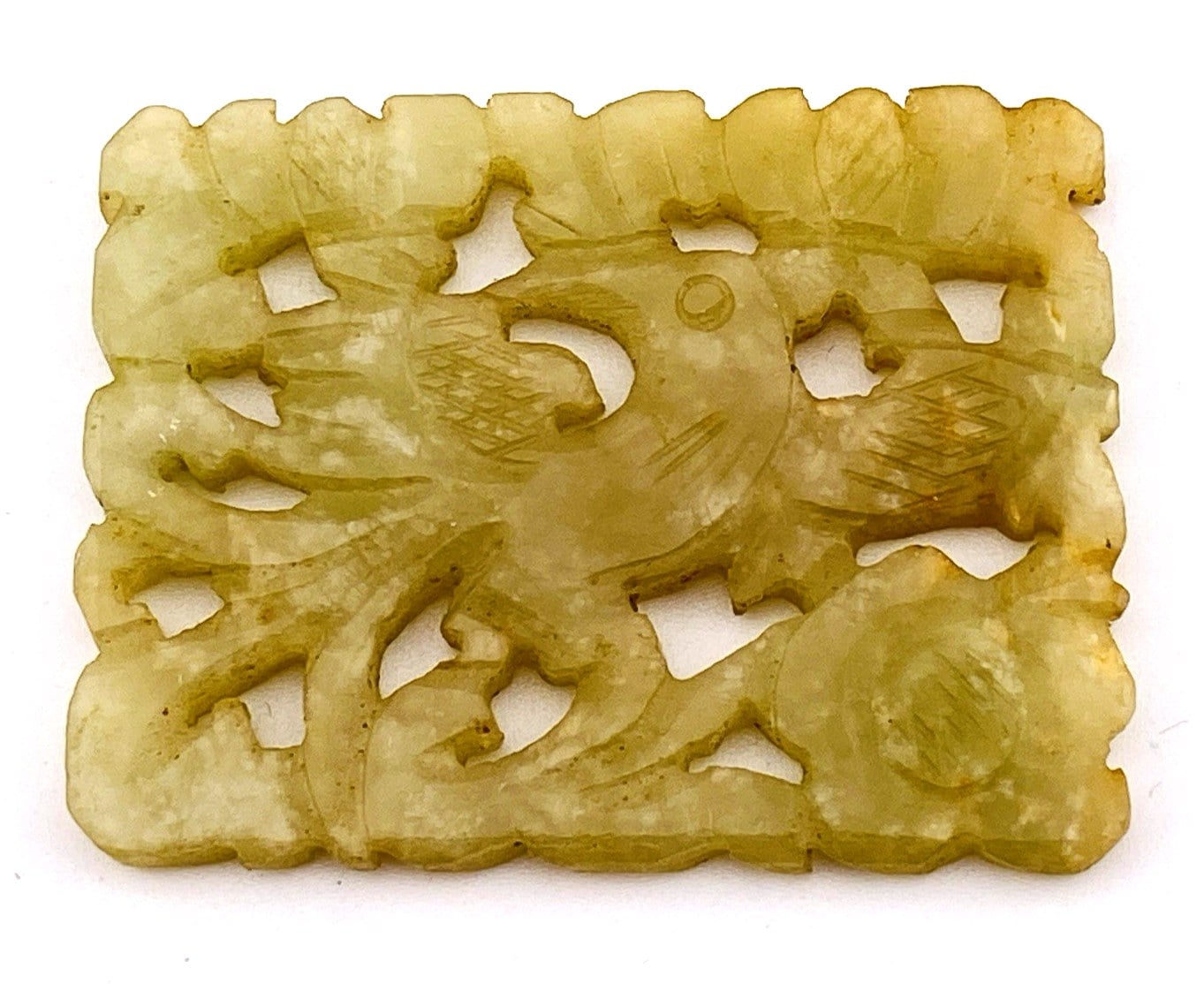 Vintage Rectangular Hand Carved Serpentine Stone Pendant – Stylized Bird