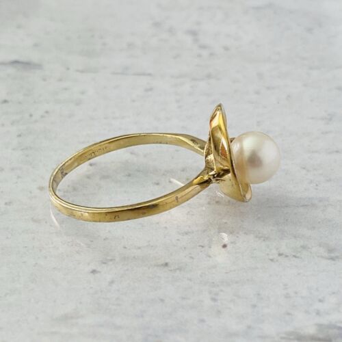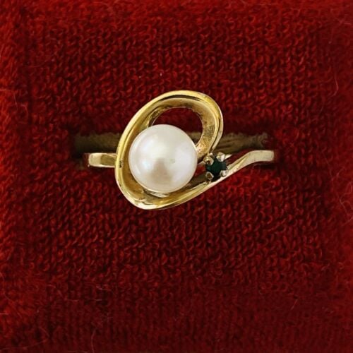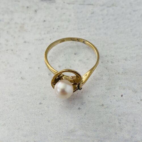 Vintage Retro Gold Over Sterling Silver Cultured Pearl Solitaire with Accent – Sz 8.5 US –