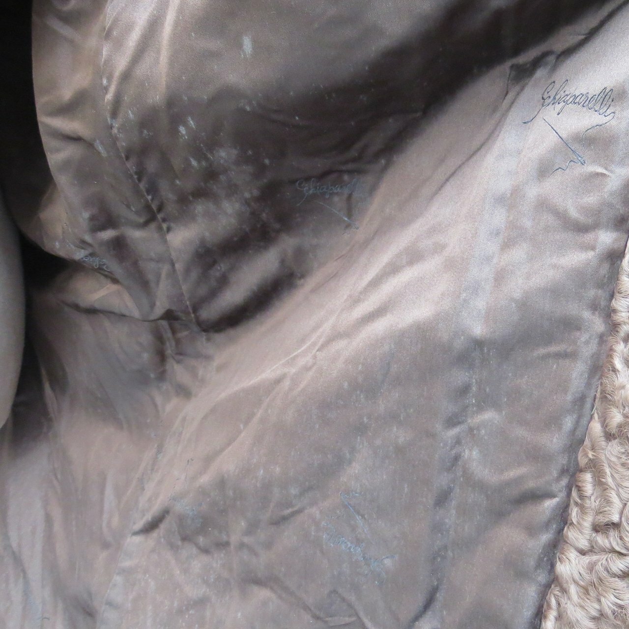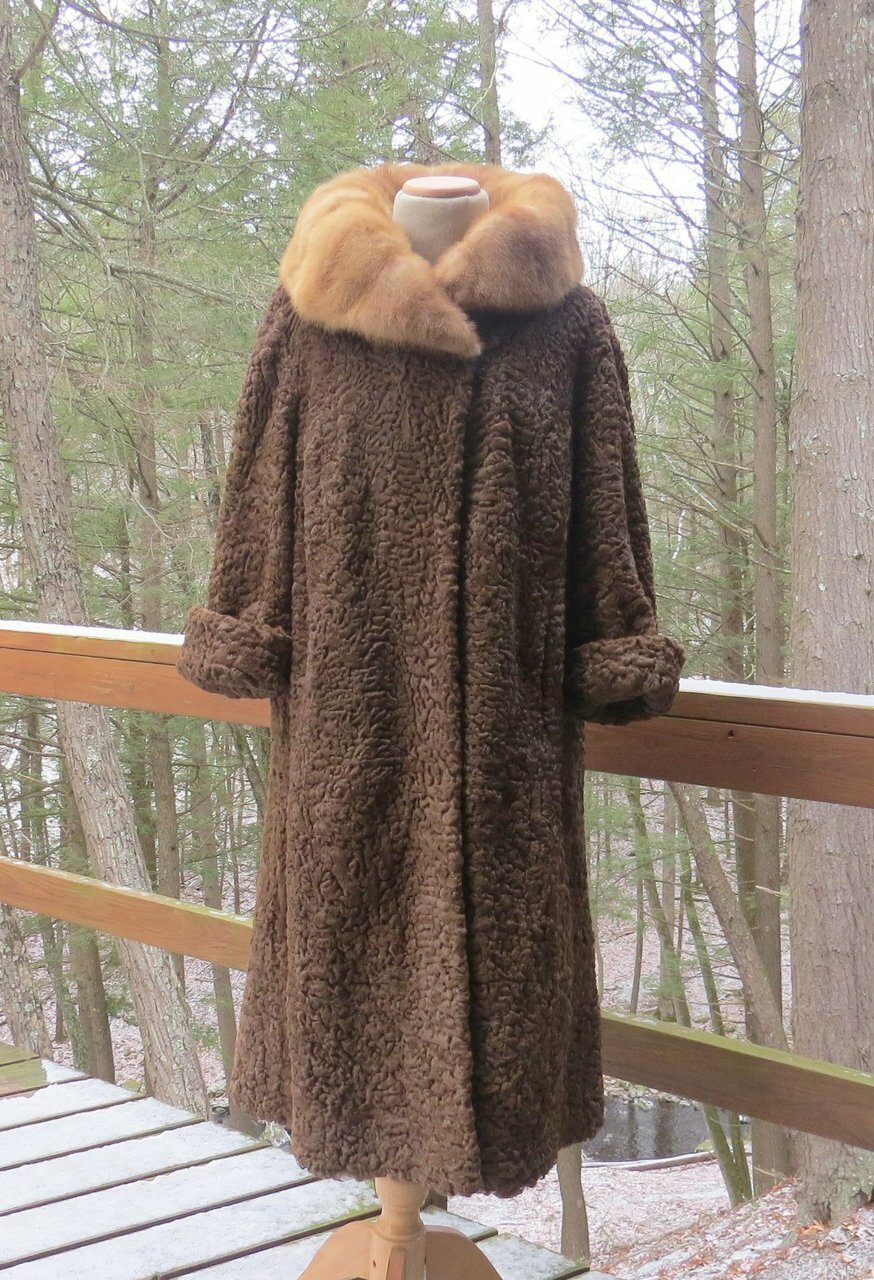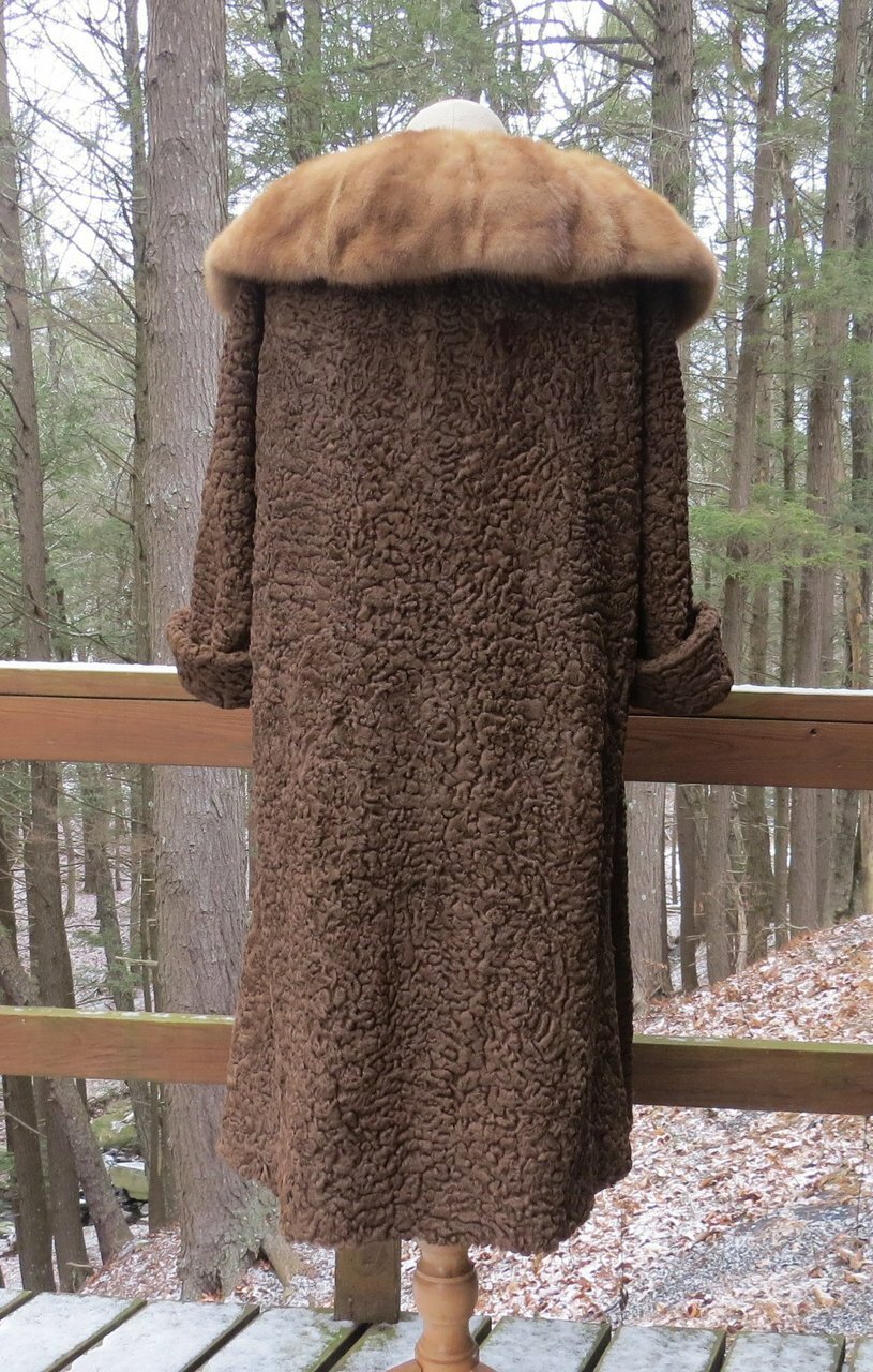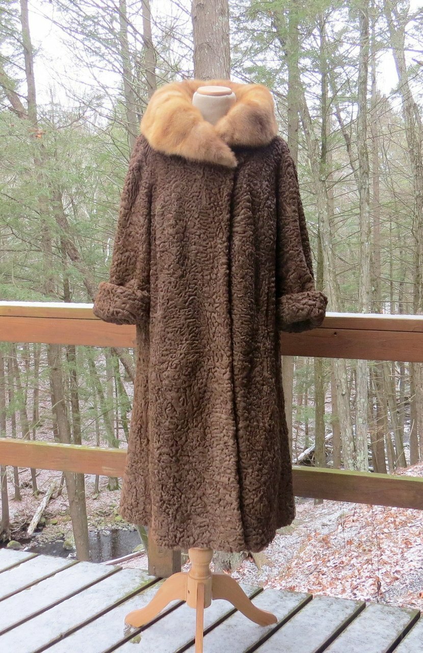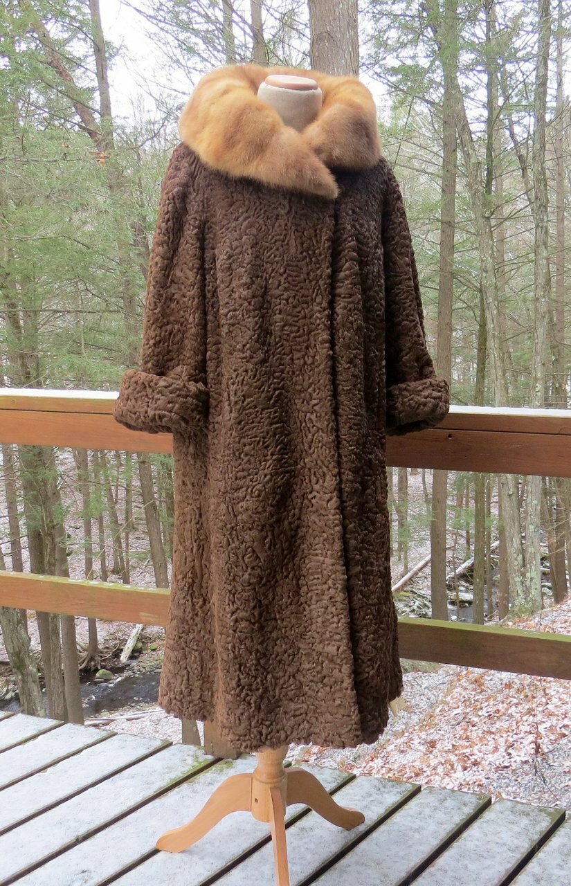 It is in very good to excellent condition. There are no tears or damage to the fur or lining except for a small area at the fold of the sleeve. The hand-stitched label has lost a couple of stitches but it is firmly in place. It has been stored for a while.