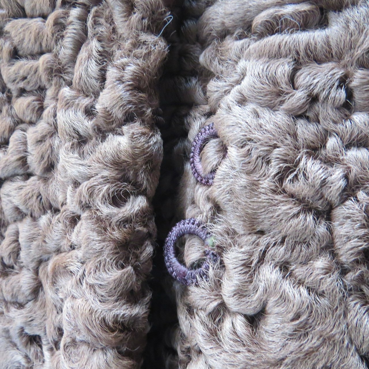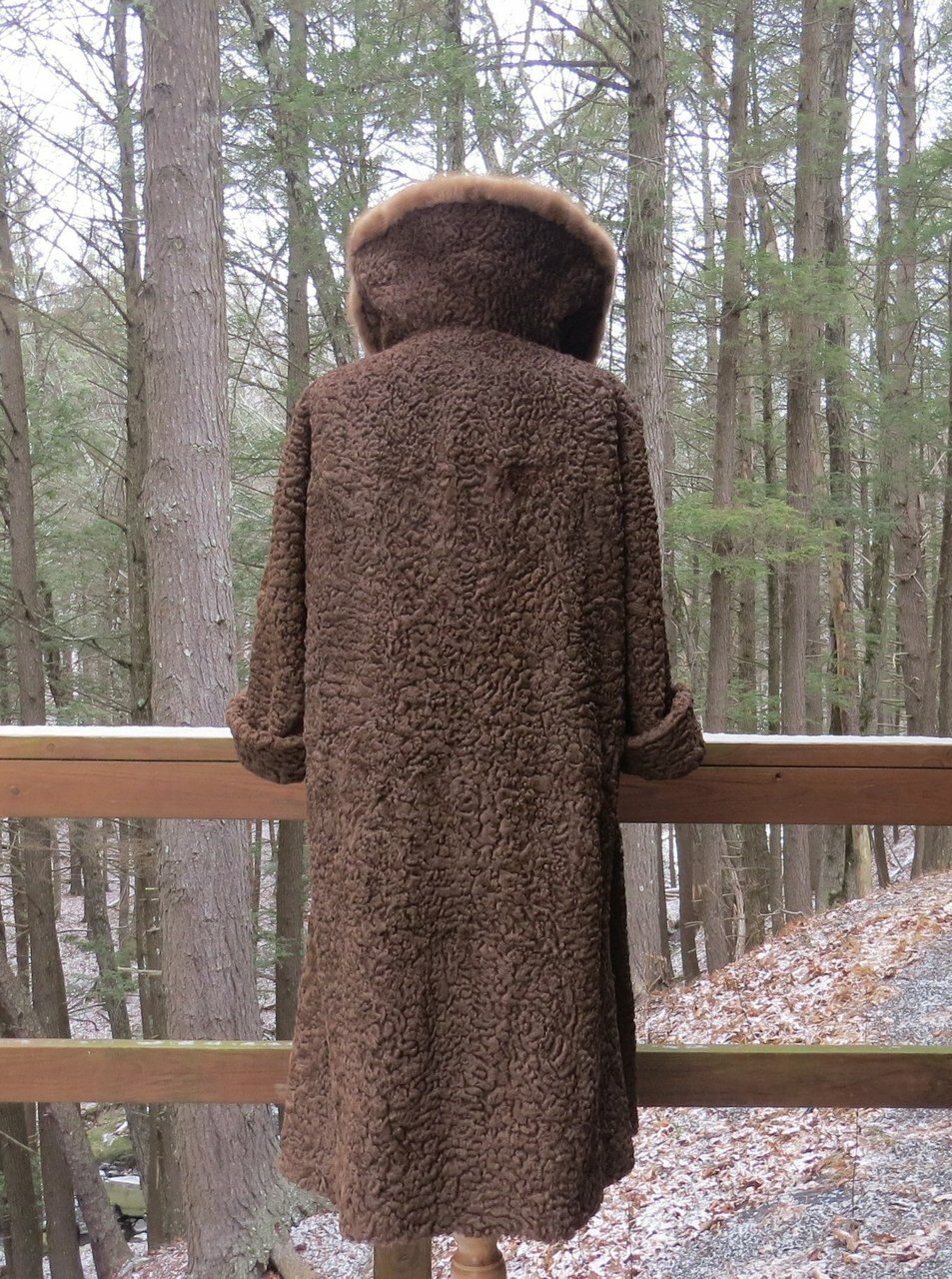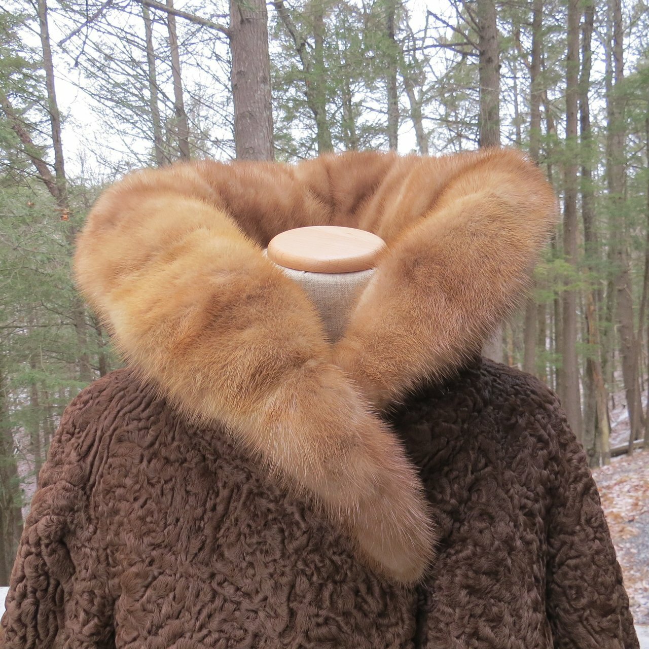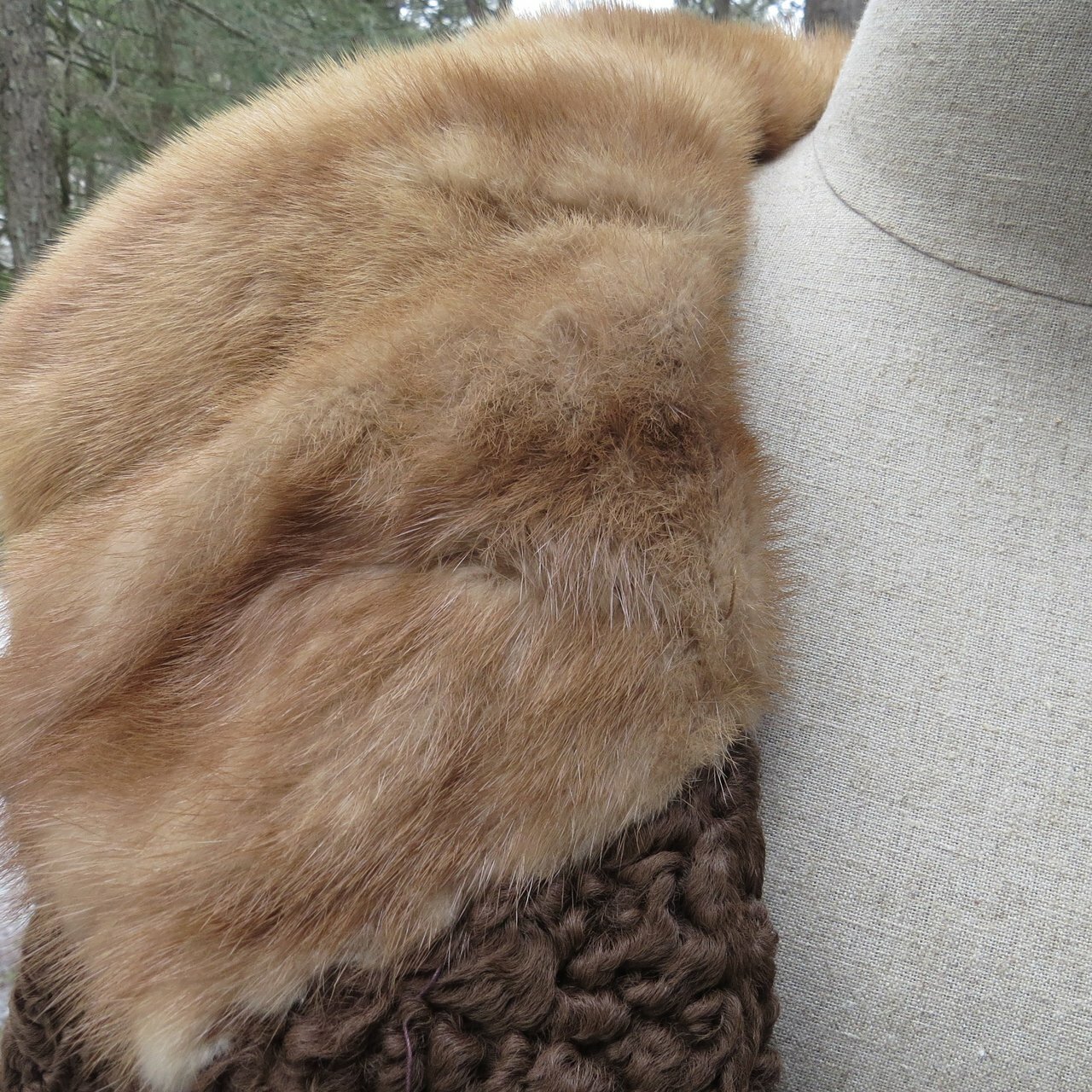 It is in very good to excellent condition. There are no tears or damage to the fur or lining except for a small area at the fold of the sleeve. The hand-stitched label has lost a couple of stitches but it is firmly in place. It has been stored for a while.