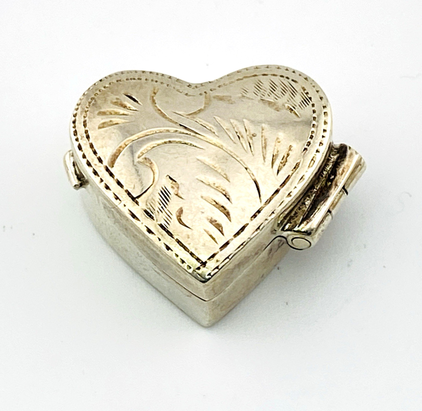 Vintage Tiny Heart Shaped Sterling Silver Pill Box
