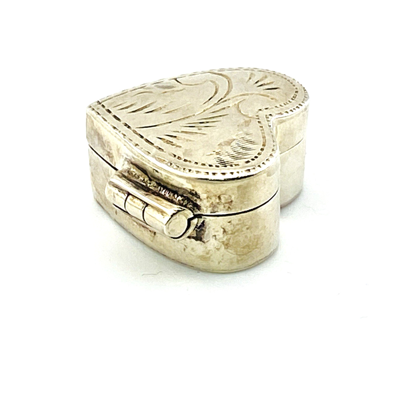 Marked 925 at the base near the hinge, the box opens and closes securely and remains in excellent vintage condition. Its compact scale and sweet heart form make it an especially appealing piece for collectors of small silver objects or symbolic jewelry-adjacent accessories.