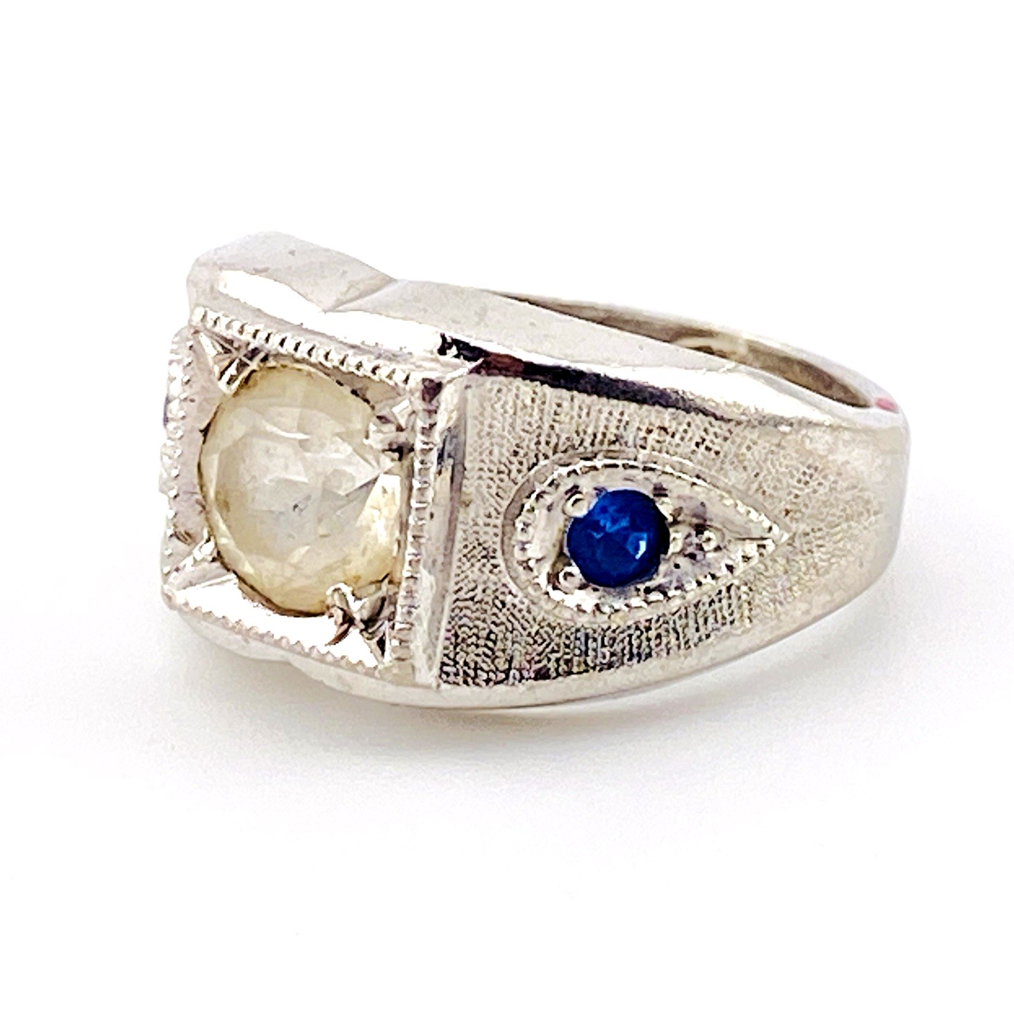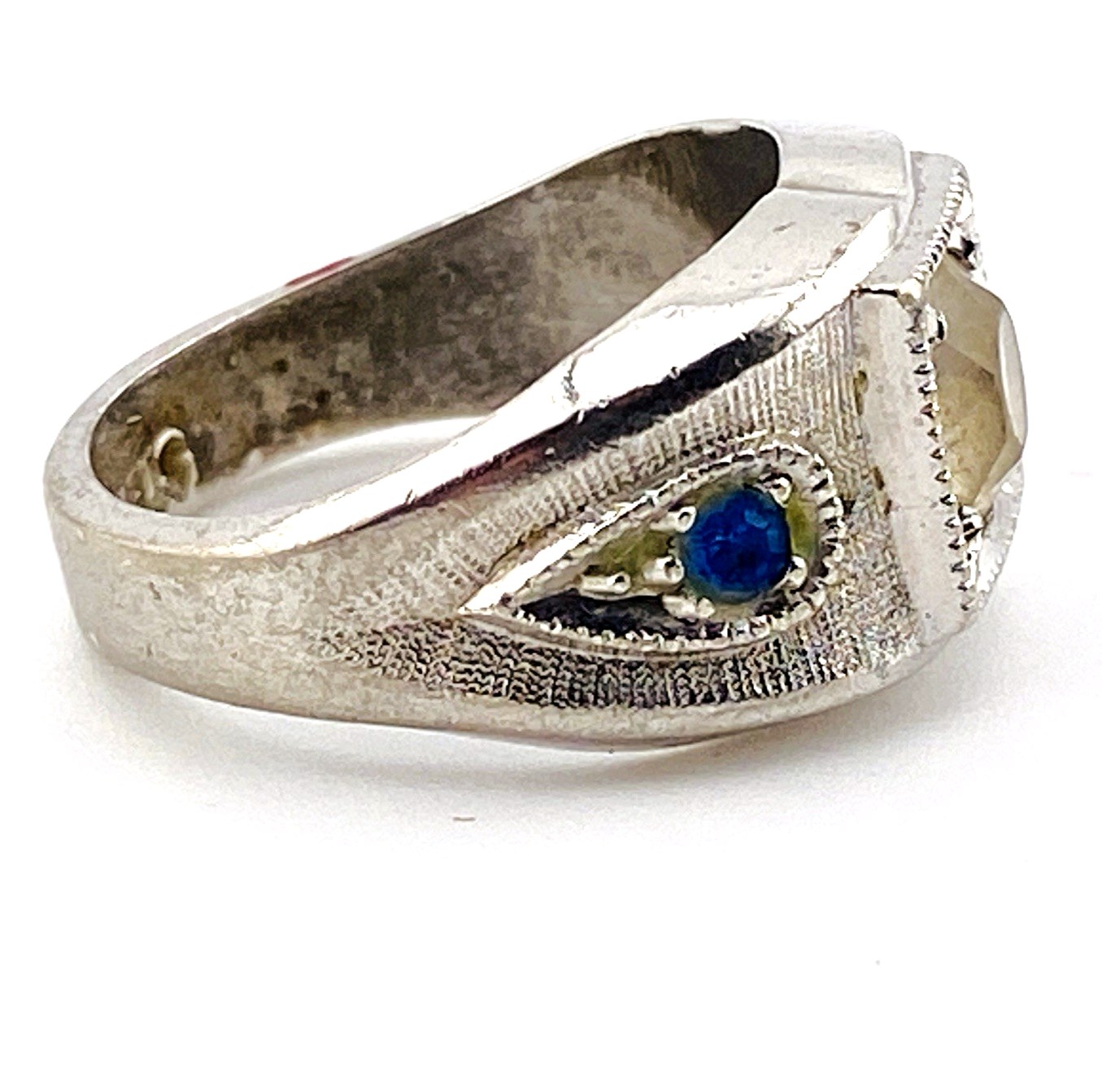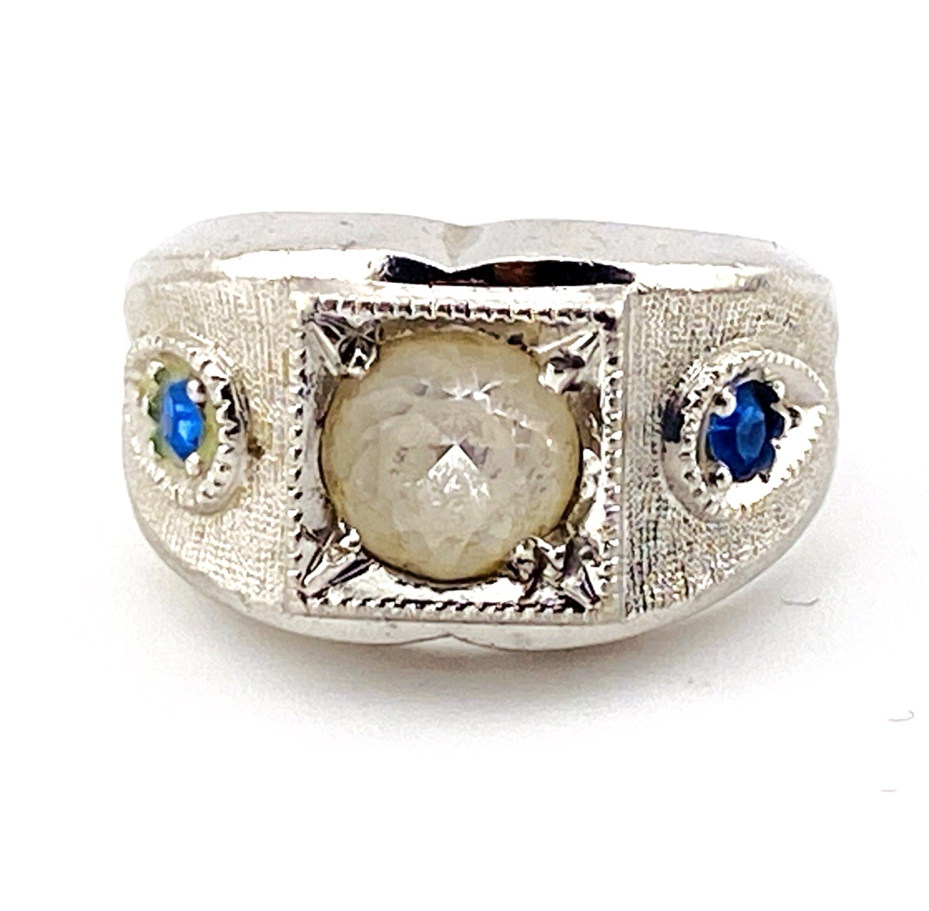 Step into elegance with this Vintage Sterling Silver Three Stone Signet Ring! Sizing at a comfortable size 6, this exquisite piece features three simulated sapphires that radiate beauty and sophistication. Perfect for both special occasions and daily wear, it combines timeless design with modern flair, making it an essential addition to any jewelry collection.