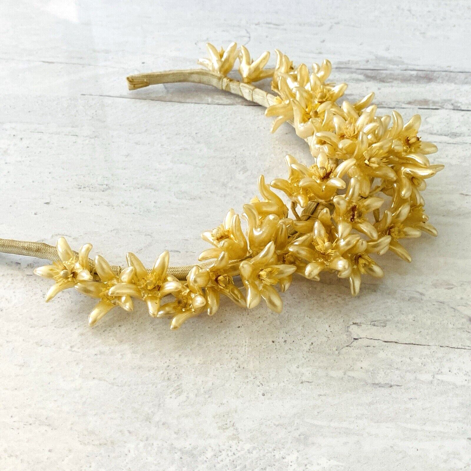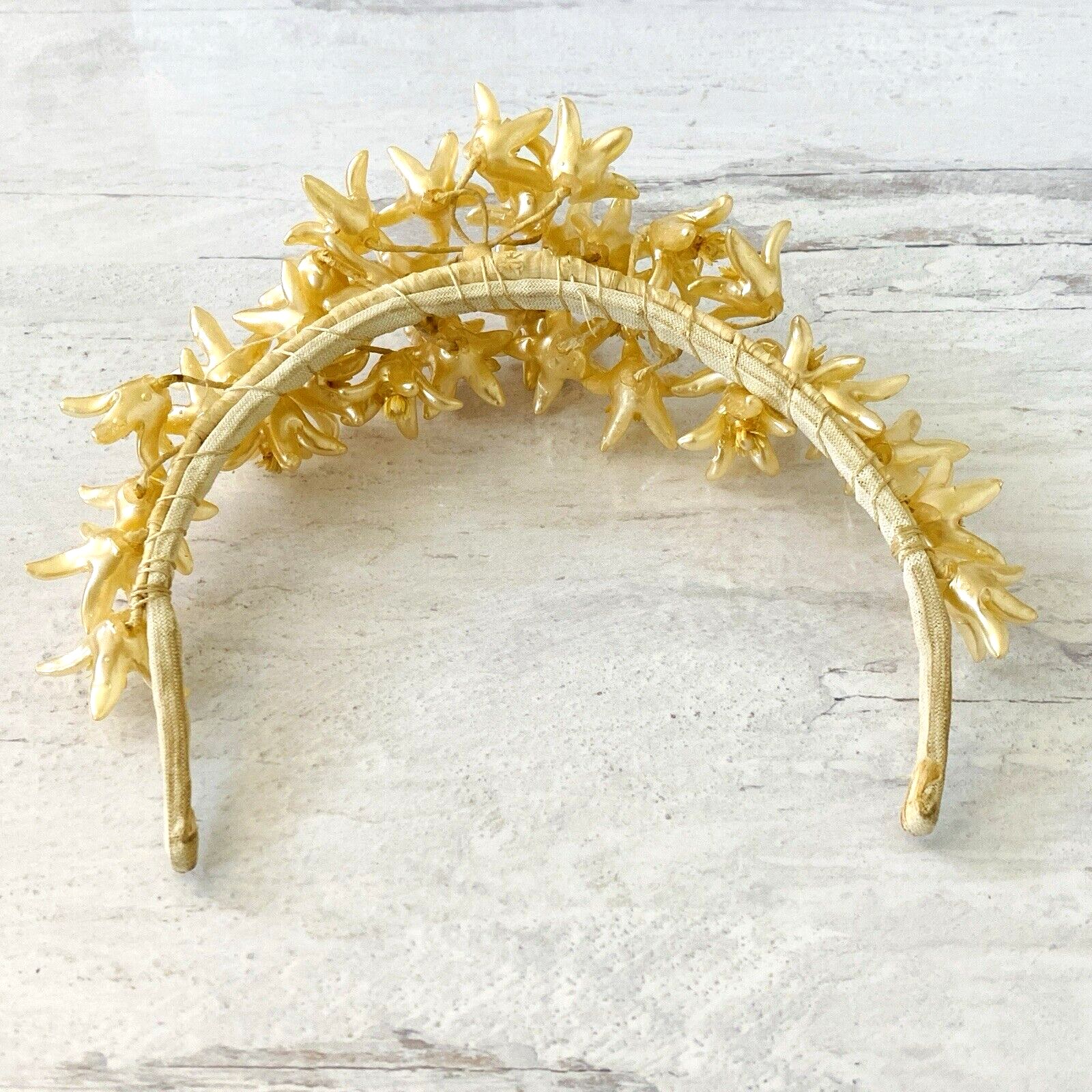 Vintage Wedding Bridal Tiara Headpiece Pearly Golden Wax Orange Flowers ca 1930s to 1940s